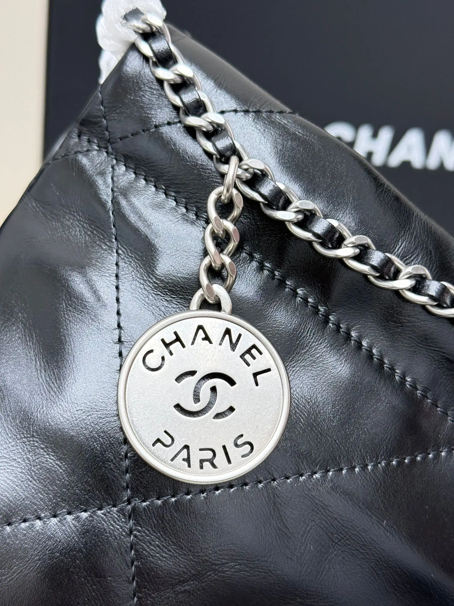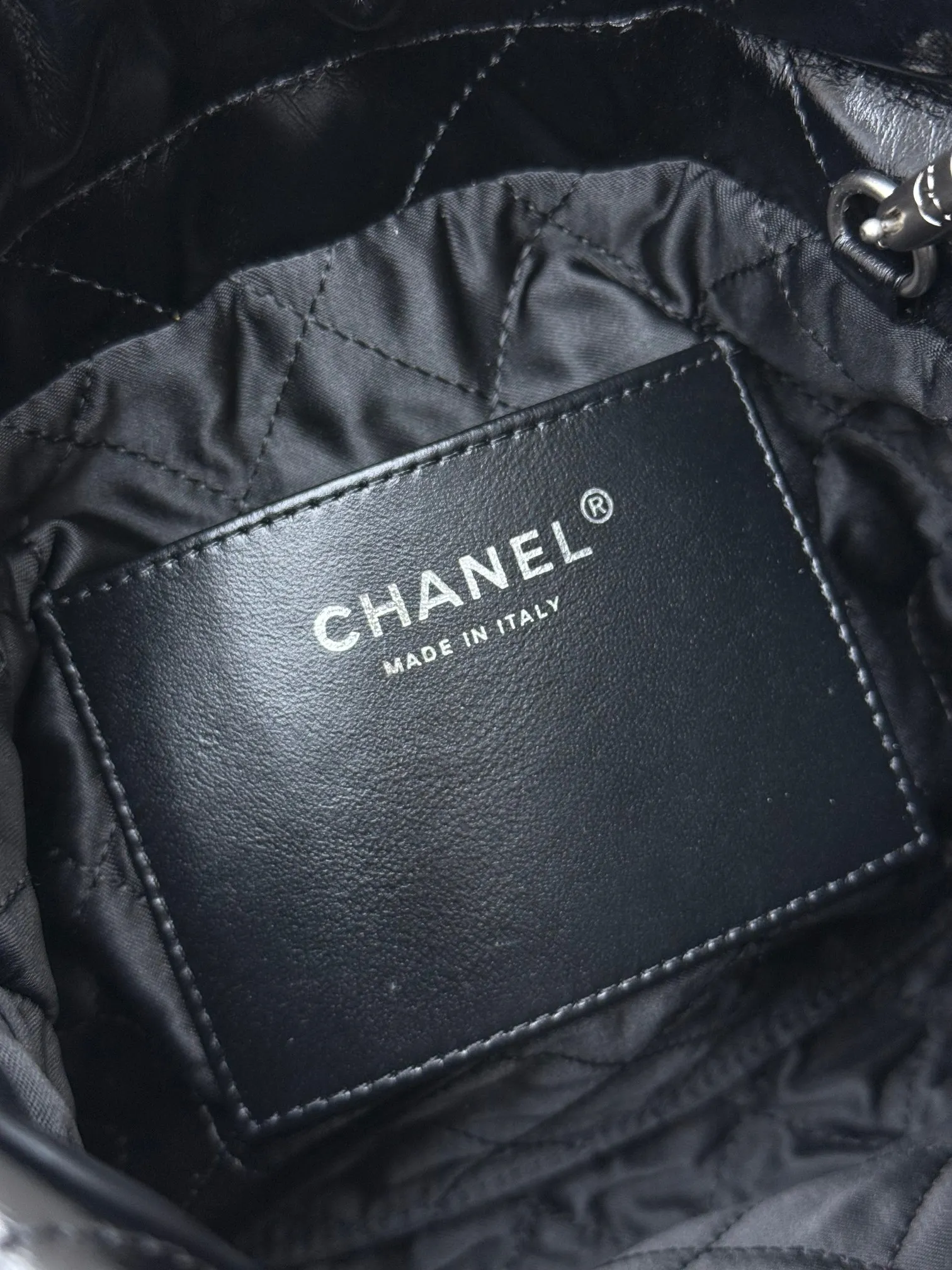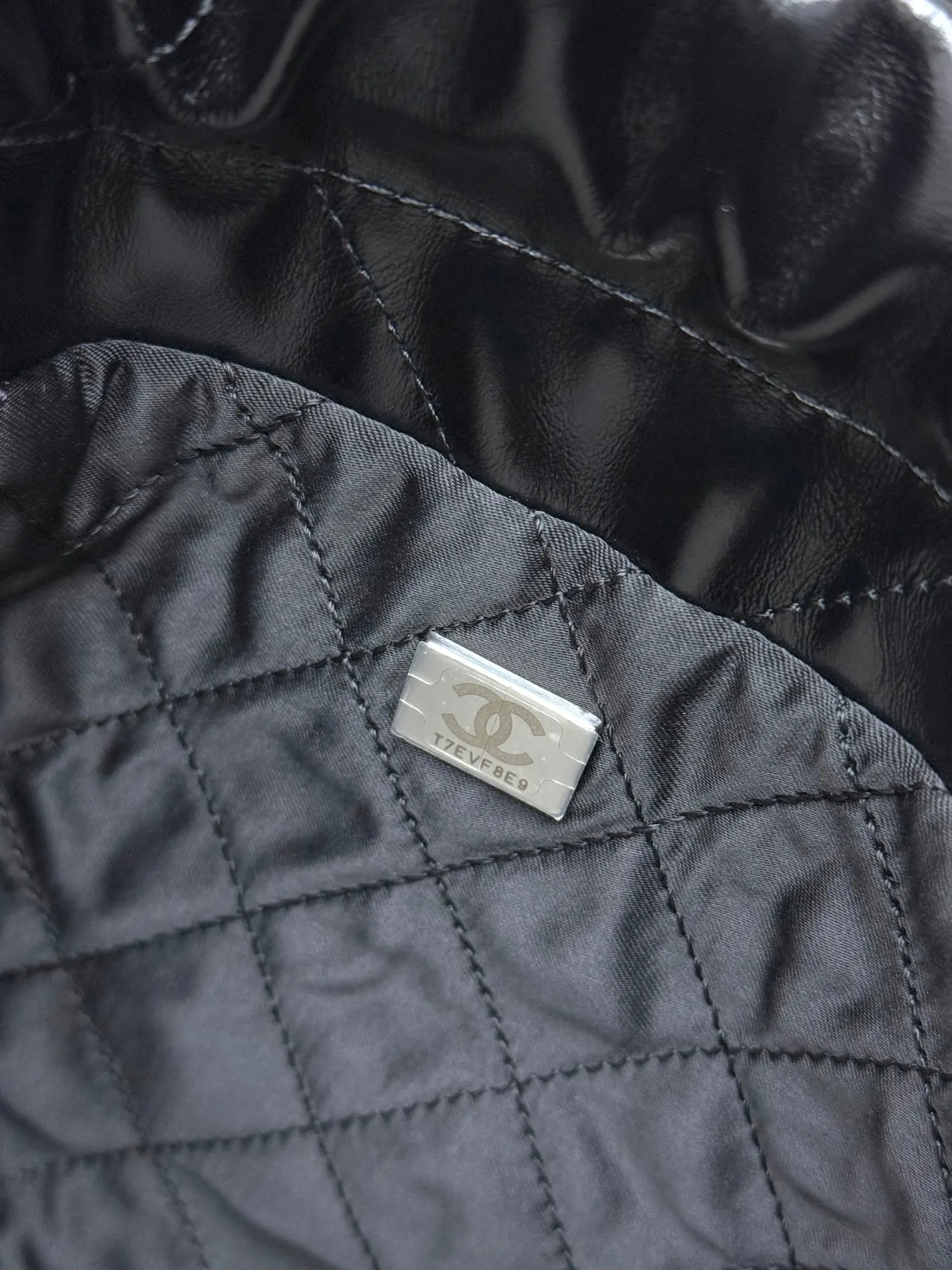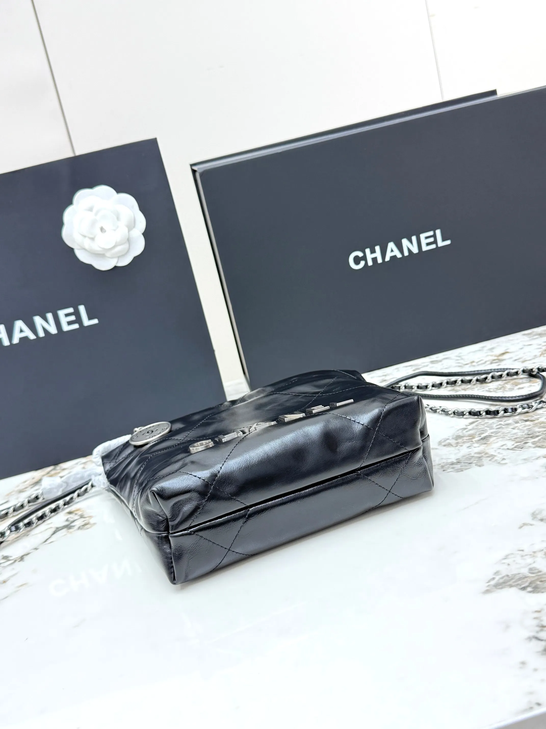进口原厂皮 CHANEL 迷你垃圾袋 香奈儿顶级原单货23A 22bag水桶包mini春夏火爆经典永不过时的垃圾袋 银标菱形格纹抽绳开合链条亮面油蜡小牛皮可斜挎可单肩型号 AS3980