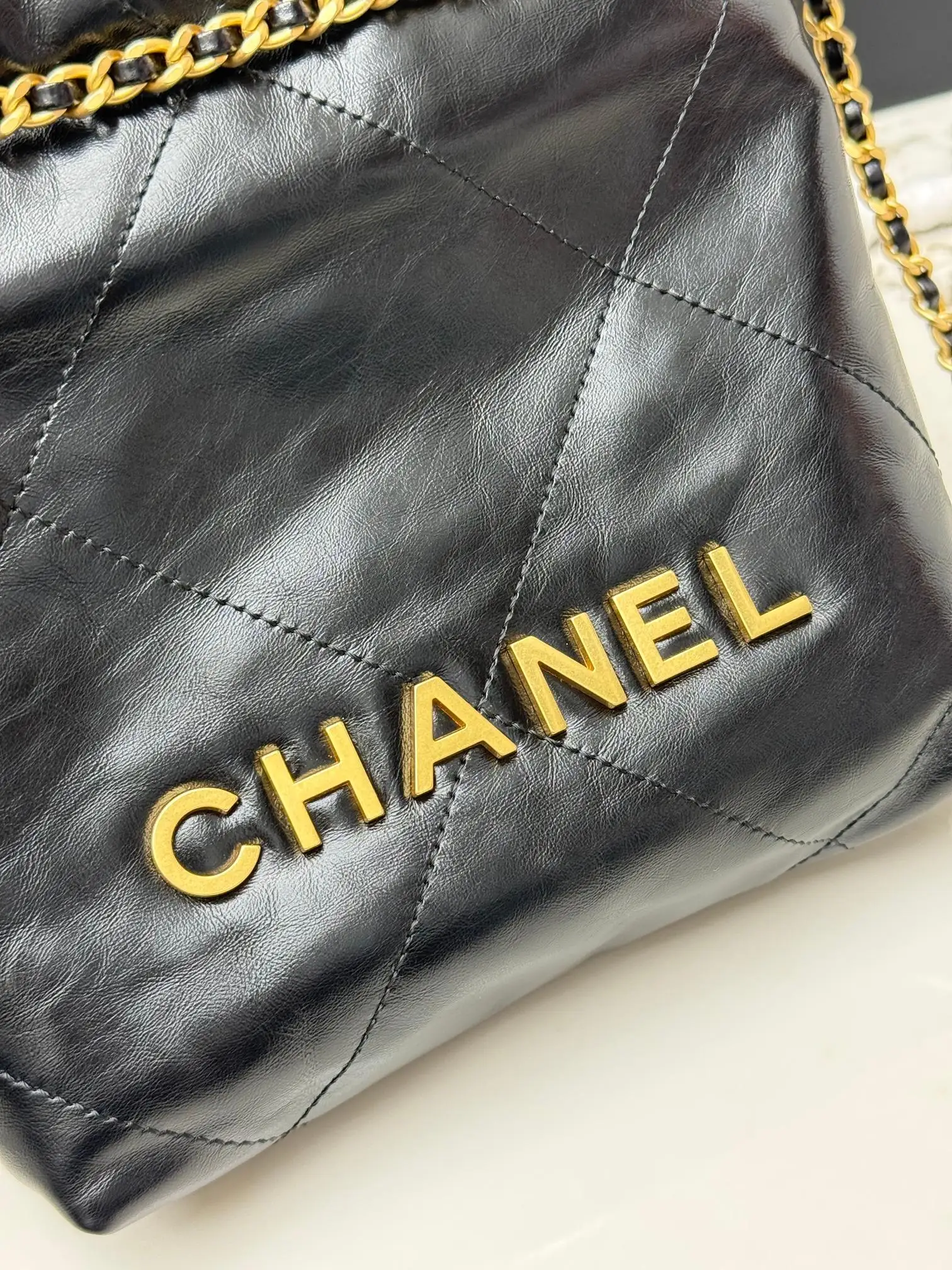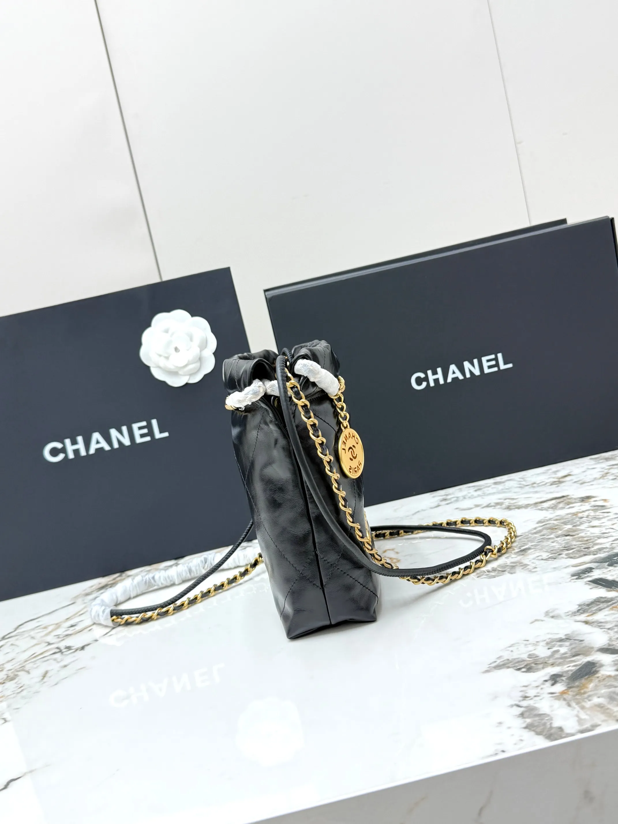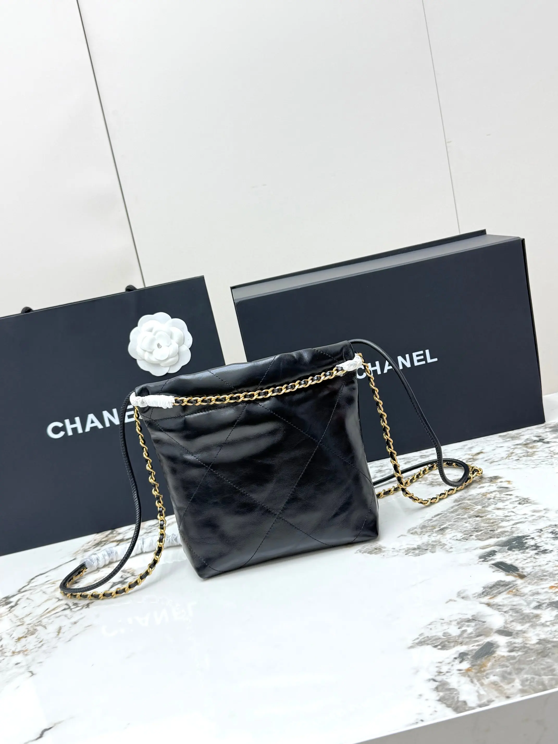 进口原厂皮 CHANEL 迷你垃圾袋 香奈儿顶级原单货23A 22bag水桶包mini春夏火爆经典永不过时的垃圾袋 金标菱形格纹抽绳开合链条亮面油蜡小牛皮可斜挎可单肩 型号 AS3980