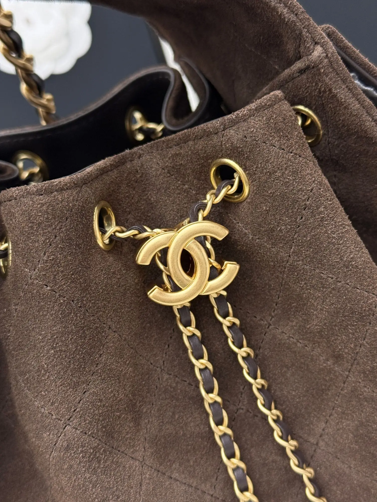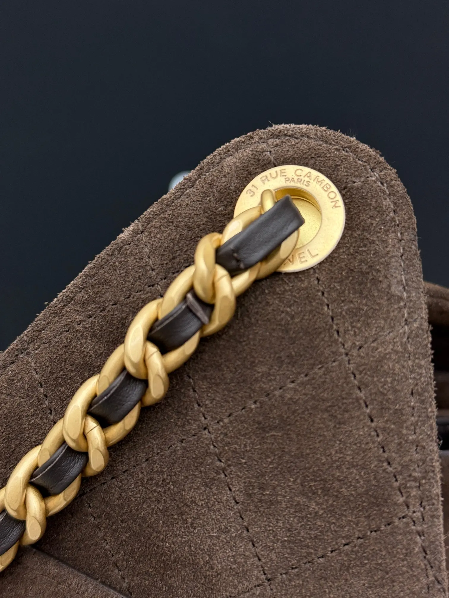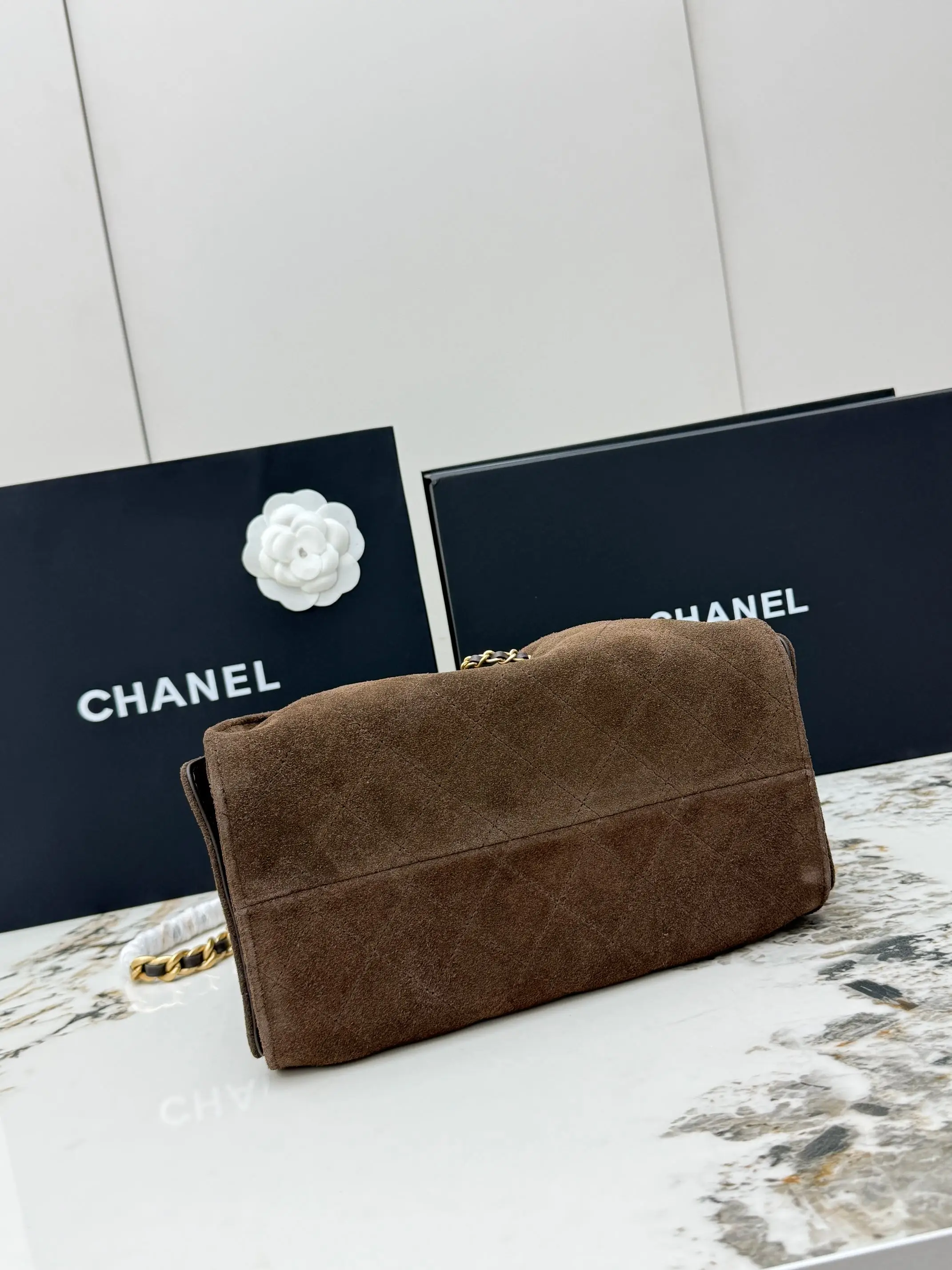 进口原厂皮 CHANEL 小号磨砂咖啡 原单货 香奈儿单肩包 25Bag 26C 金色双C Logo 菱格图案皮穿链条 鹿皮绒压花配牛皮 小号 经典复古金 秀场热门𝗁𝗈𝖻𝗈 设计独特 多口袋的设计简直将随性慵懒感拉满 搭配光泽感十足的复古五金 logo 可以说是这一季的王者了型号 AS5293 尺寸 长30x宽14x高26cm