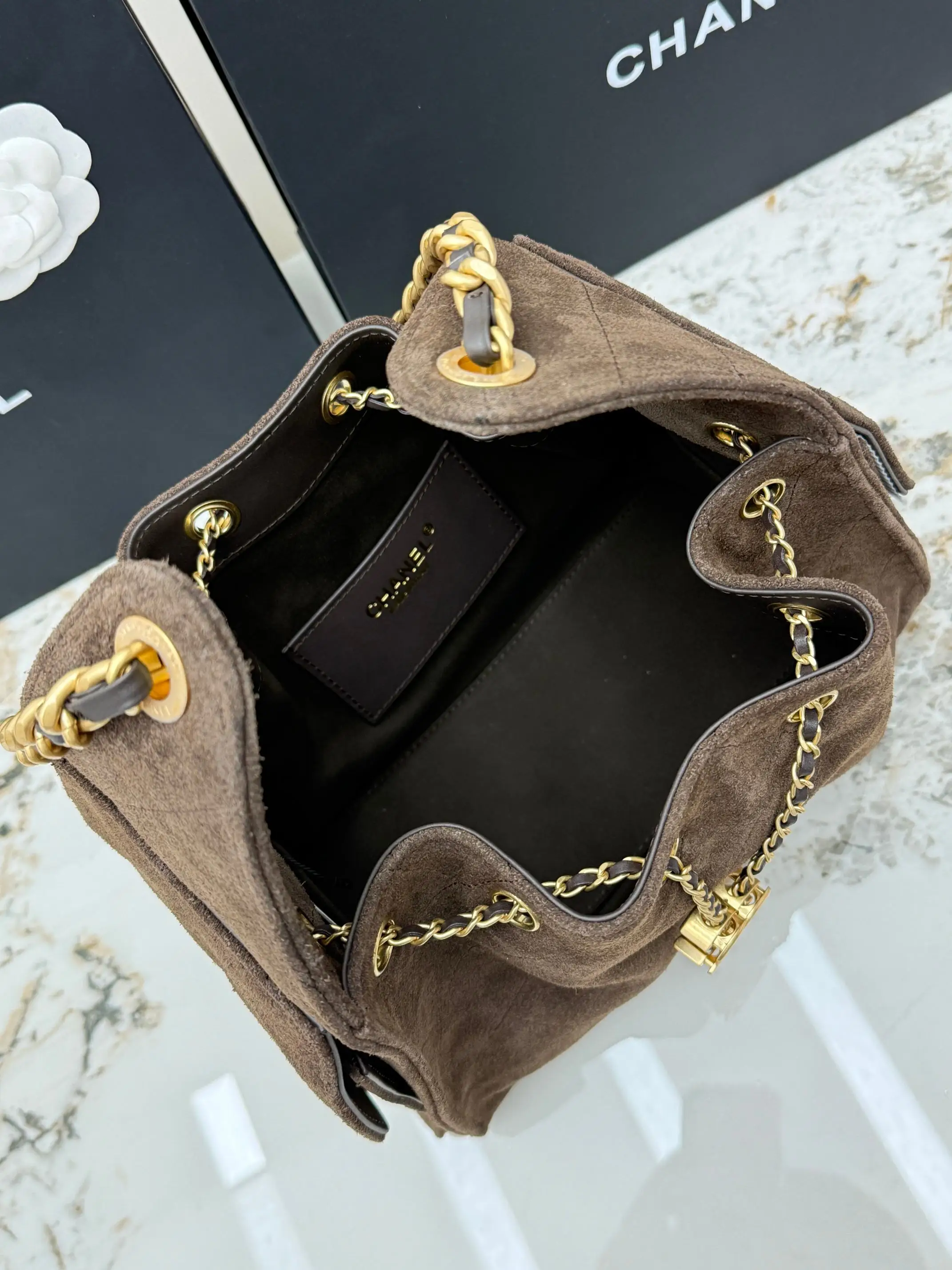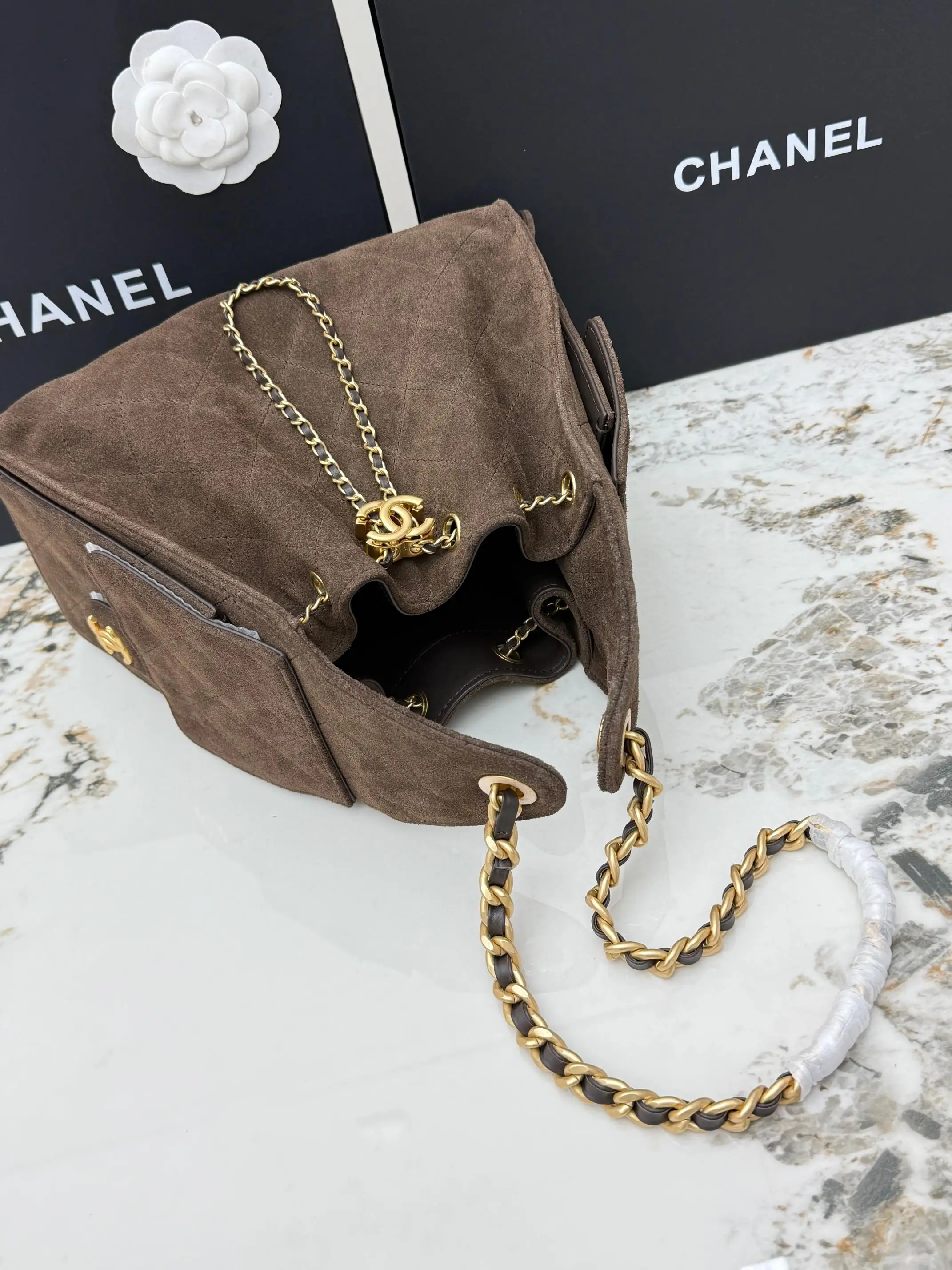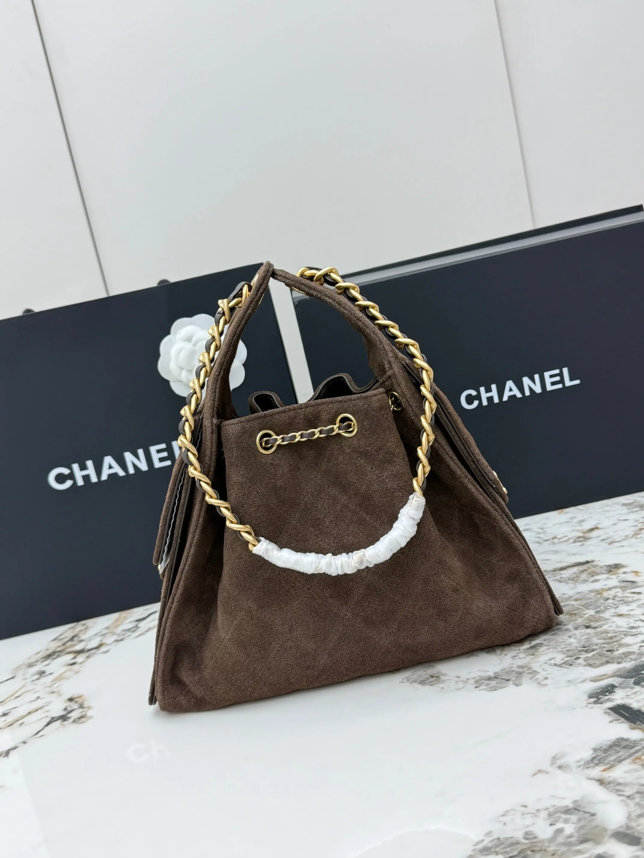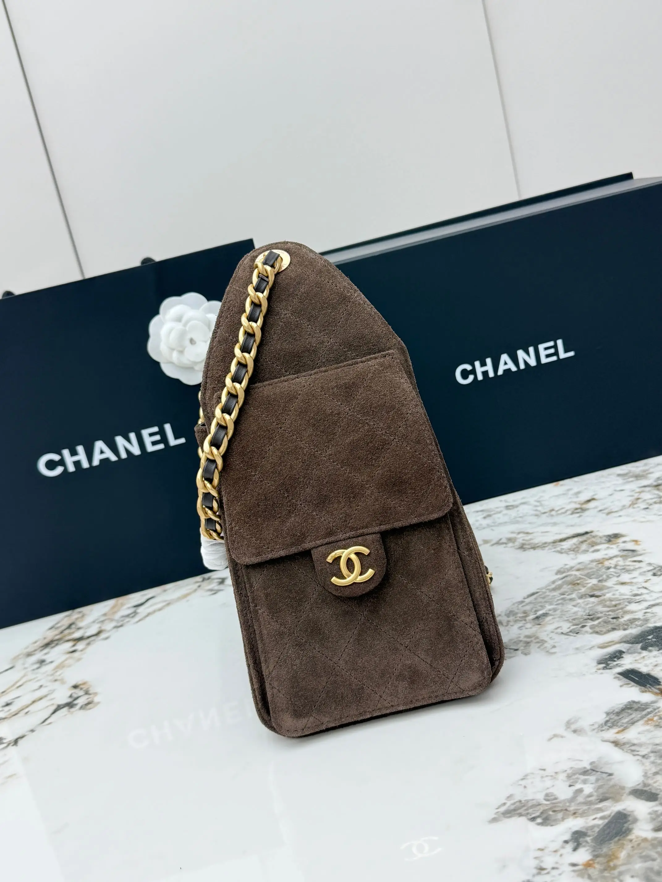 进口原厂皮 CHANEL 小号磨砂咖啡 原单货 香奈儿单肩包 25Bag 26C 金色双C Logo 菱格图案皮穿链条 鹿皮绒压花配牛皮 小号 经典复古金 秀场热门𝗁𝗈𝖻𝗈 设计独特 多口袋的设计简直将随性慵懒感拉满 搭配光泽感十足的复古五金 logo 可以说是这一季的王者了型号 AS5293 尺寸 长30x宽14x高26cm