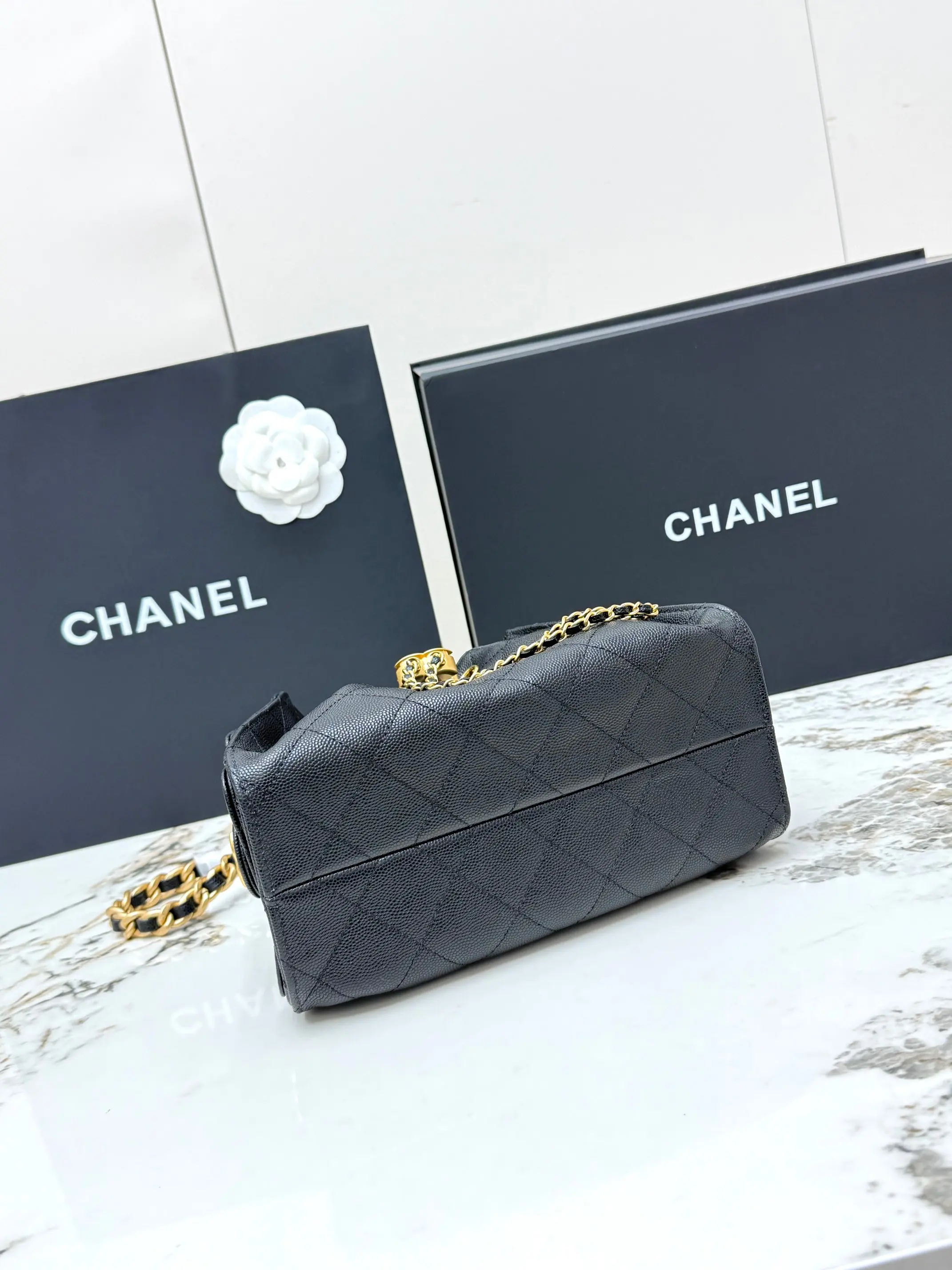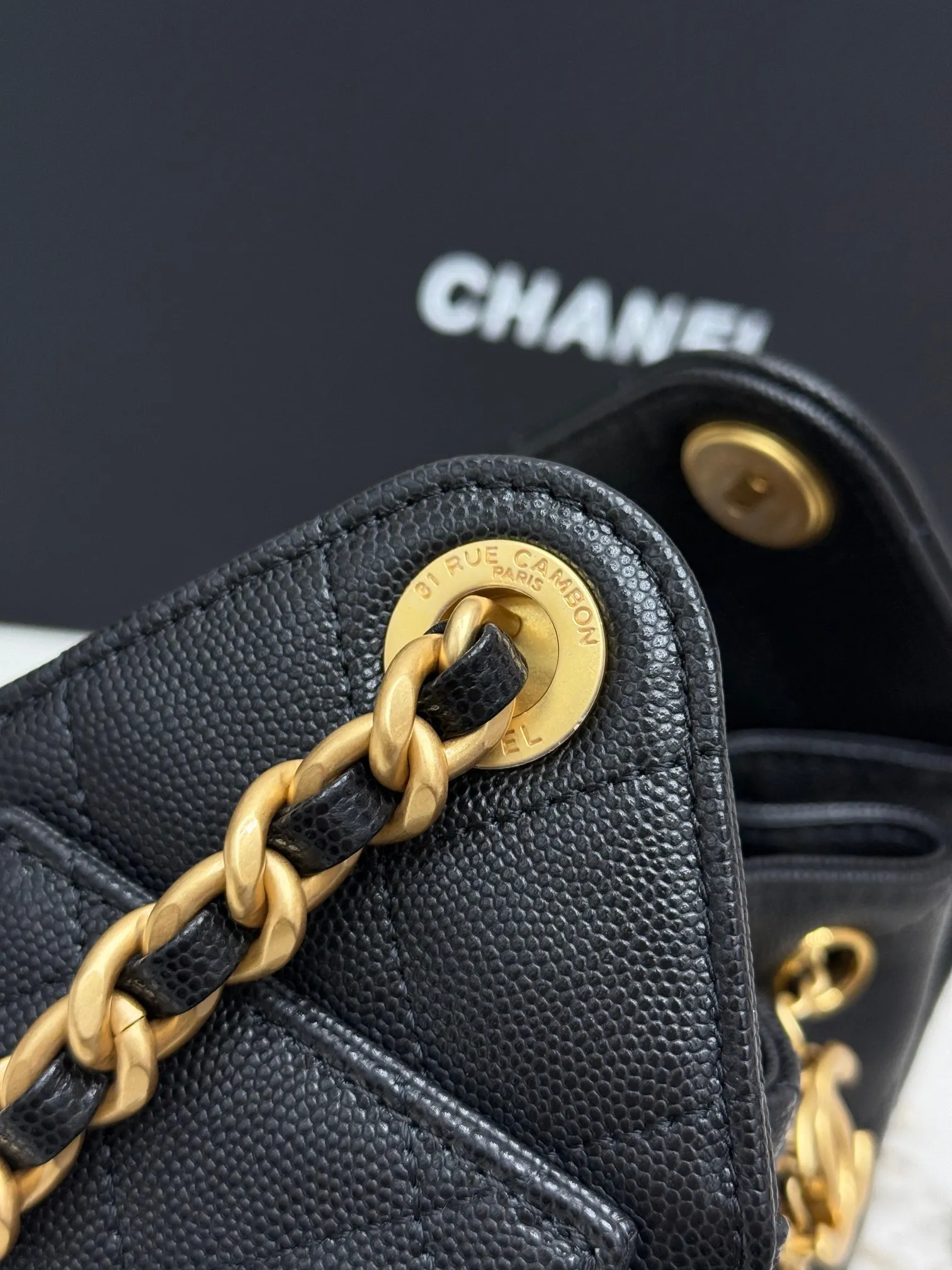 进口原厂皮 CHANEL 迷你 原单货 香奈儿单肩包 25Bag 26C 金色双C Logo 菱格图案皮穿链条 颗粒压花进口鱼子酱球纹小牛皮 𝗆𝗂𝗇𝗂 经典黑金 秀场热门𝗁𝗈𝖻𝗈 设计独特 多口袋的设计简直将随性慵懒感拉满 搭配光泽感十足的复古五金 logo 可以说是这一季的王者了型号 AS5631 尺寸 长22x宽12.5x高20cm