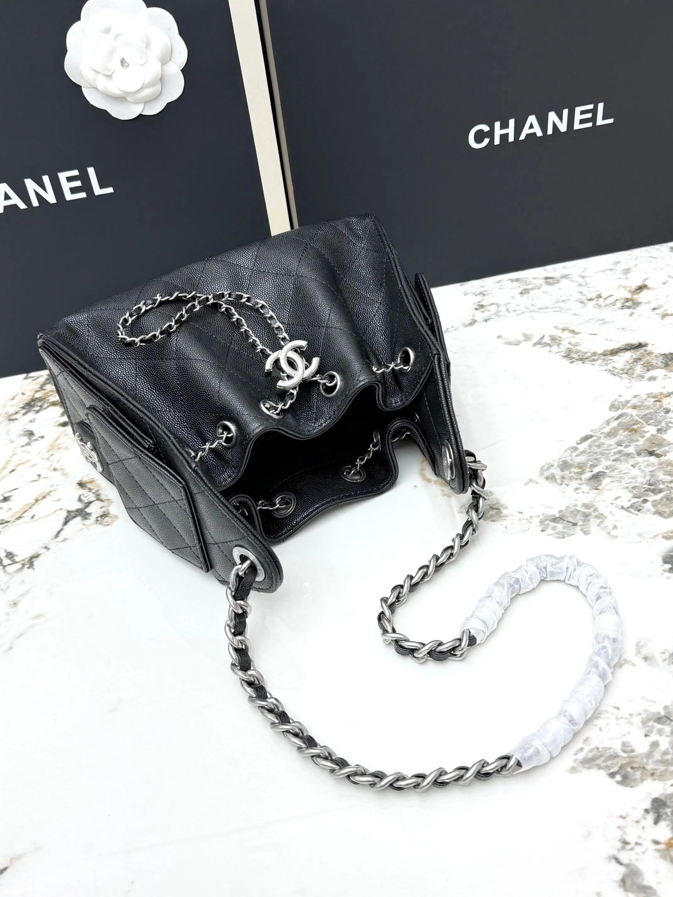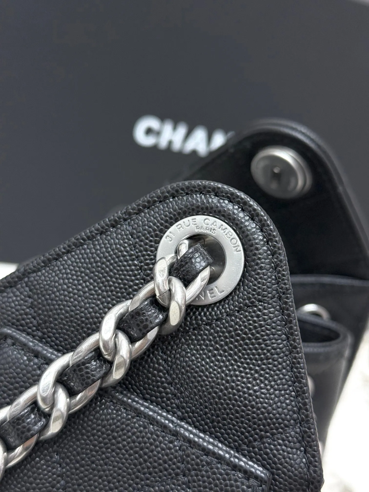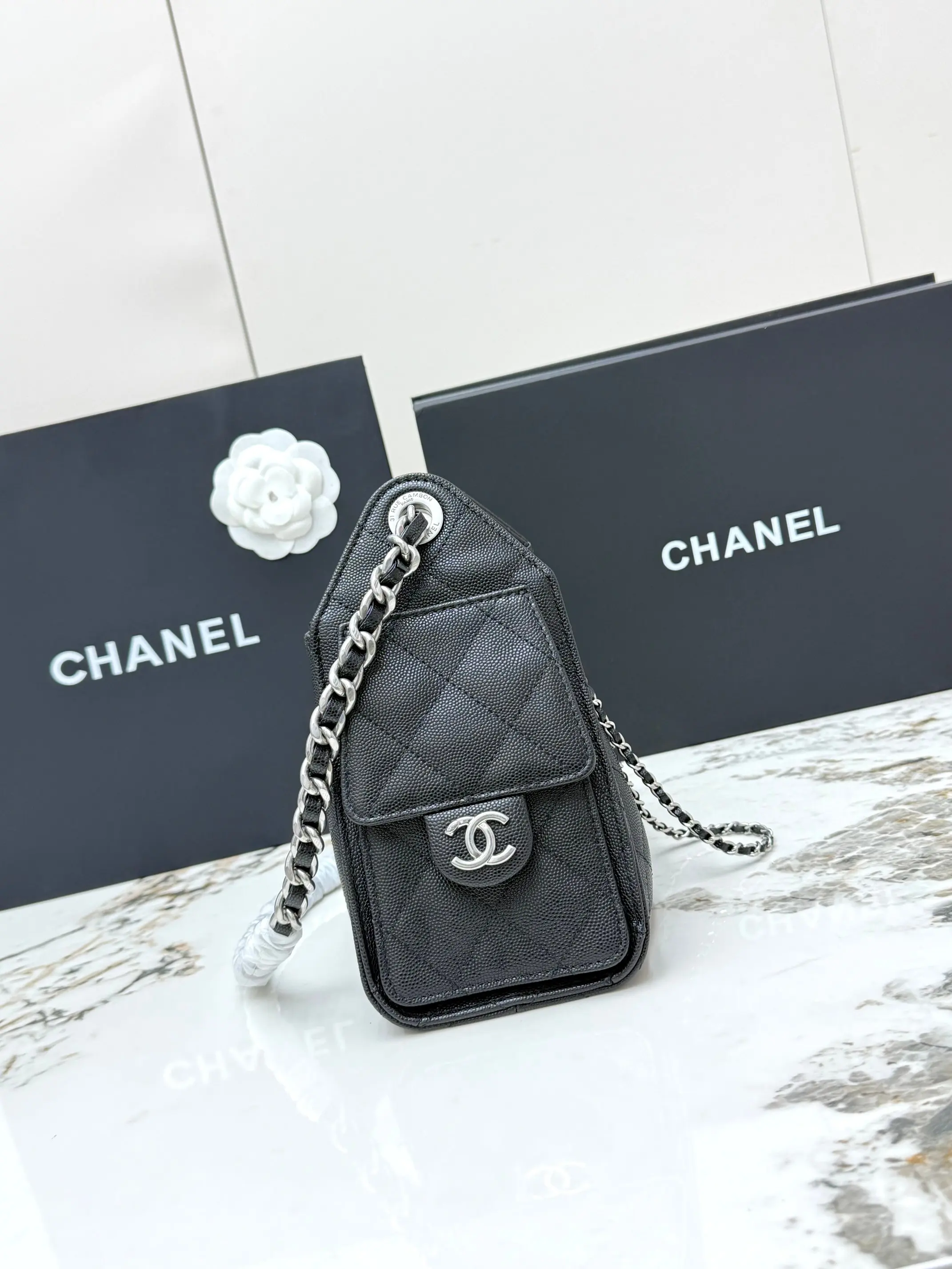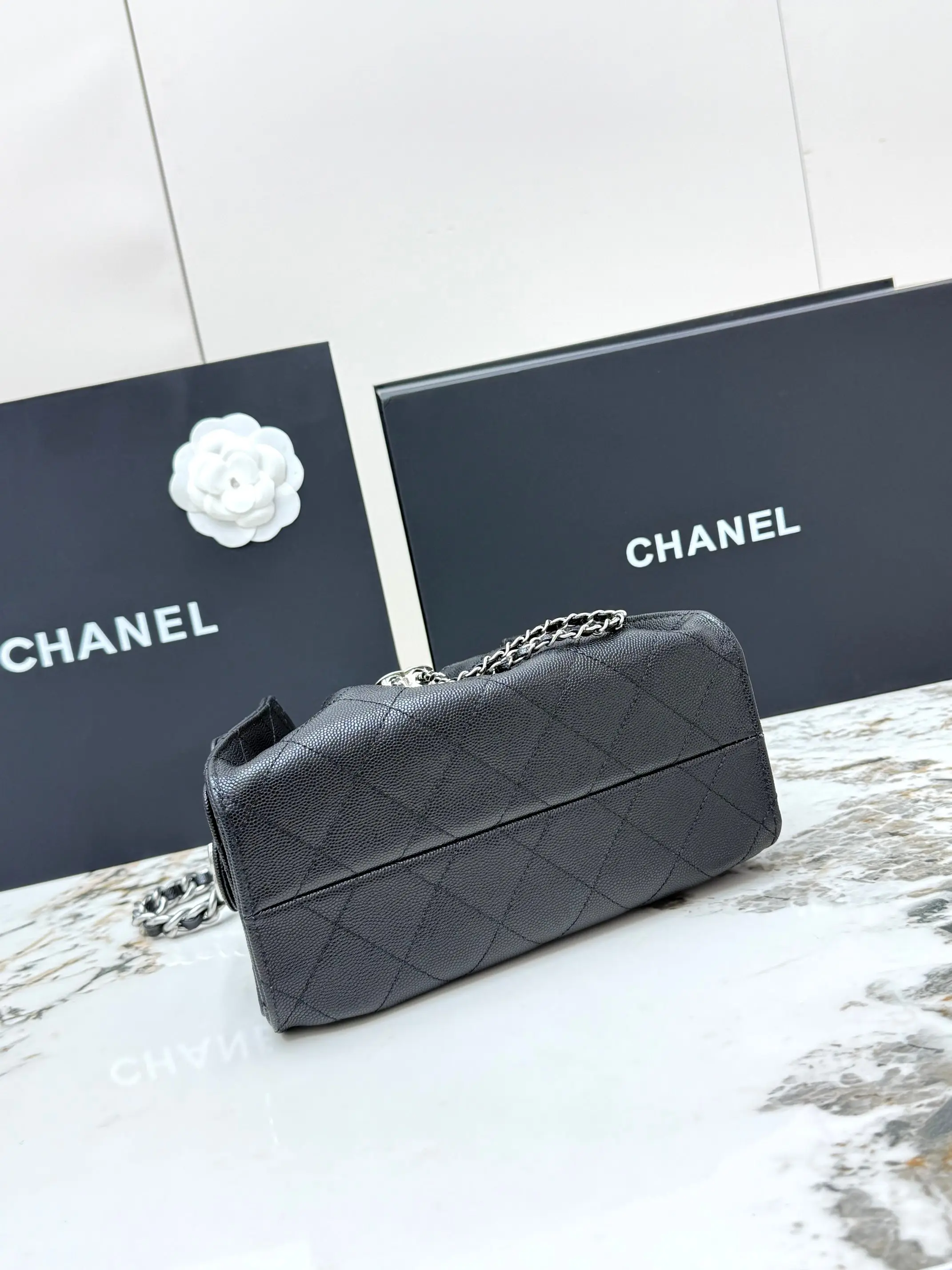 进口原厂皮 CHANEL 迷你 原单货 香奈儿单肩包 25Bag 26C 银色双C Logo 菱格图案皮穿链条 颗粒压花进口鱼子酱球纹小牛皮 𝗆𝗂𝗇𝗂 经典黑银 秀场热门𝗁𝗈𝖻𝗈 设计独特 多口袋的设计简直将随性慵懒感拉满 搭配光泽感十足的复古五金 logo 可以说是这一季的王者了型号 AS5631 尺寸 长22x宽12.5x高20cm