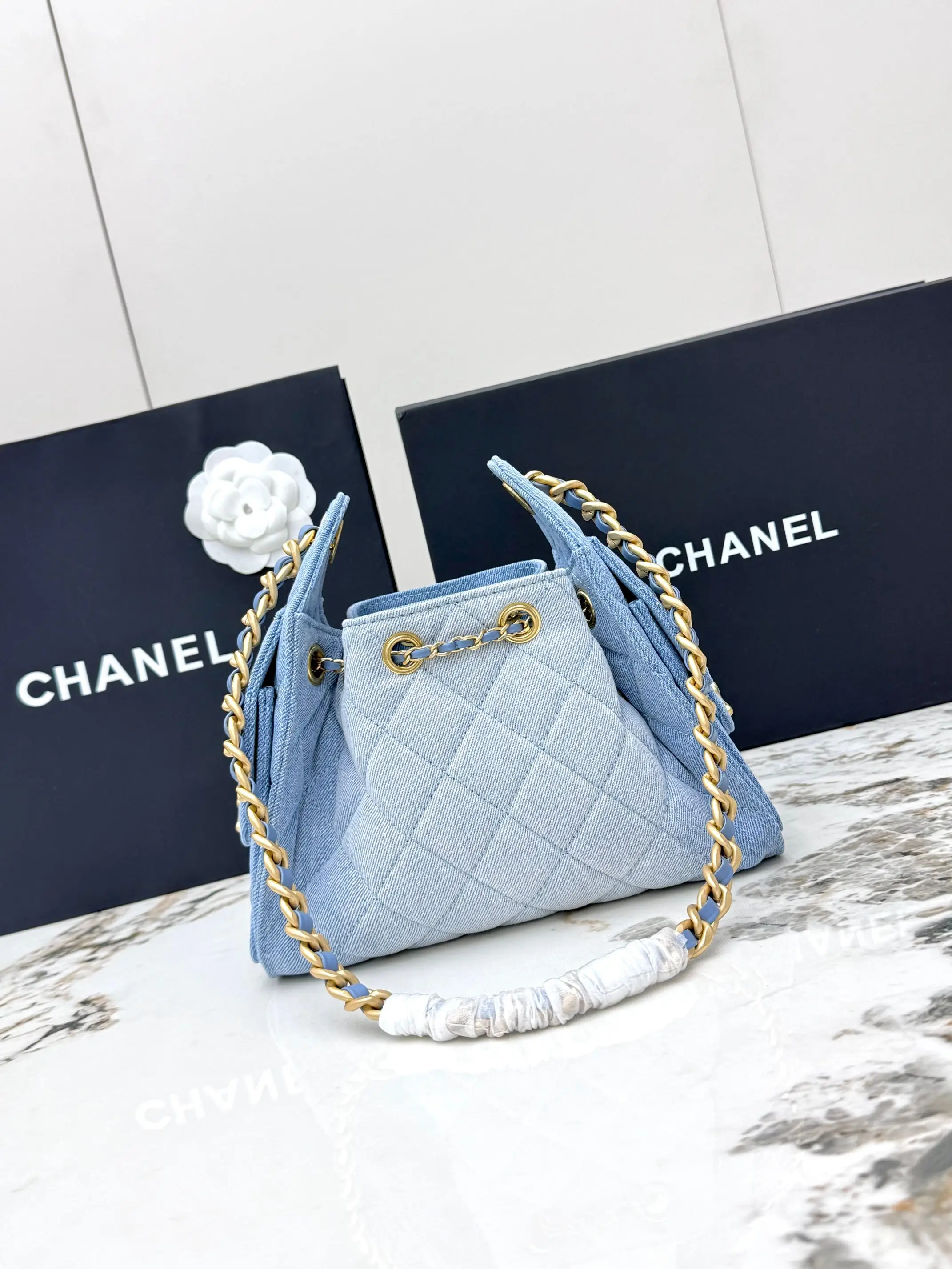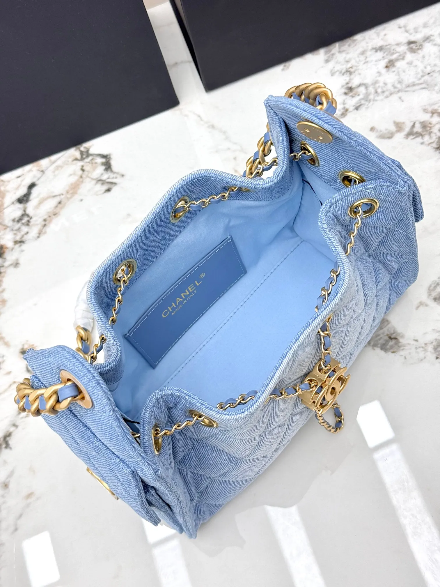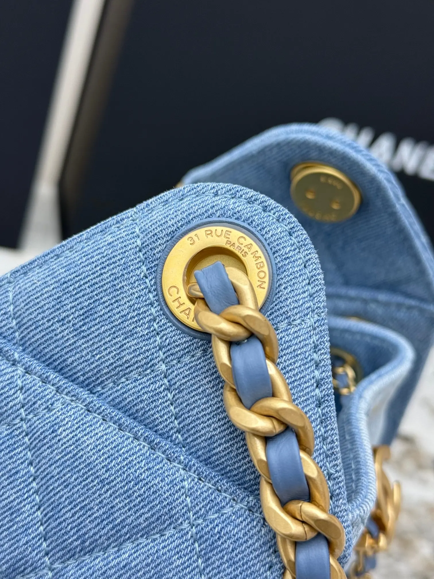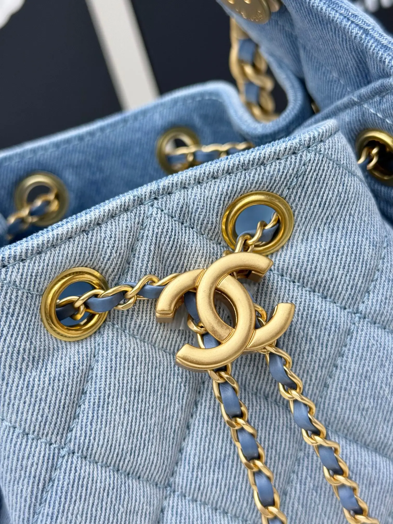 进口原厂皮 CHANEL 迷你牛仔布 原单货 香奈儿单肩包 25Bag 26C 金色双C Logo 菱格图案皮穿链条 颗粒压花进口牛仔布 𝗆𝗂𝗇𝗂 经典黑金 秀场热门𝗁𝗈𝖻𝗈 设计独特 多口袋的设计简直将随性慵懒感拉满 搭配光泽感十足的复古五金 logo 可以说是这一季的王者了型号 AS5631 尺寸 长22x宽12.5x高20cm