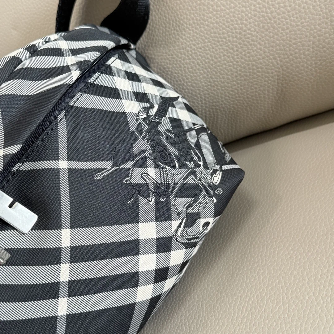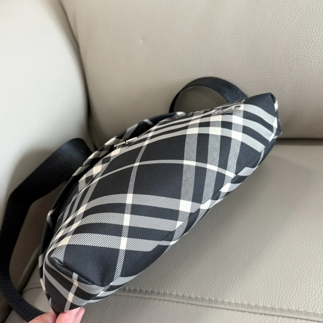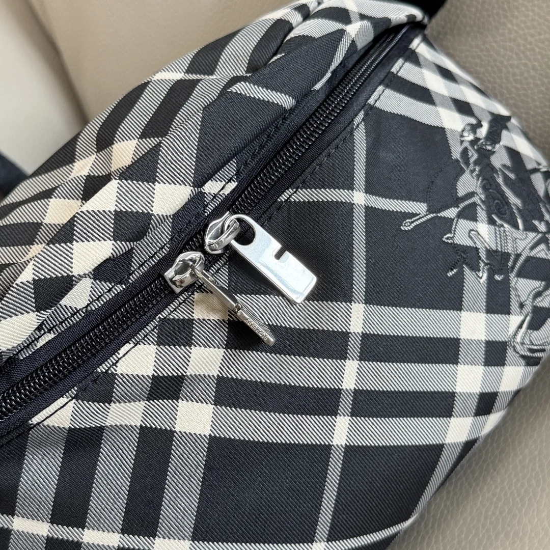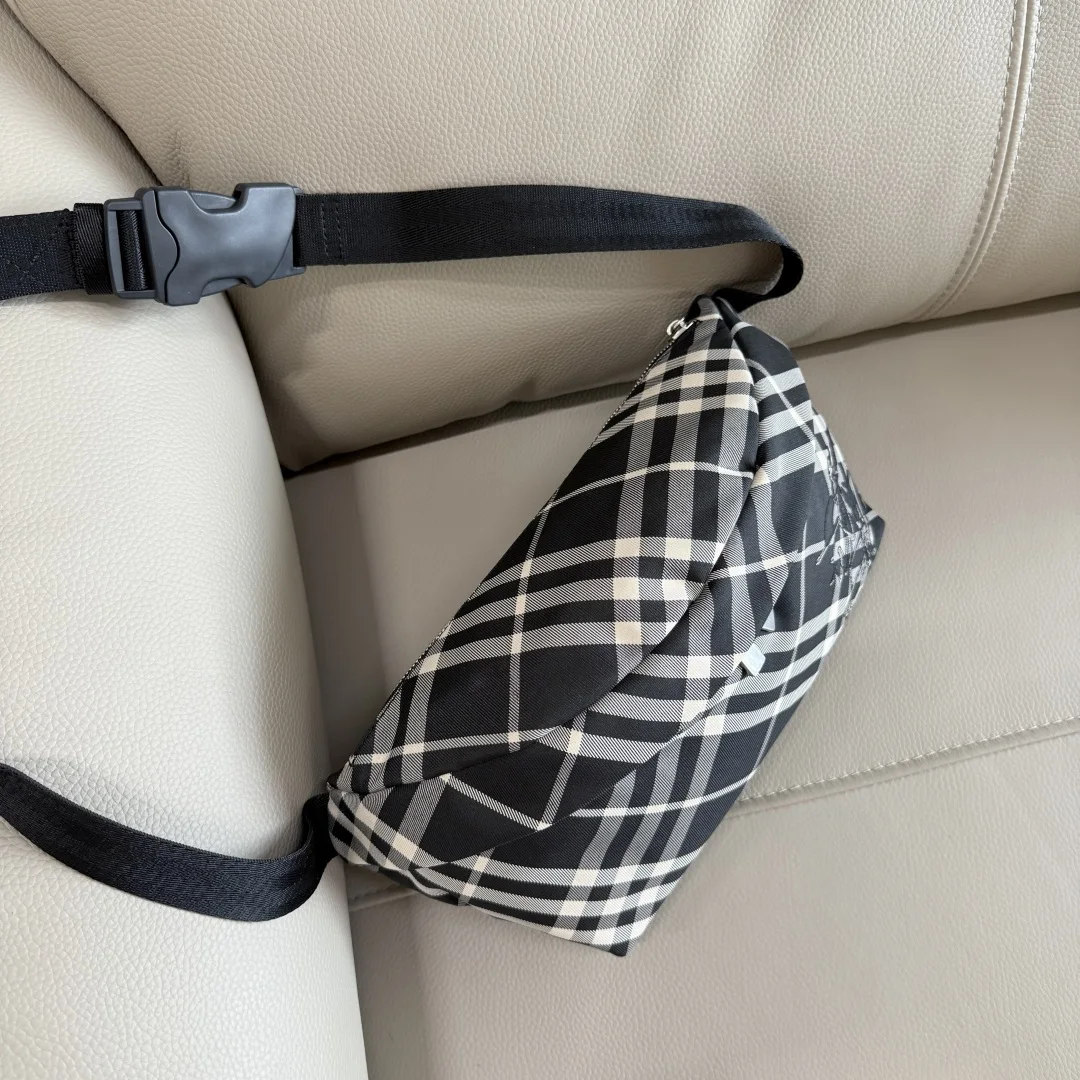 原厂 B家最新款腰包 装饰精纺 Bur专属格纹 内讨为同种面料 点缀马术骑士徽标 (EKD 贴花 搭配 B 字型拉链头 设有可调式肩背带 可缔造斜背造型 来自