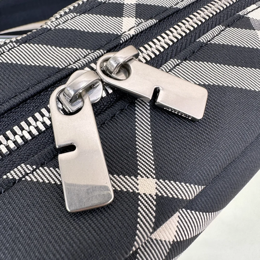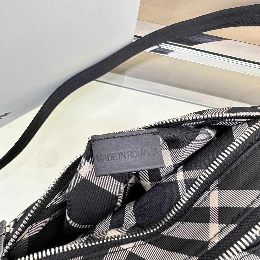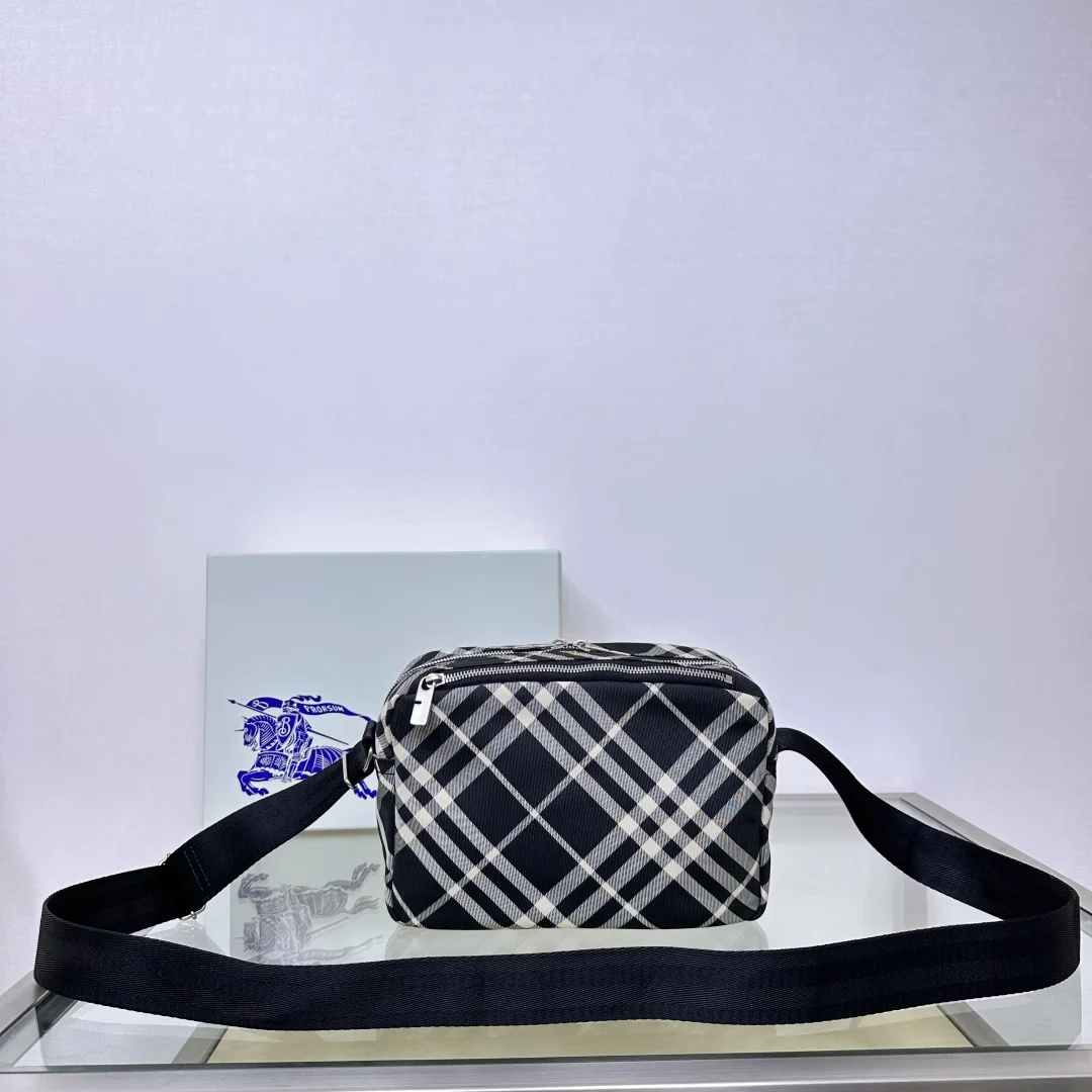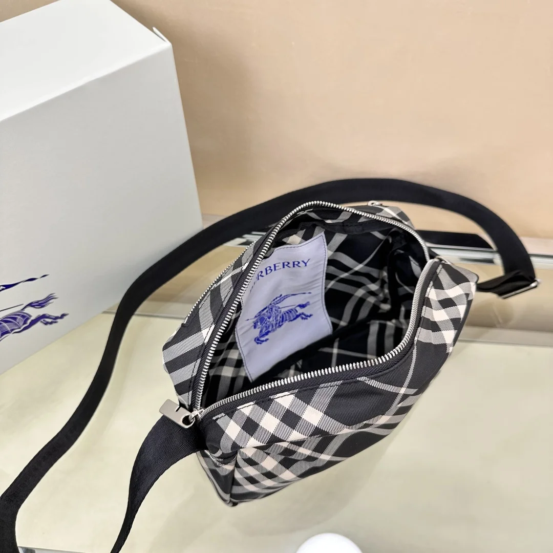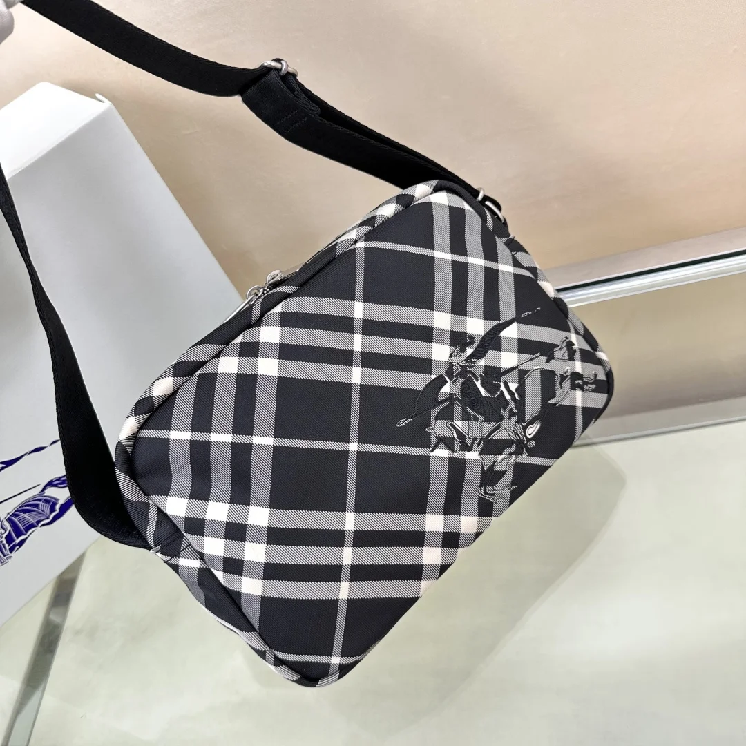 原厂 B家最新斜背包 装饰精纺 Bur格纹 点缀马术骑士徽标(EKD 贴花 采用纯色内衬设计 搭配 B 字型拉链头 设有1个外口袋 可容纳各种小物件 来自 Bur经典之作系列 以鲜明品牌风格诠释衣橱必备款式 尺寸25 x 12× 18cm.