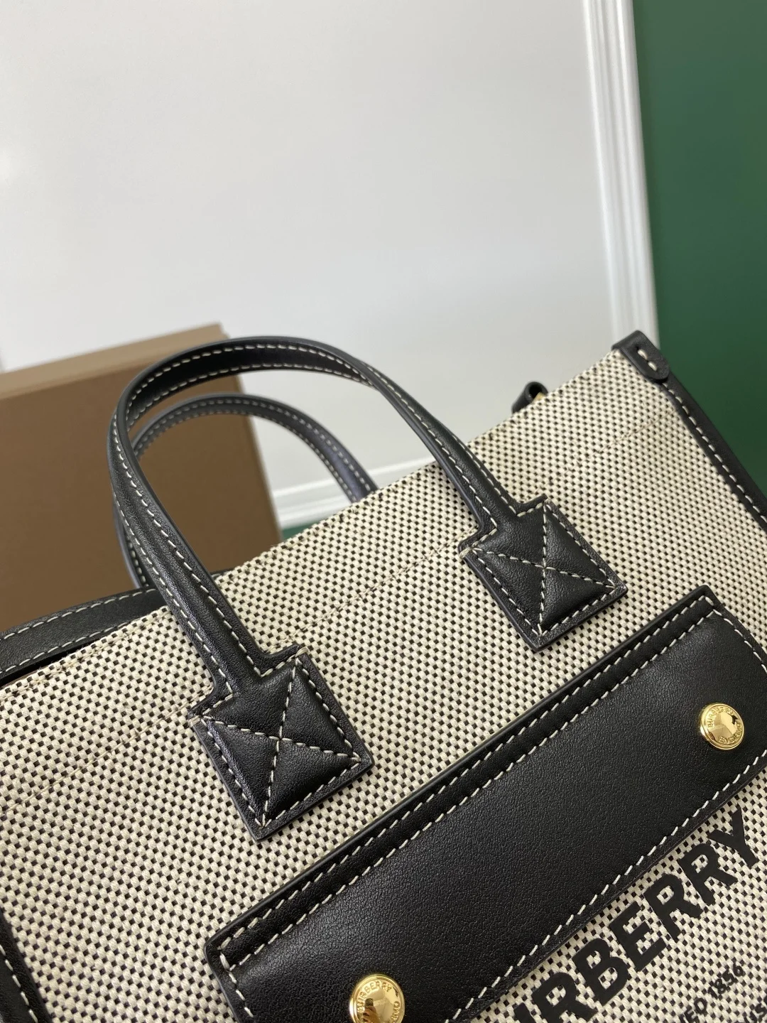 顶级 B家最新freya芙蕾包 意大利精制托特包 选用缉明线皮革及棉质帆布制成 装饰品牌 Horseferry 印花 可使用顶部提柄手拎 或使用可调式肩背带携带 23 x 8 x 19 cm型号143153