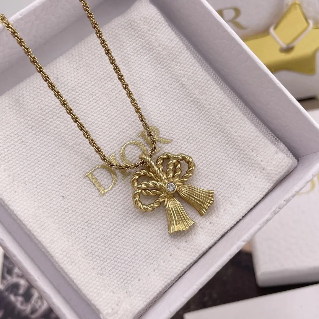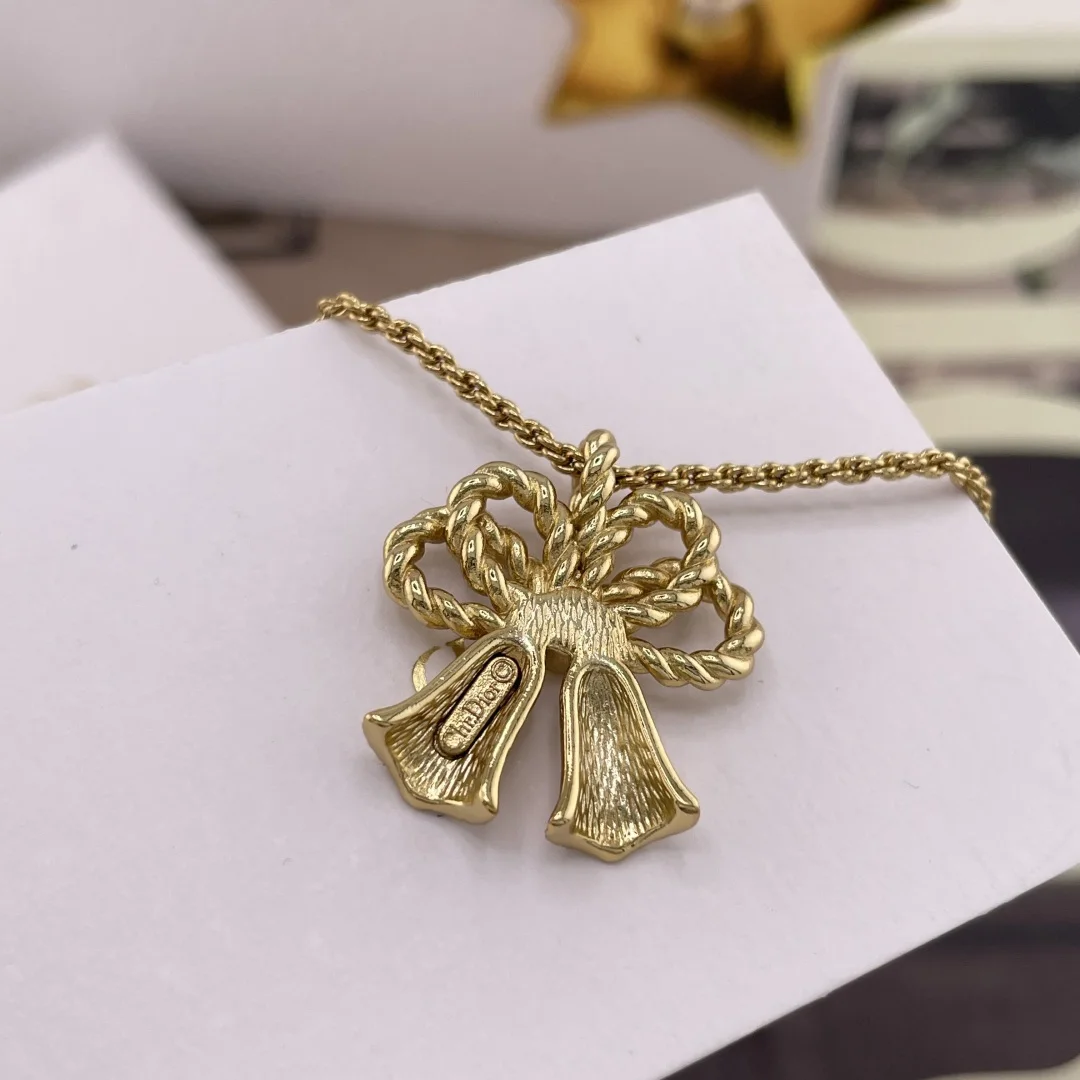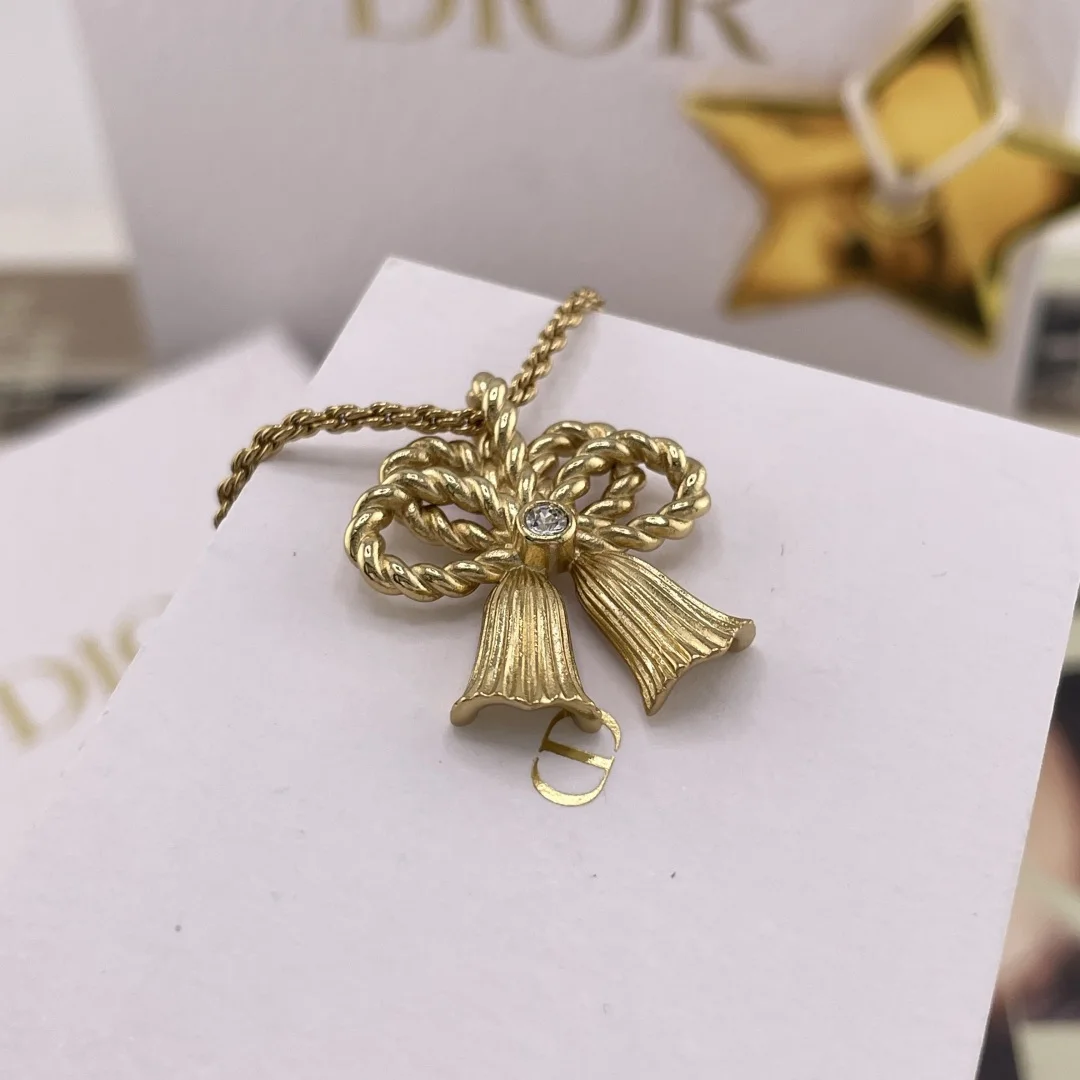 216816 D 金铃铛蝴蝶结项链 D!or vintage系列 越看越好看 丝毫不亚于Ch nel的vintage 人手必入 绝美铃铛设计 立体的设计 纯手工拉丝麻花蝴蝶结设计 整体的弧度跟错落感非常精致高级 认准我们家出品 好美好美上身着实令人喜欢得不得了 越看越有味道的vintage 每款均是我们可遇不可求的购入Z开发的 珍惜哈 值得珍藏的系列