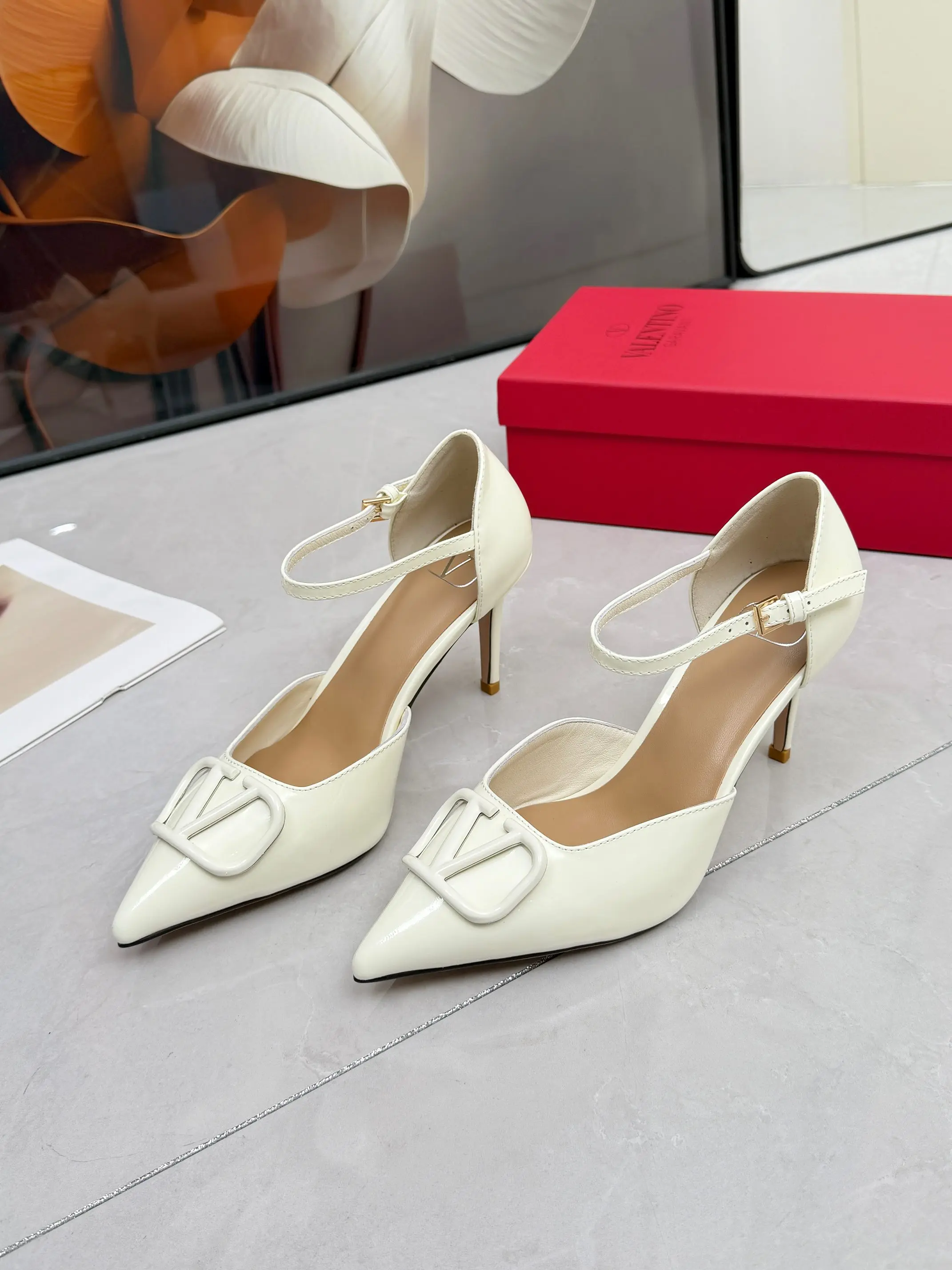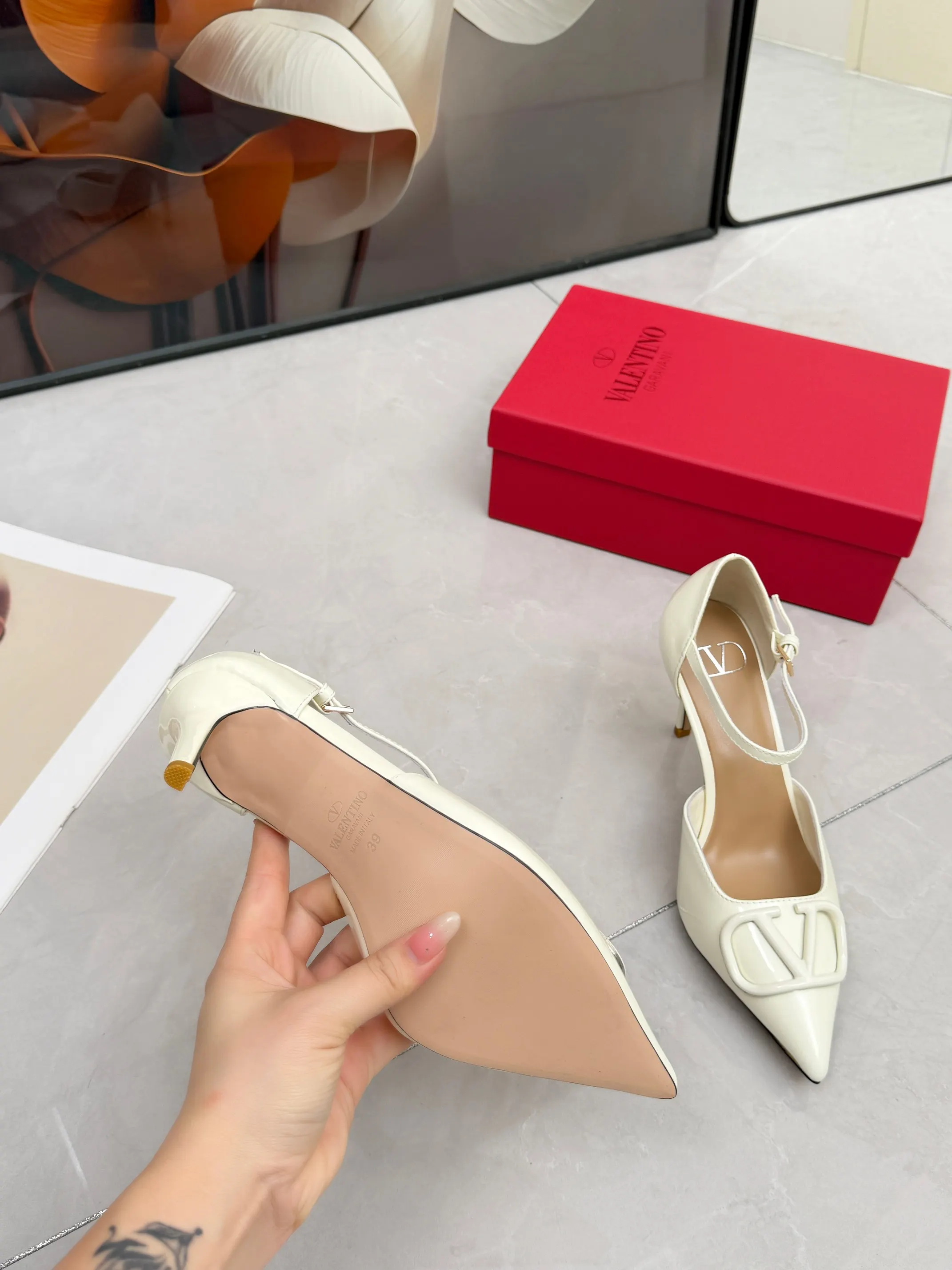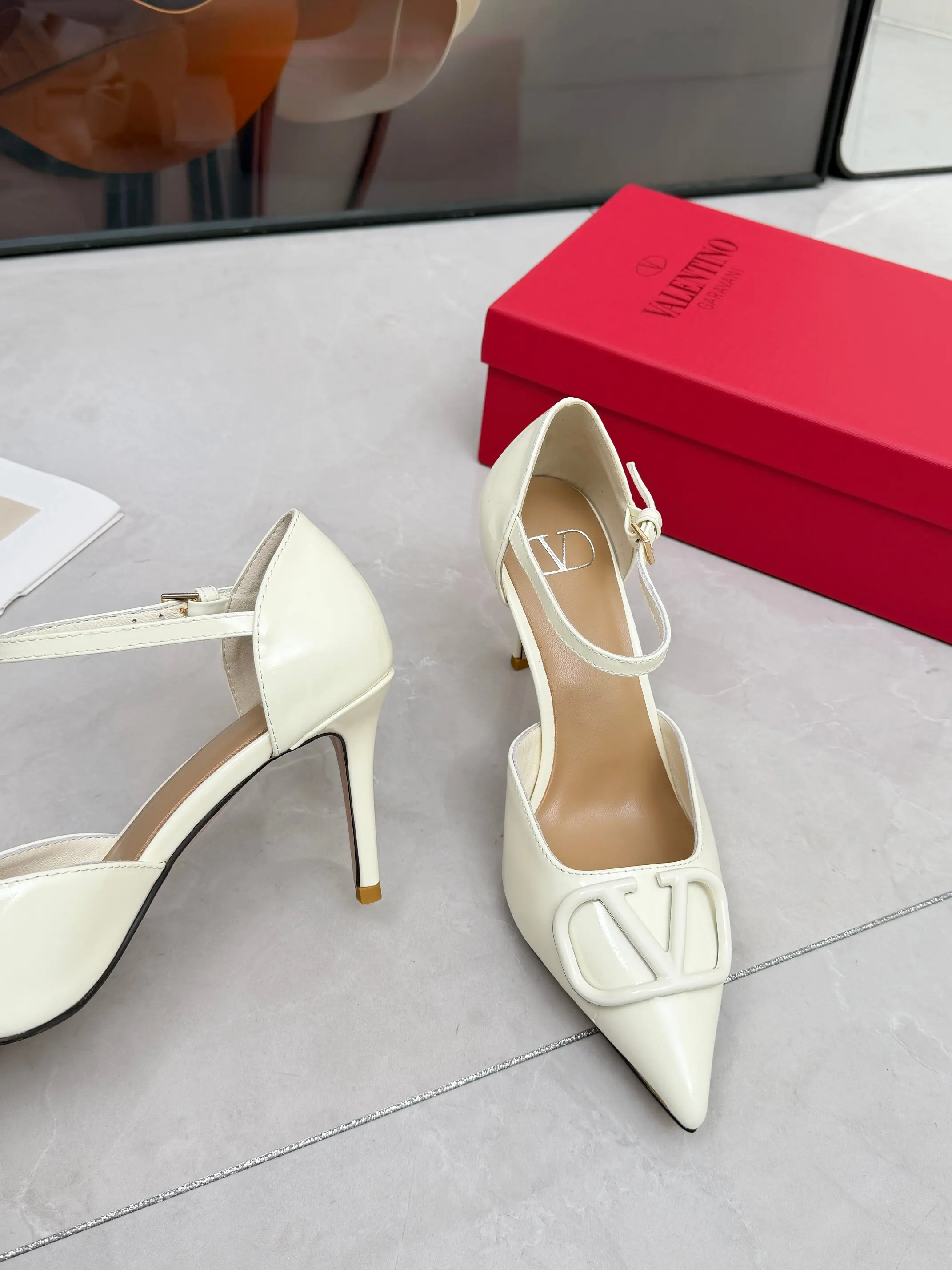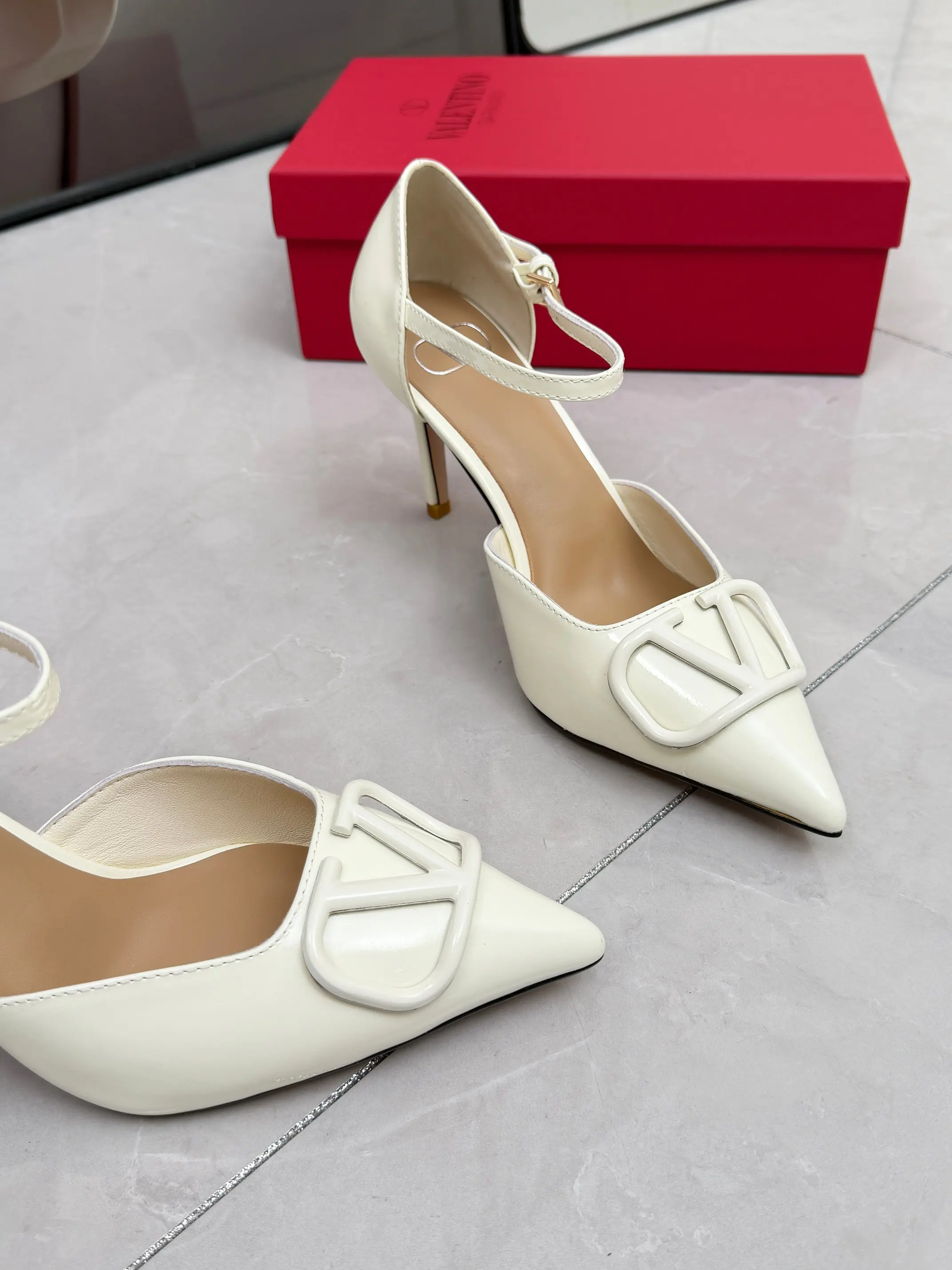 华伦天奴春季单鞋 大V字母扣.实拍图 码数35-41码 42可订做 跟高8厘米 面料全牛皮 内羊皮