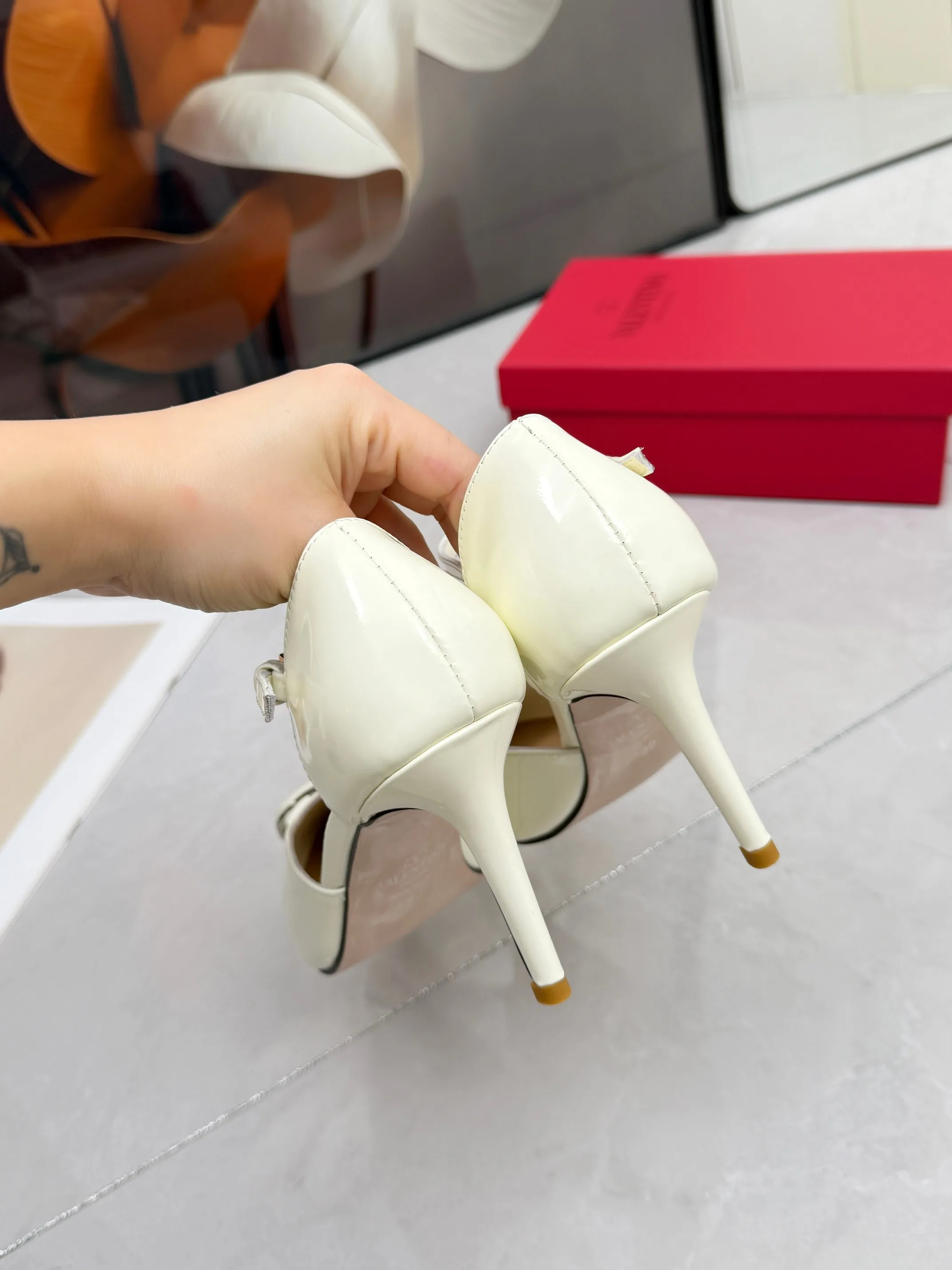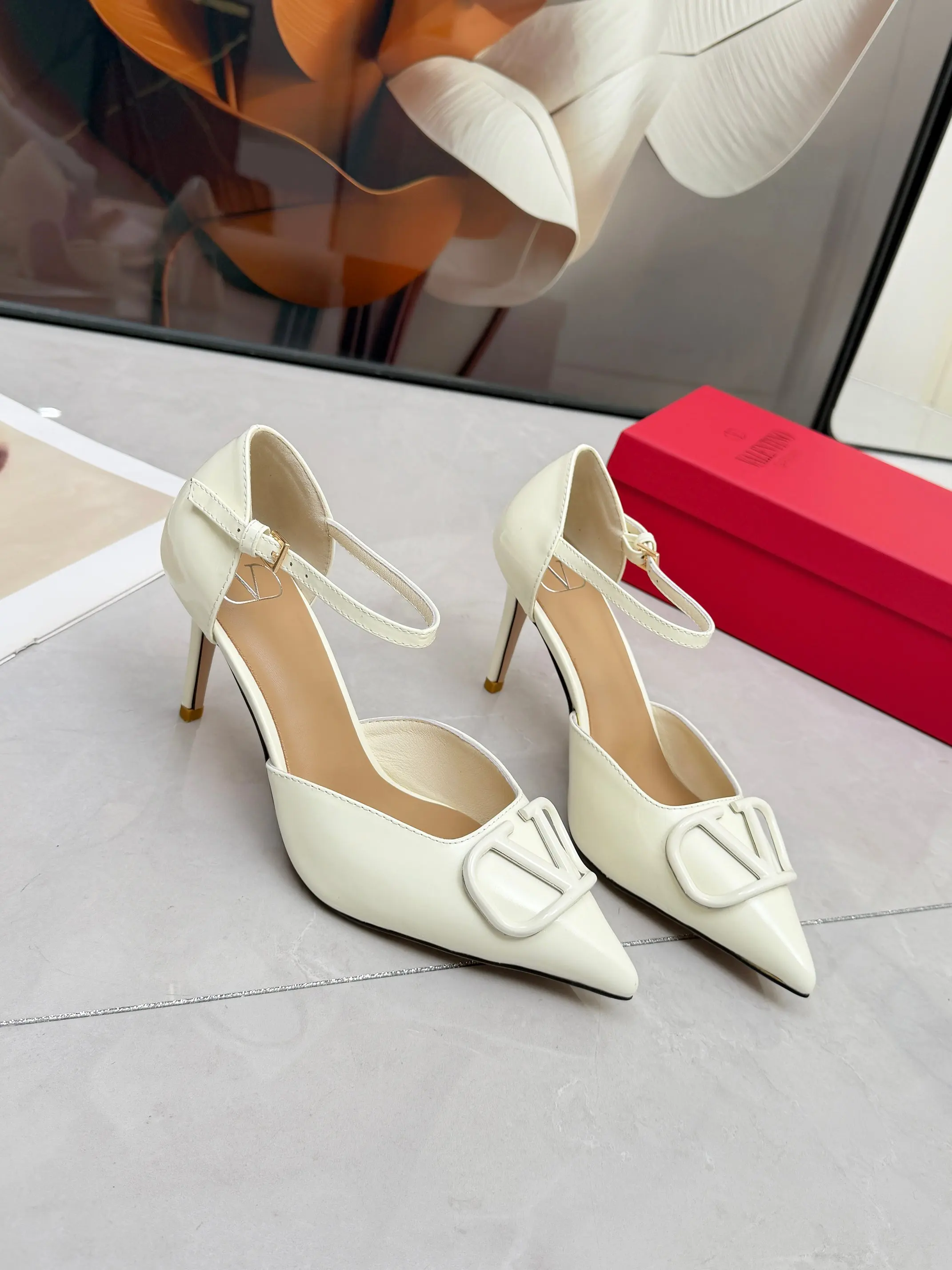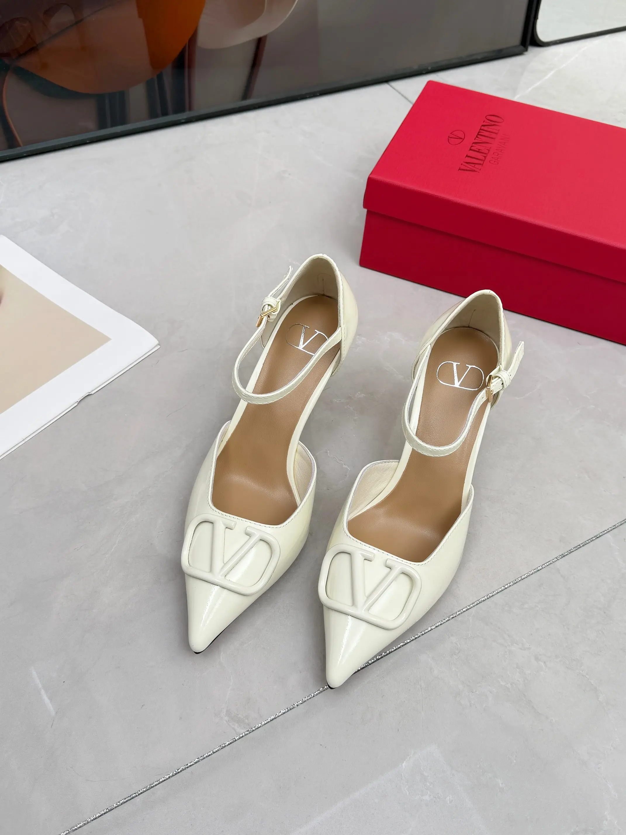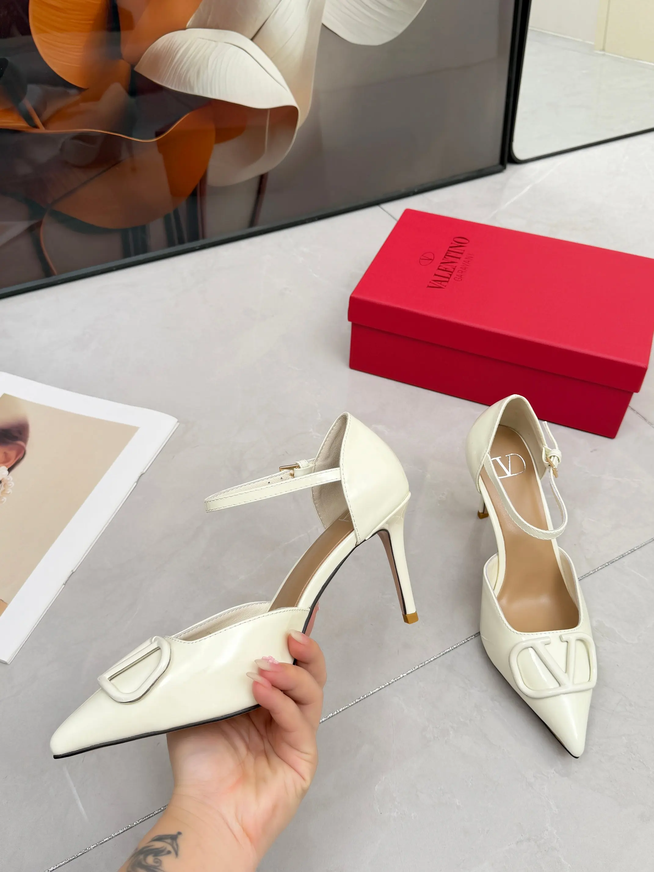 华伦天奴春季单鞋 大V字母扣.实拍图 码数35-41码 42可订做 跟高8厘米 面料全牛皮 内羊皮