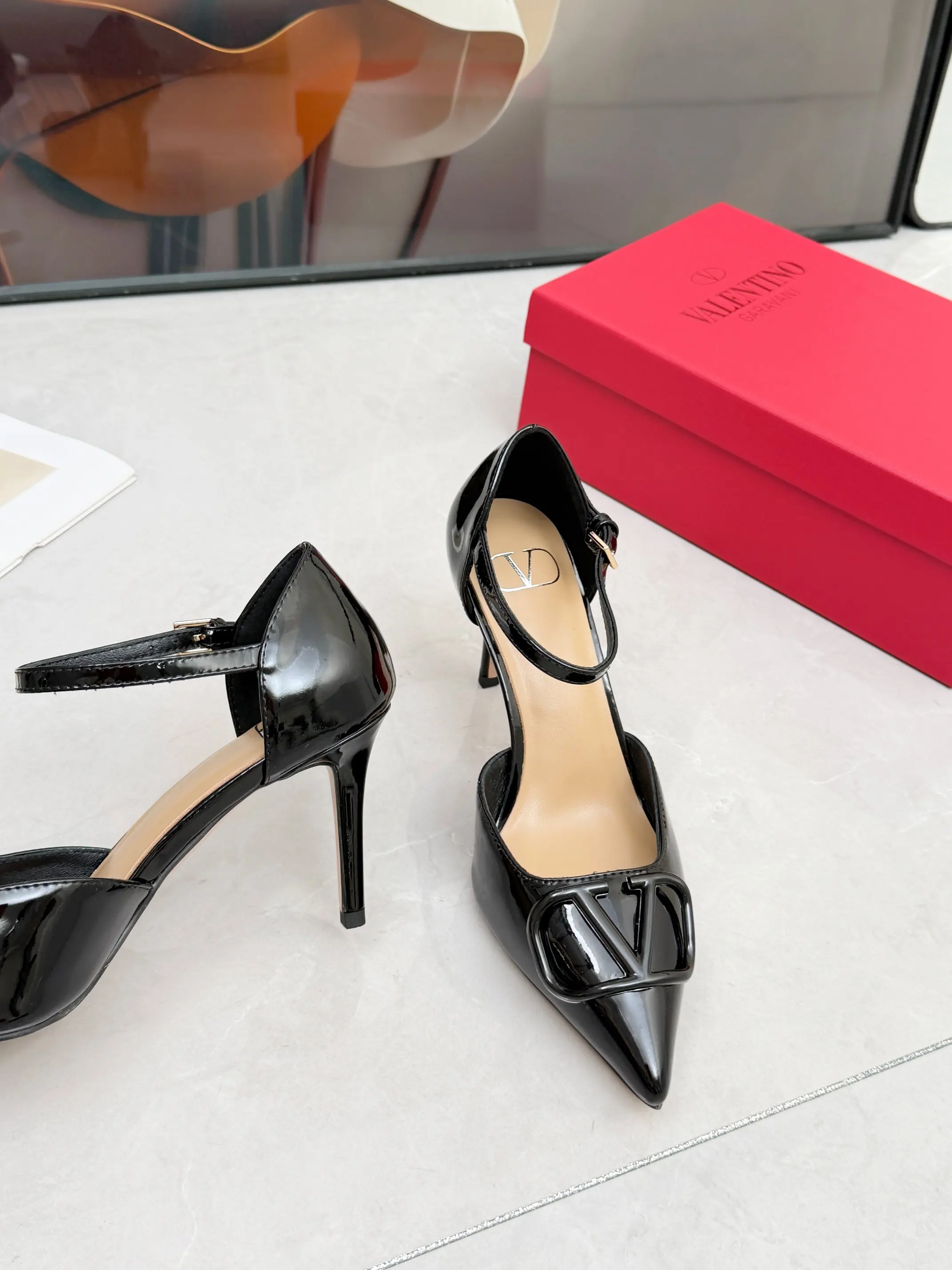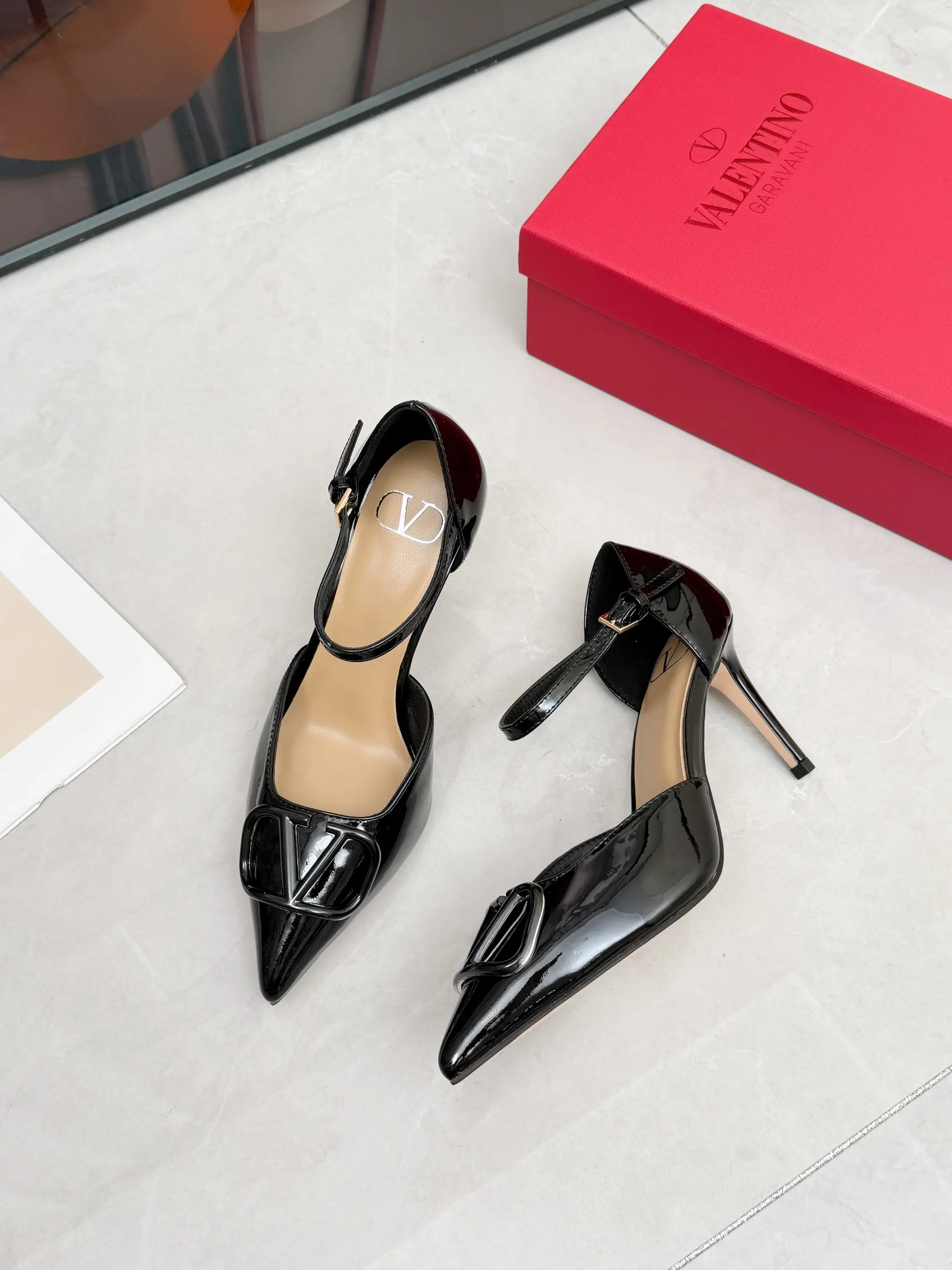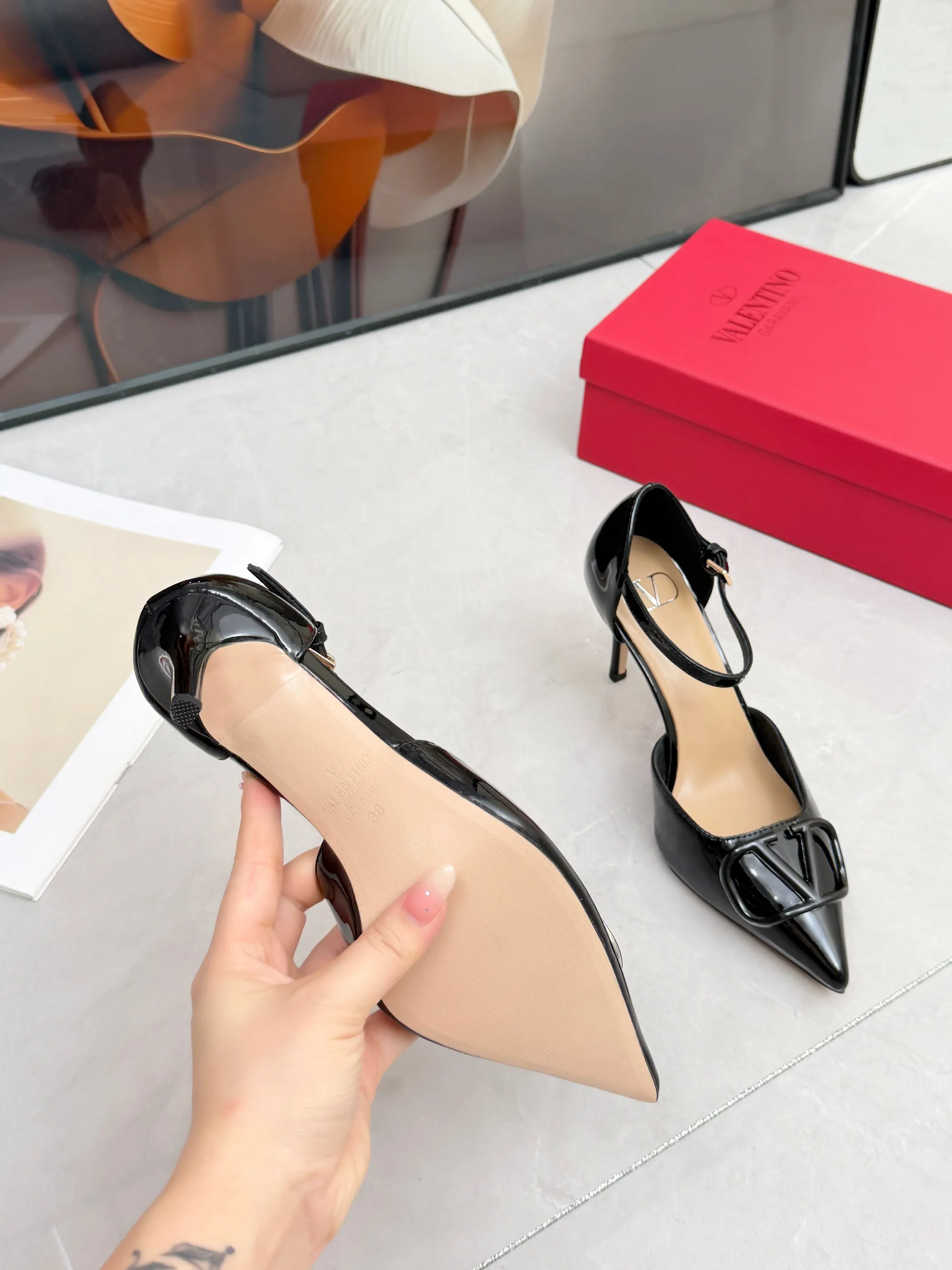 华伦天奴春季单鞋 大V字母扣.实拍图 码数35-41码 42可订做 跟高8厘米 面料全牛皮 内羊皮
