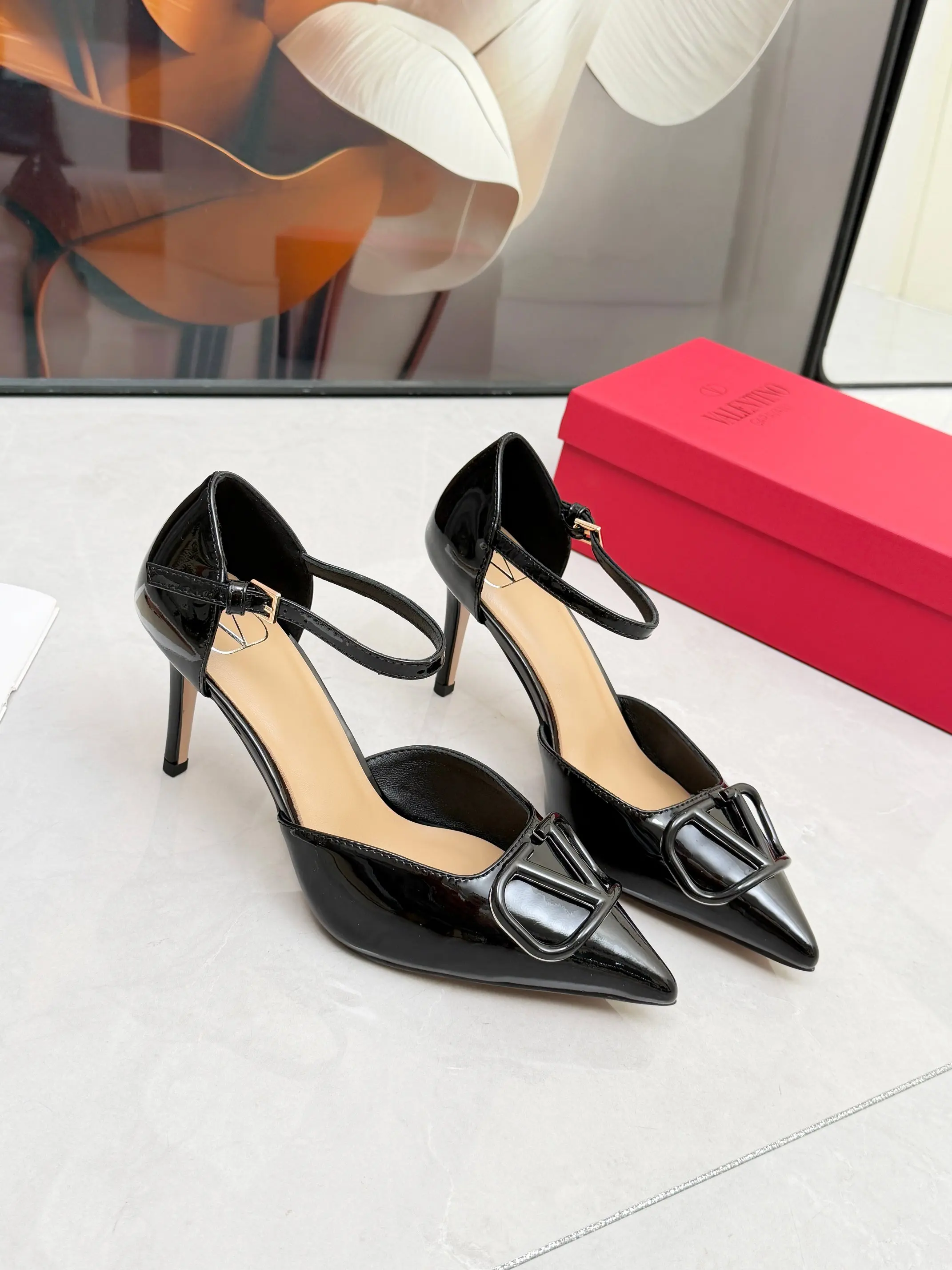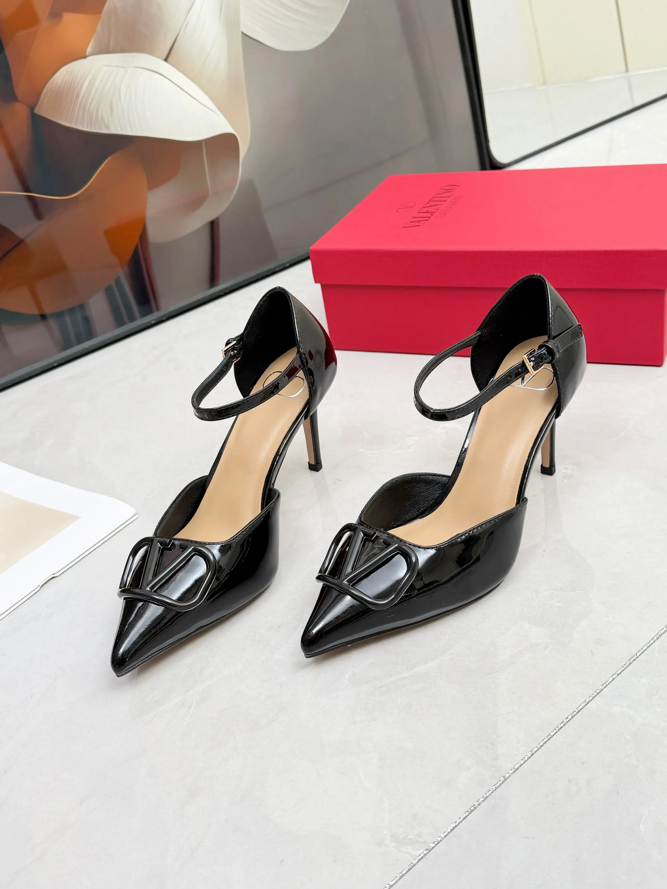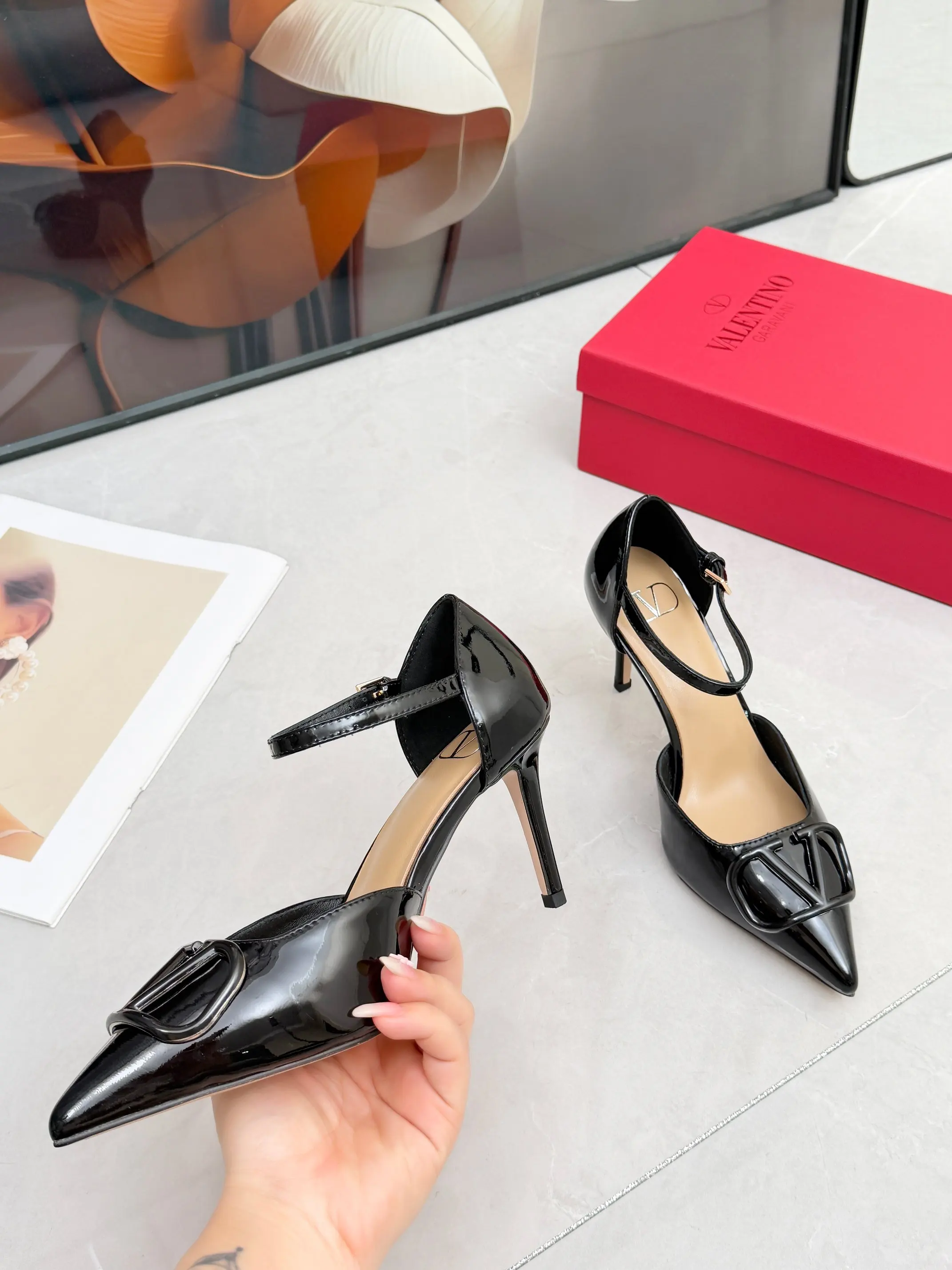 华伦天奴春季单鞋 大V字母扣.实拍图 码数35-41码 42可订做 跟高8厘米 面料全牛皮 内羊皮