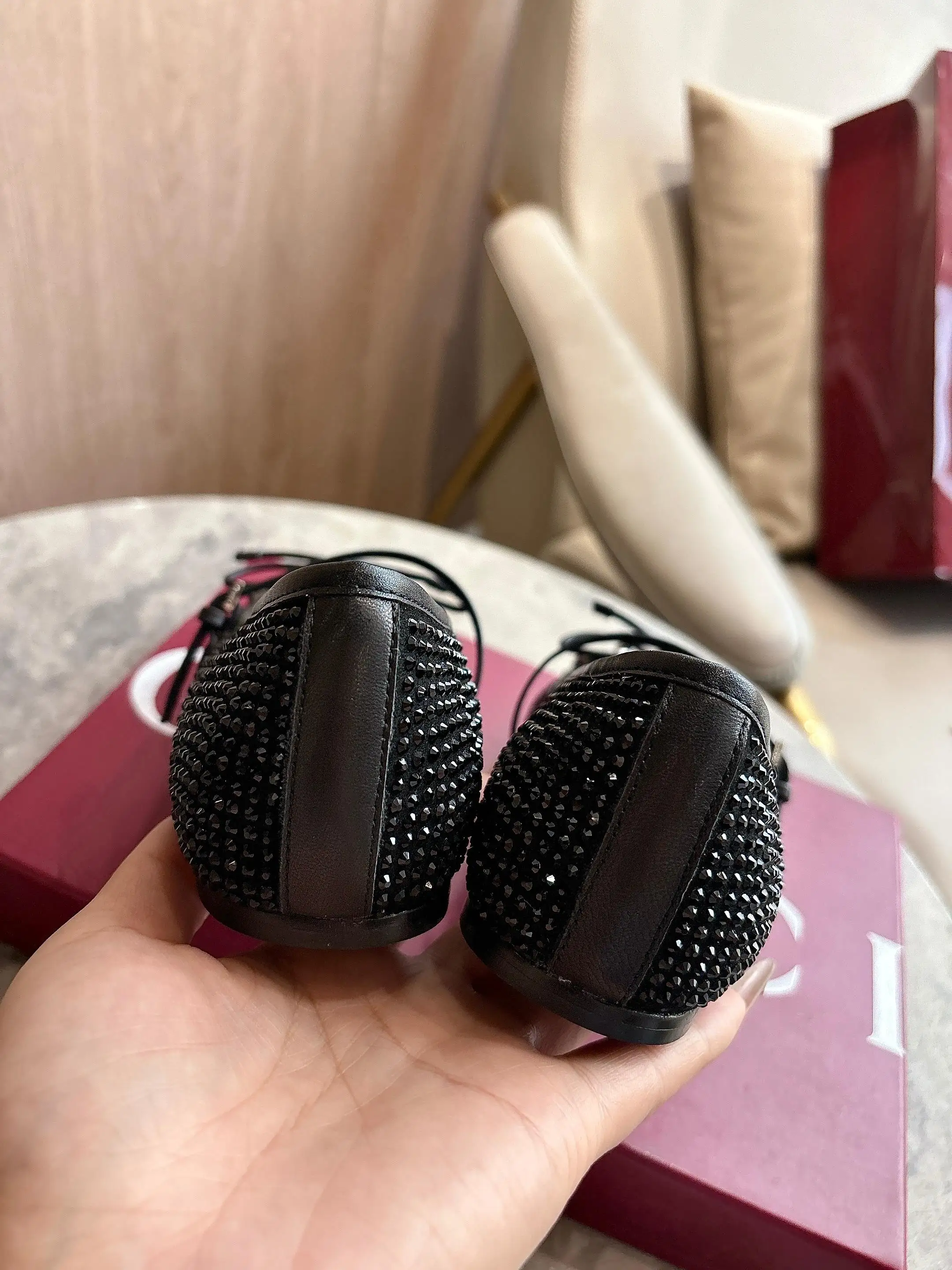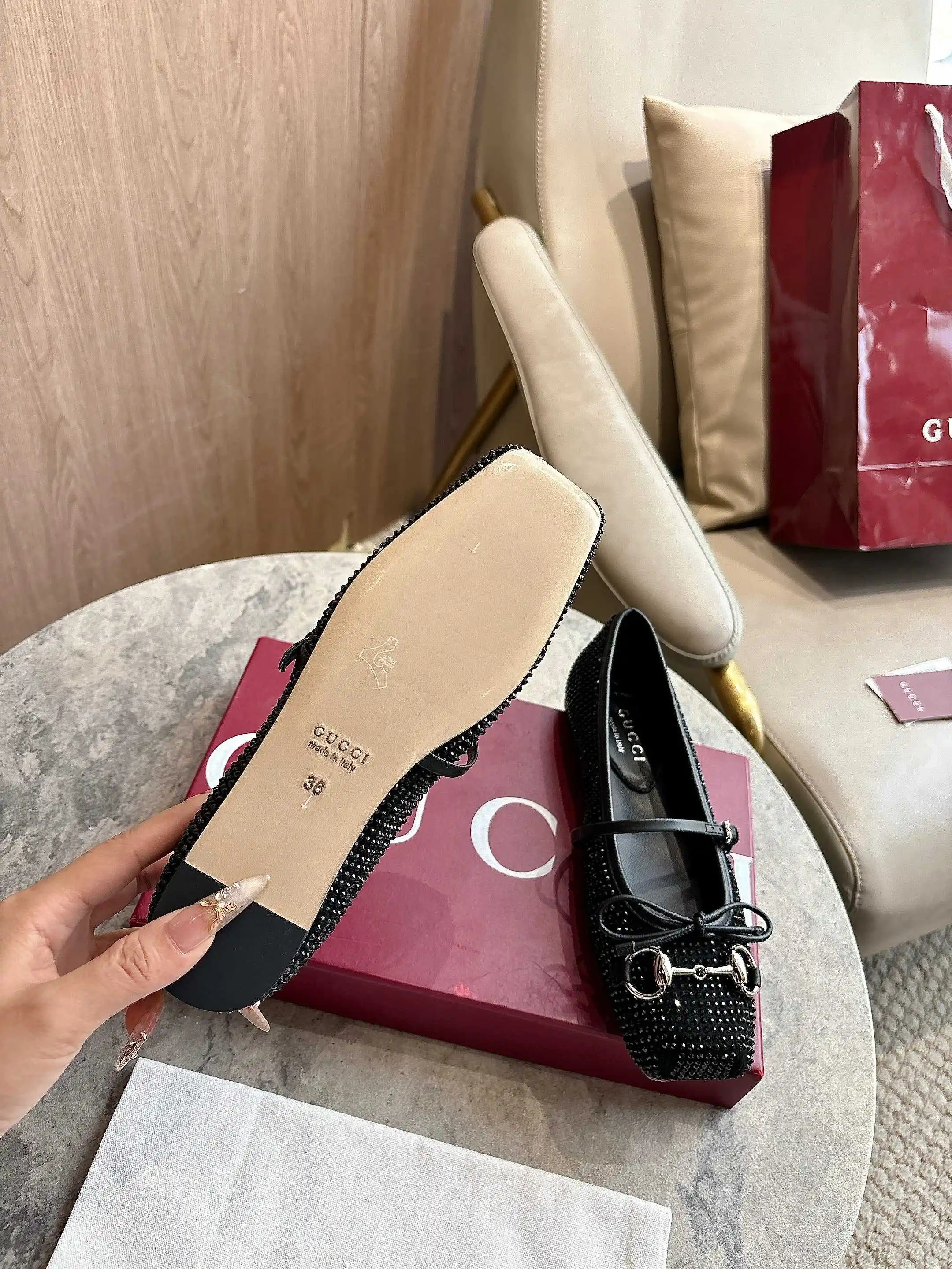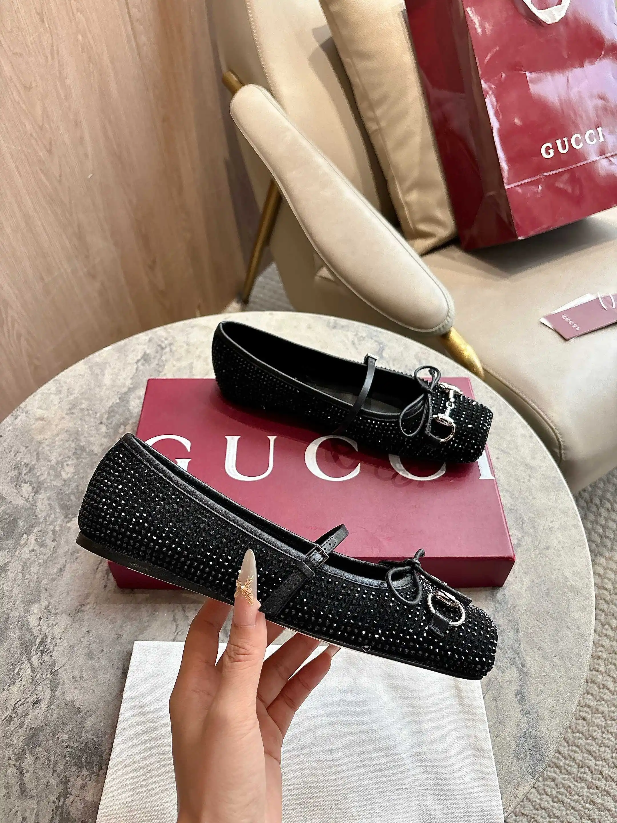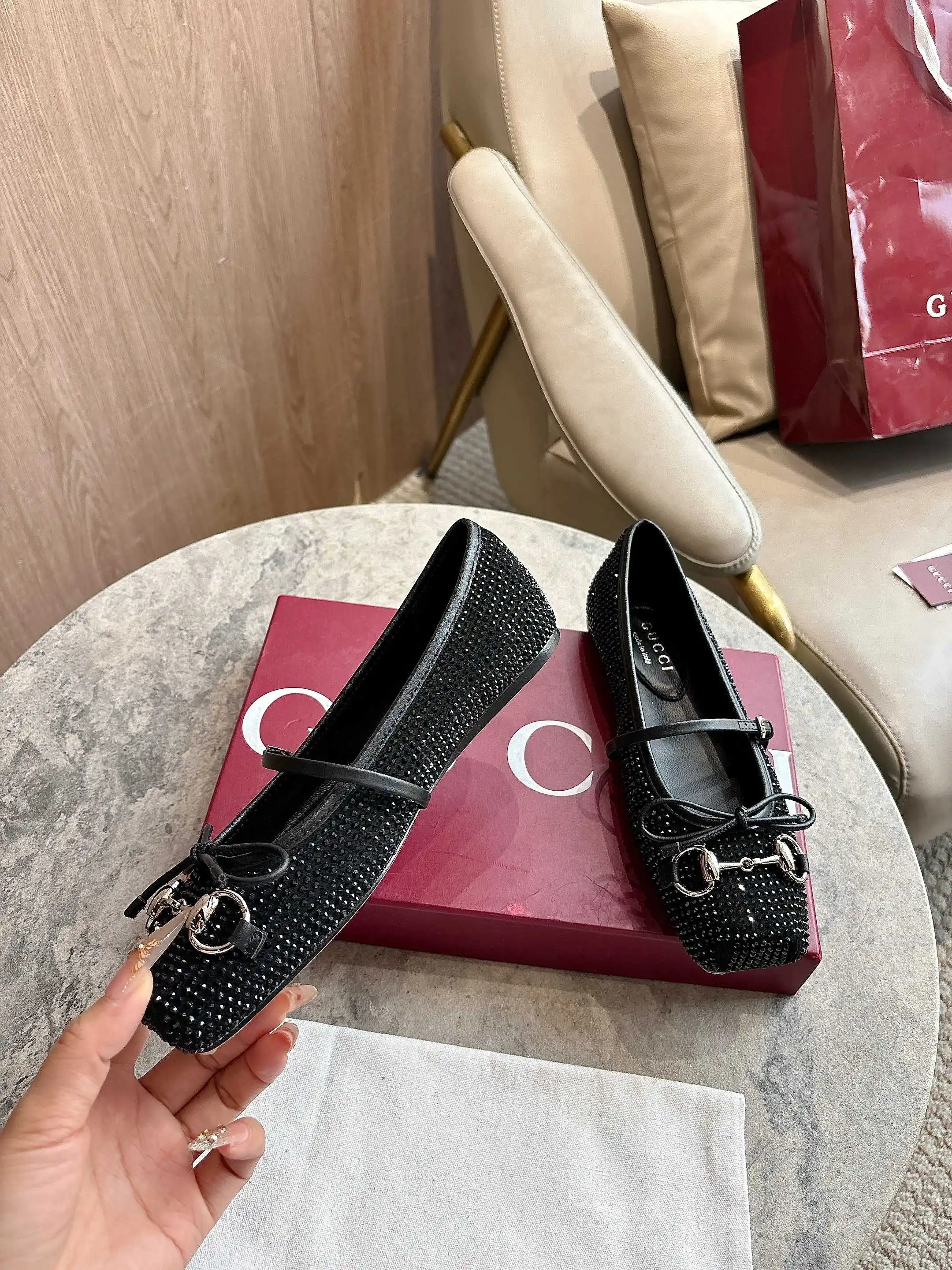 9099-6 黑 35-42 这款标志性马衔扣平底芭蕾舞鞋采用方形鞋头 搭配雅致的蝴蝶结细节 致意传统芭蕾舞鞋款型 这款芭蕾平底鞋甄选饰通体仿水晶黑色绒面材质打造 搭配银色调马衔扣 突显别样风采 Sacchetto 构造和柔软的加衬内底带来舒适穿着体验