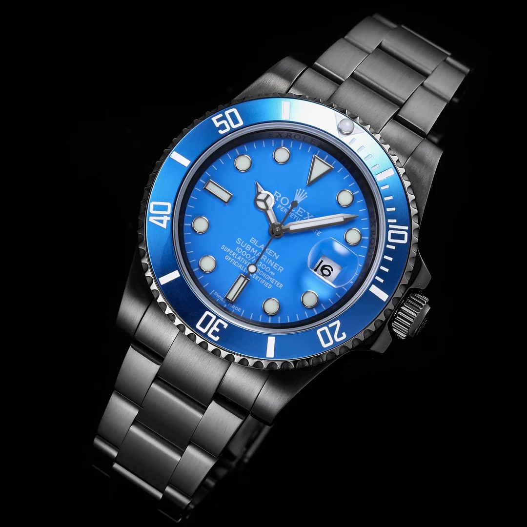 BLAKEN款水鬼系列 忠诚之蓝劳.力士Rolex碳黑钢皇 改装劳.力士水鬼系列 巅峰神器 1 BLAKEN高级改装水鬼系列 让您美美的 酷酷的 2 表身DLC黑色金刚膜 Blacken改装团队特有的暗夜黑表盘砂砾效果100%还原 3 搭载top海鸥2836机芯机械 稳定性强 4 直径40毫米 厚度11毫米