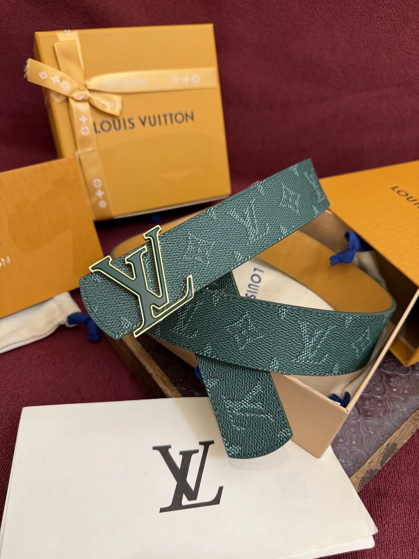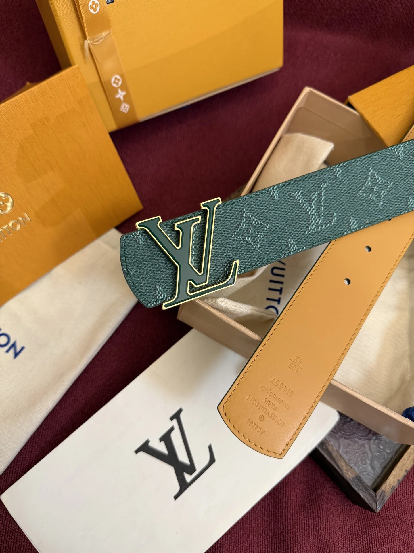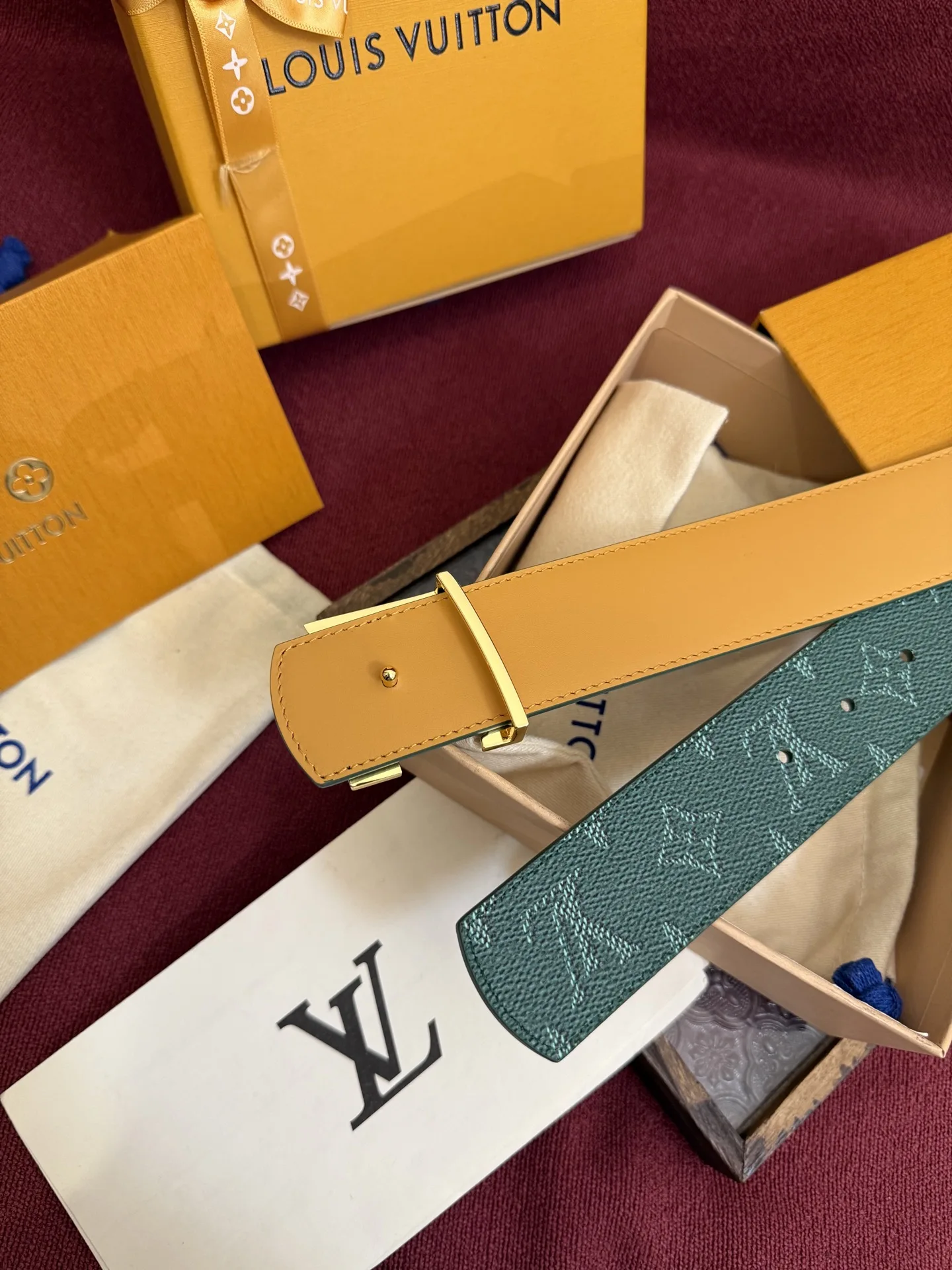LV Dimension Monogram Surplus 双面腰带焕新解读品牌标识 一面为 Monogram 涂层帆布渲染迷梦般色彩 另一面选择素雅皮革 与字母搭扣相得益彰