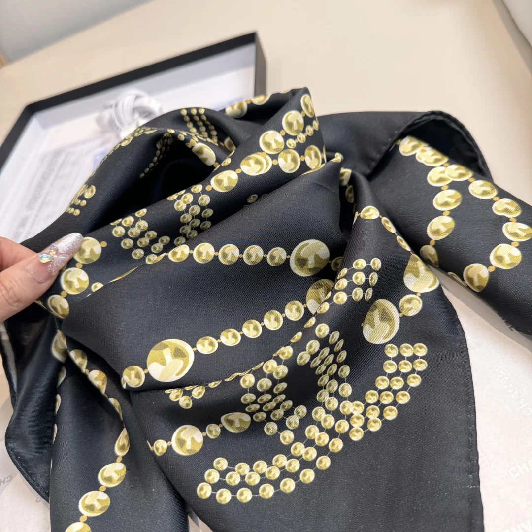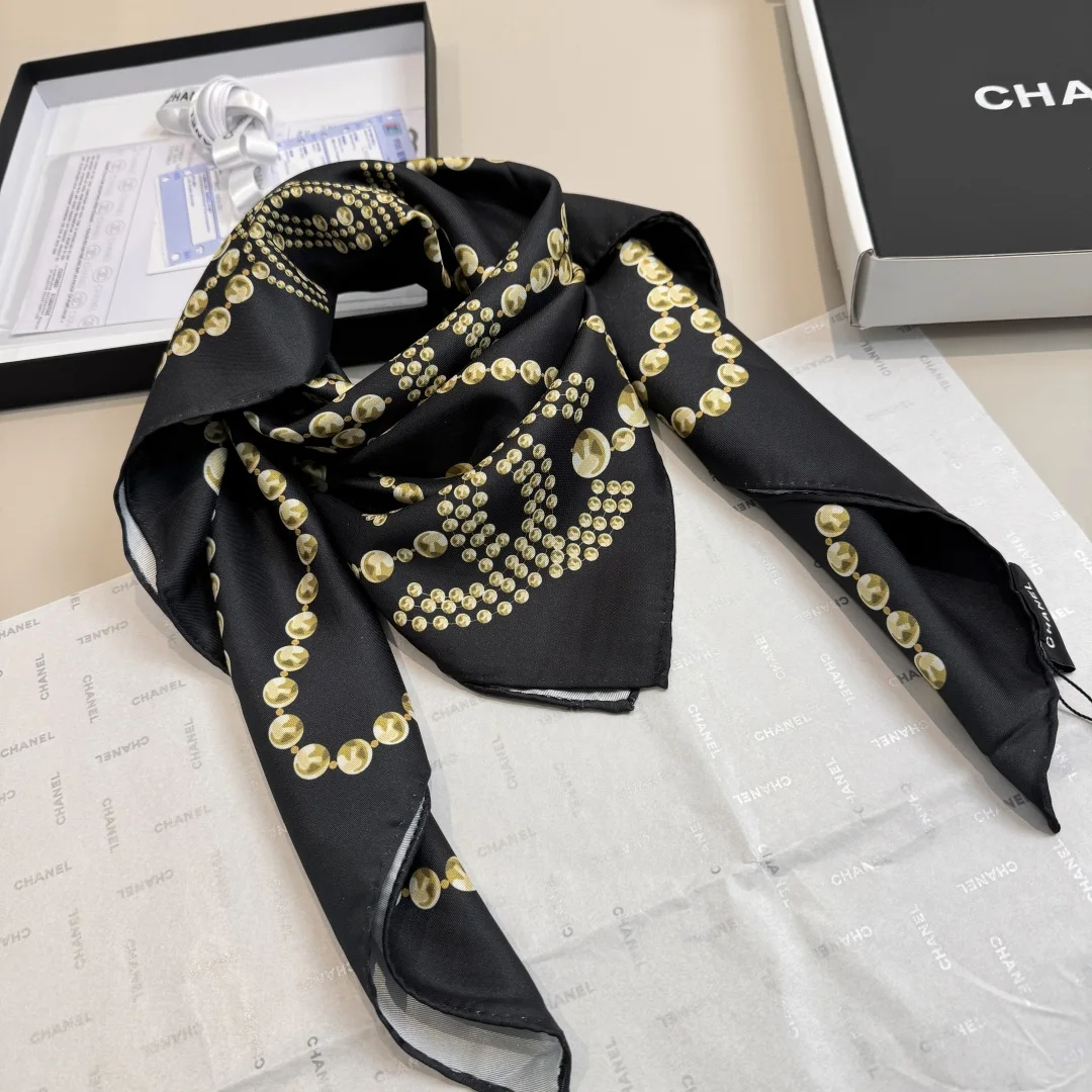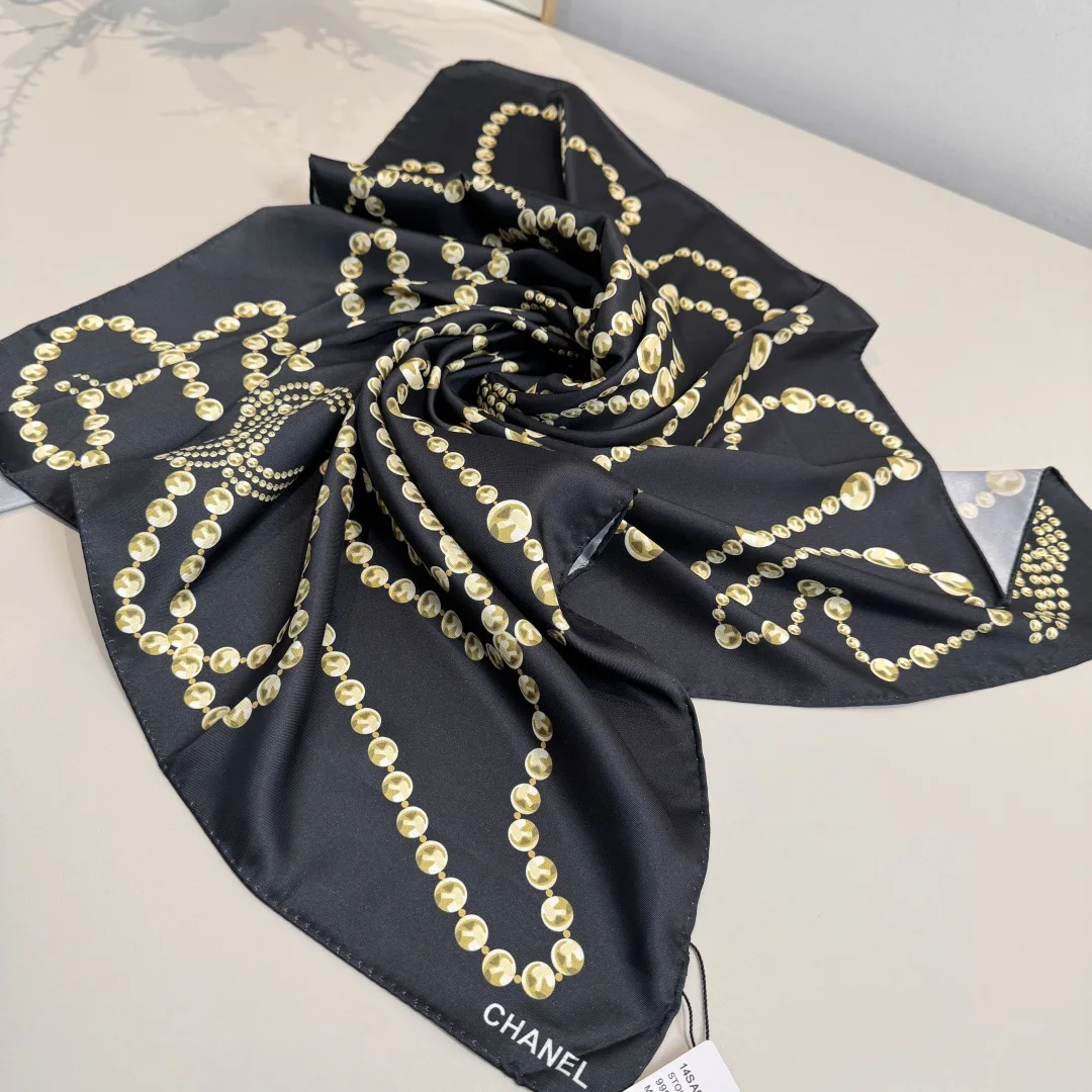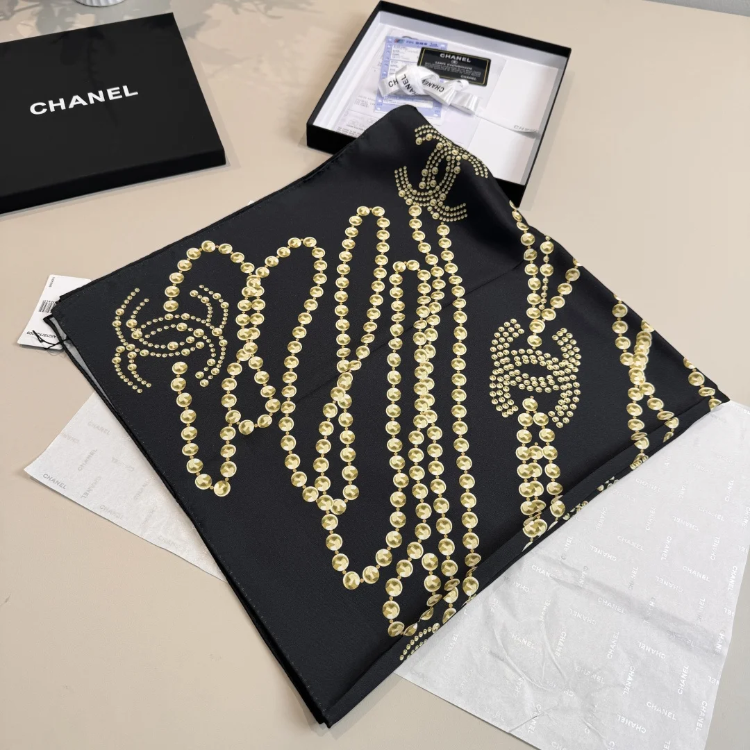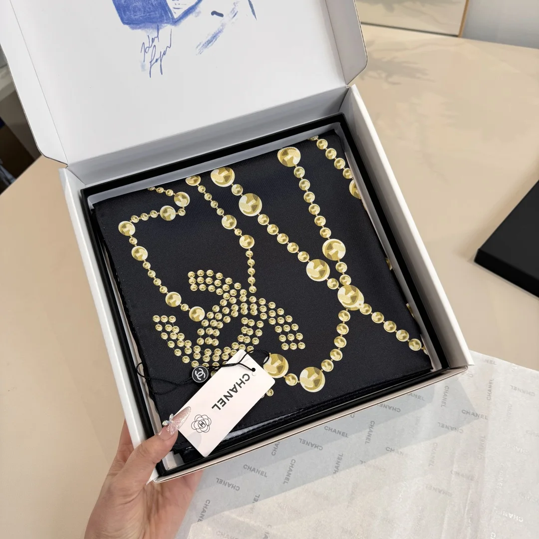 新款小香 香奈儿珍珠项链方巾 美翻了御用殿堂级极品 经典元素图案设计风格 美丽至极 真的 上身极为衬肤色 百搭 好看不好看自己看吧
