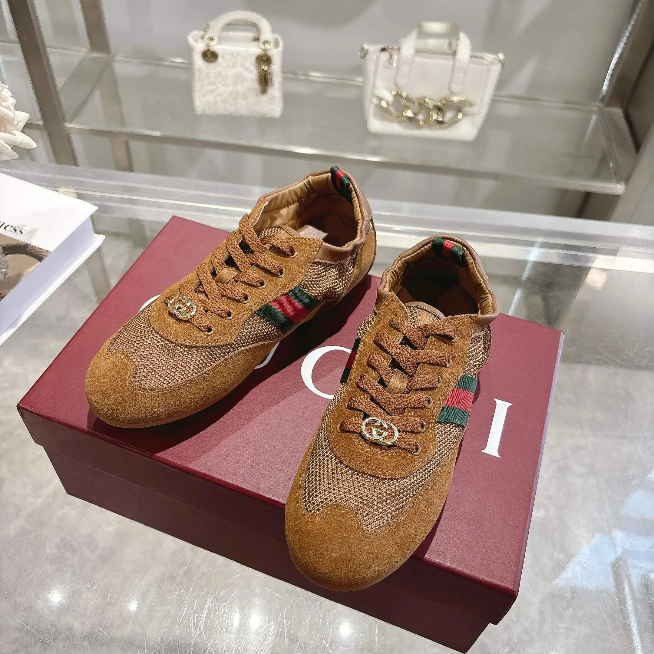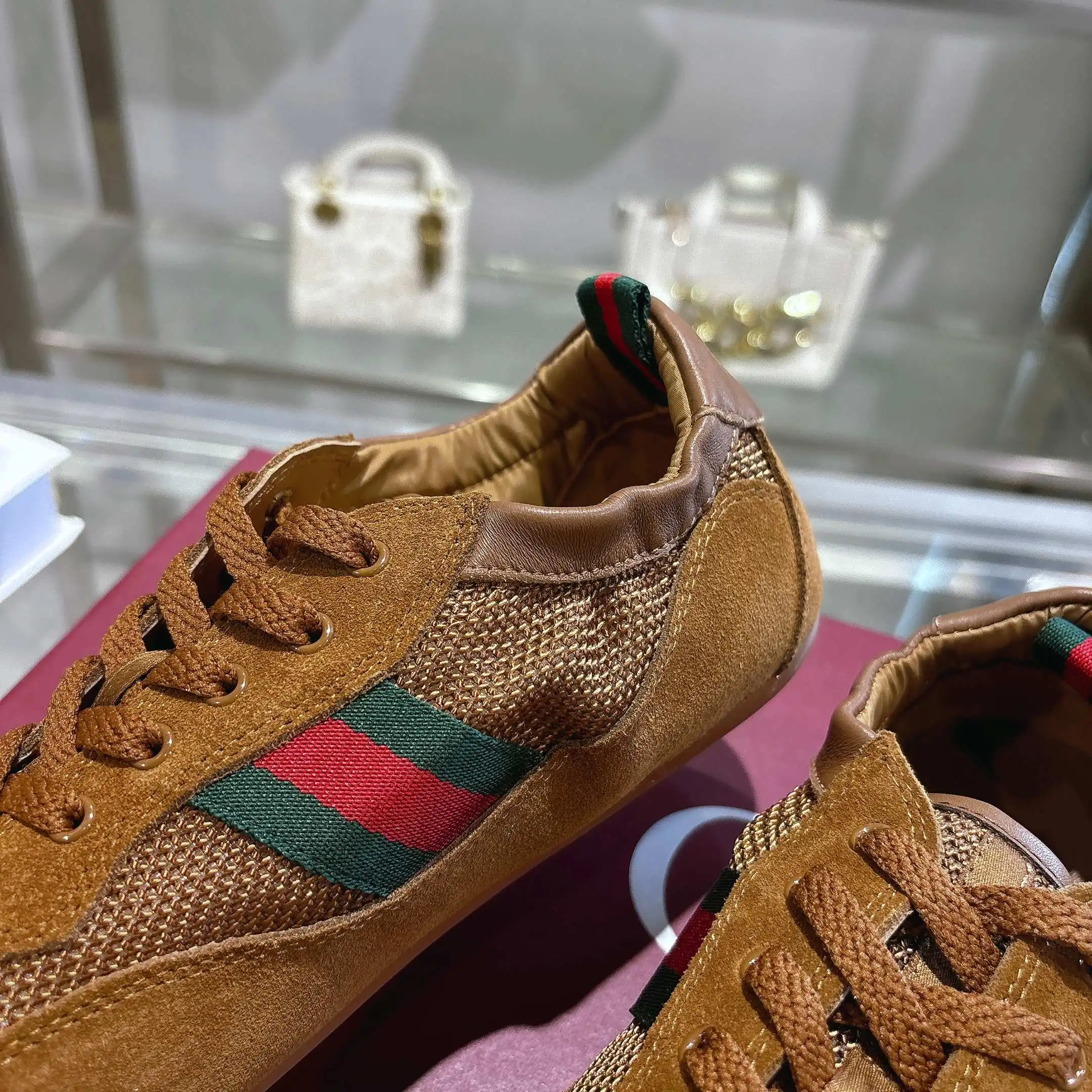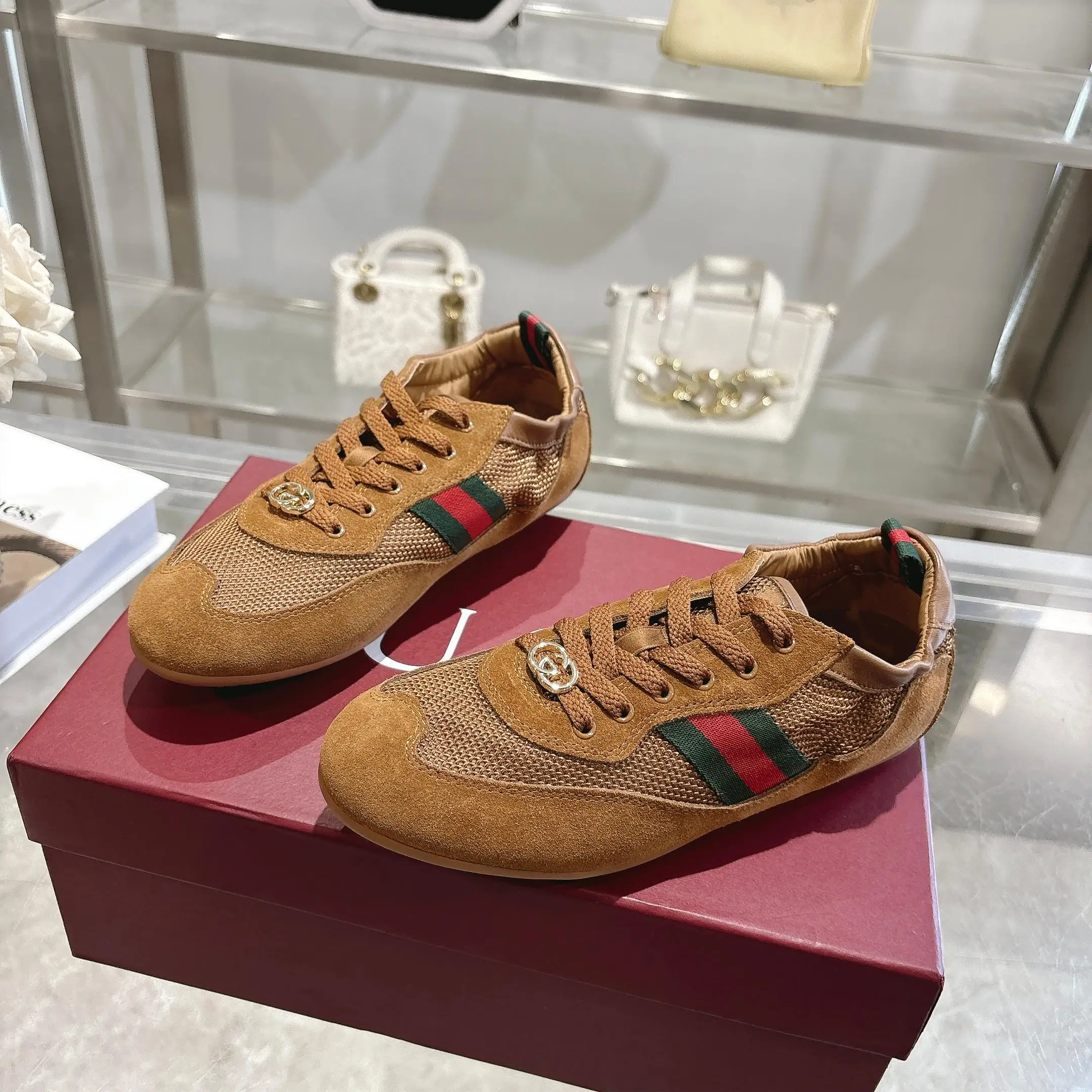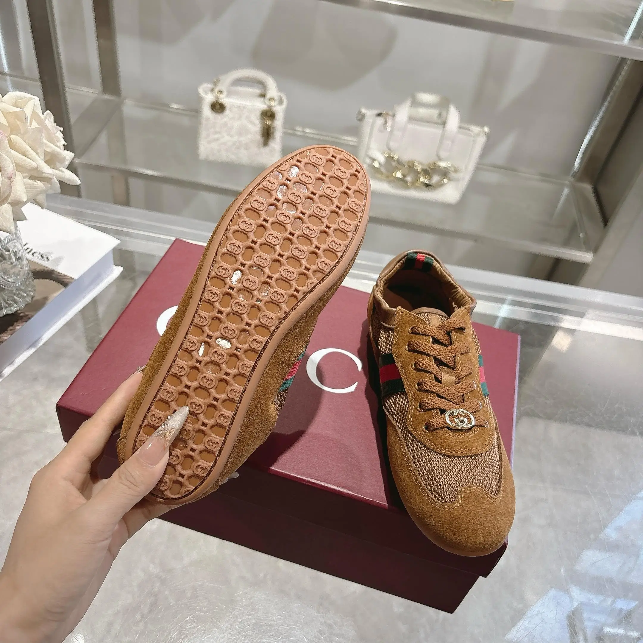 GG橡筋鞋超级轻盈柔软到可以卷起来的一双跳舞鞋棕色牛反绒面+GG布 精心缀饰GG五金扣 轻盈质感与闪耀外观兼具 鞋口羊皮包缝橡筋工艺 张驰有度 驰骋随心所欲 羊皮+乳胶垫脚 TPU鞋底 35-40码 棕色