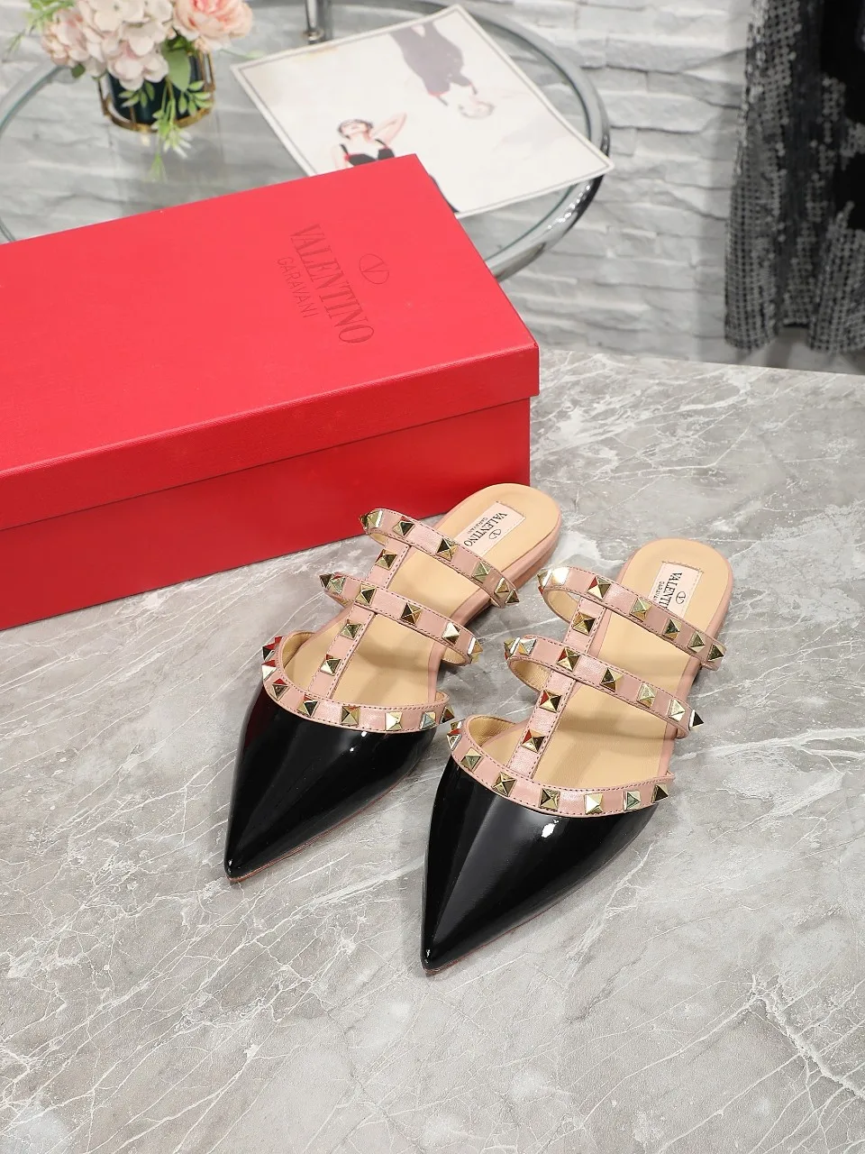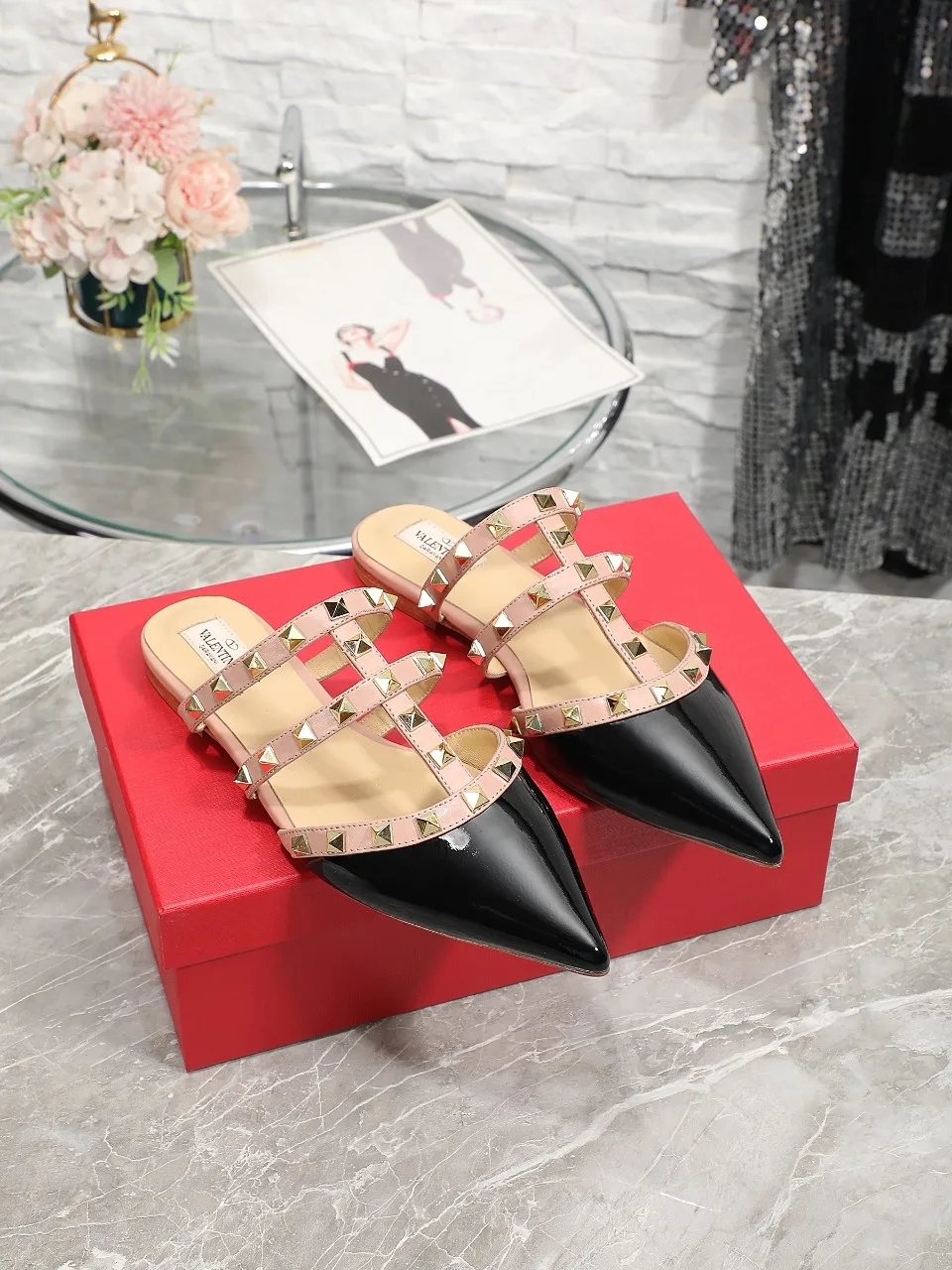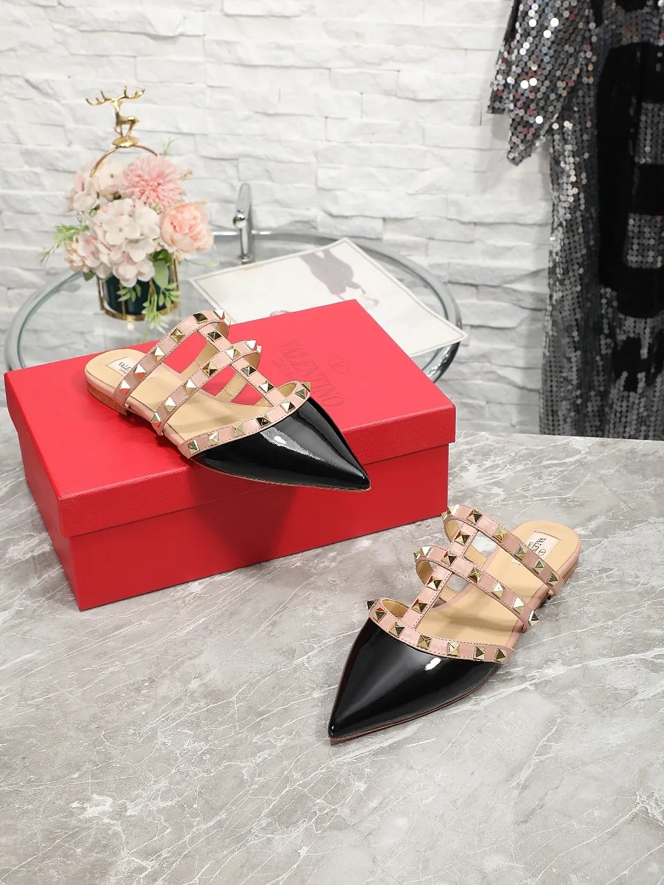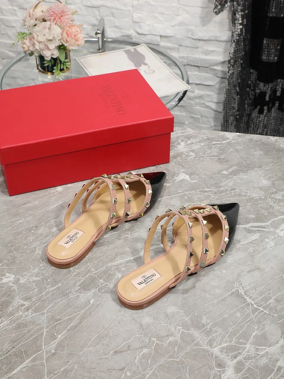 VALENTINO华伦天奴经典凉拖鞋 设计简约大气 脚感舒适 上脚超美 鞋面头层牛漆皮 内里羊皮 35-40码 41-42码可以订做
