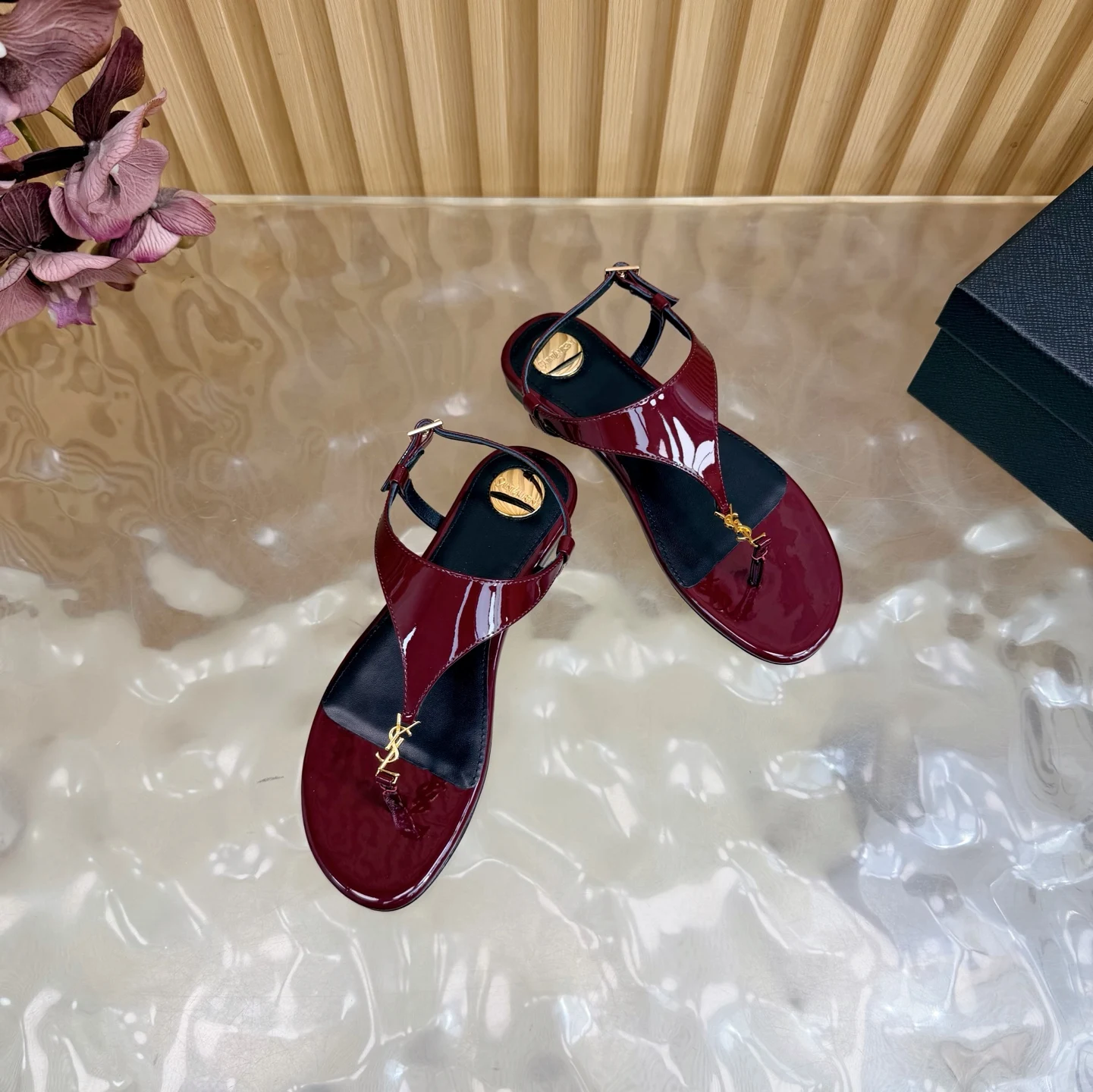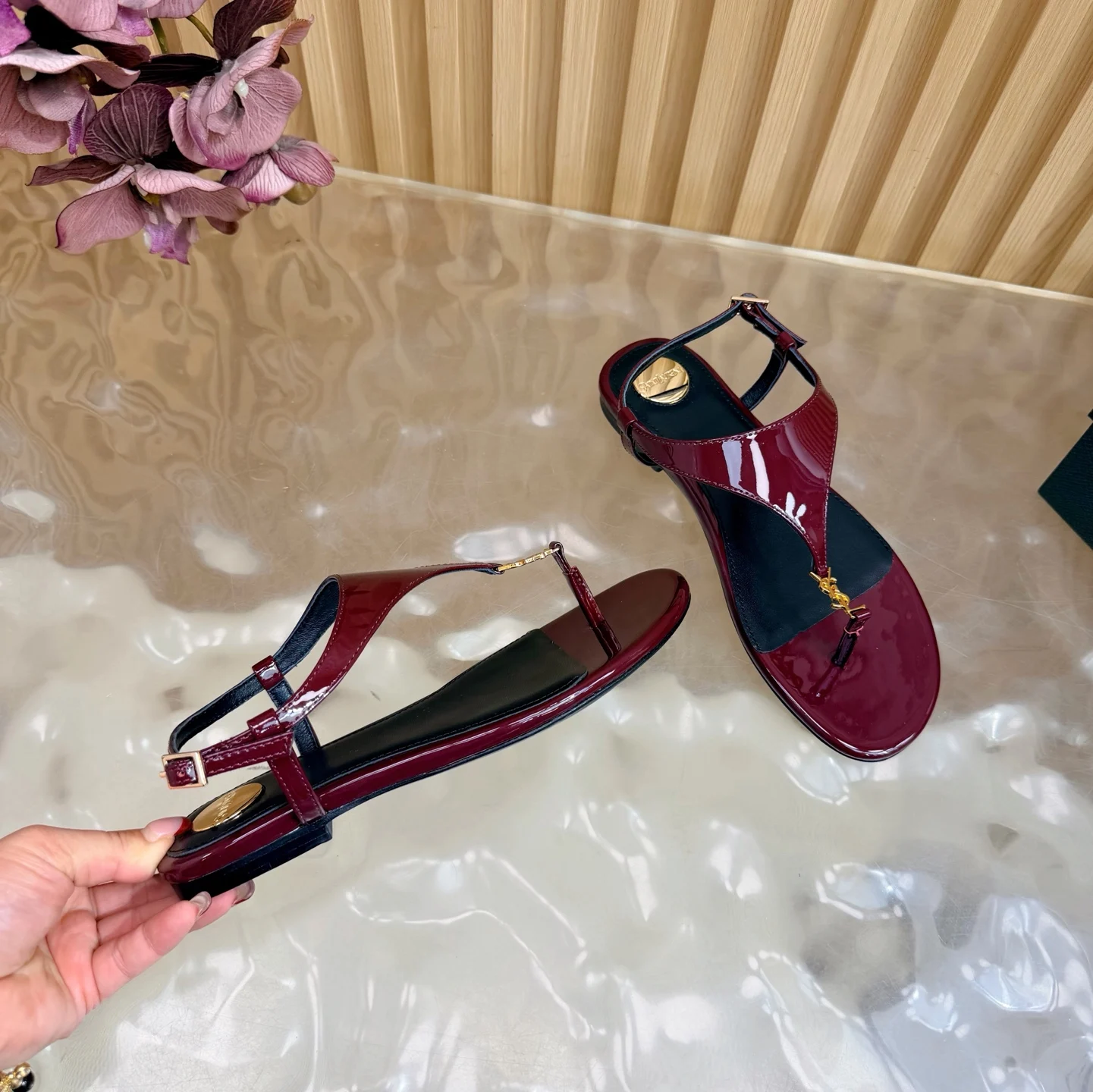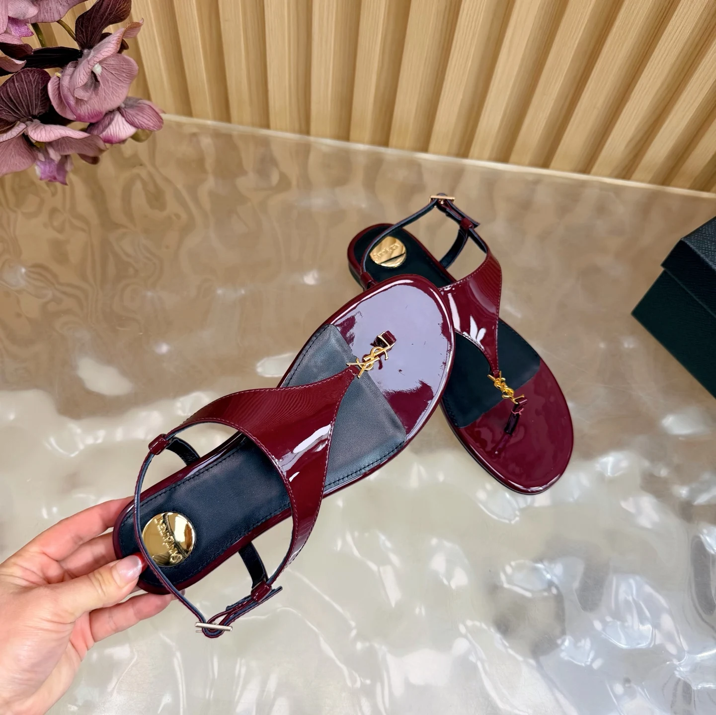 Saint Laurent圣罗兰家YSL经典秀款夹脚凉鞋 大小质感与原版完全一致 鞋面材质 采用牛皮/漆皮