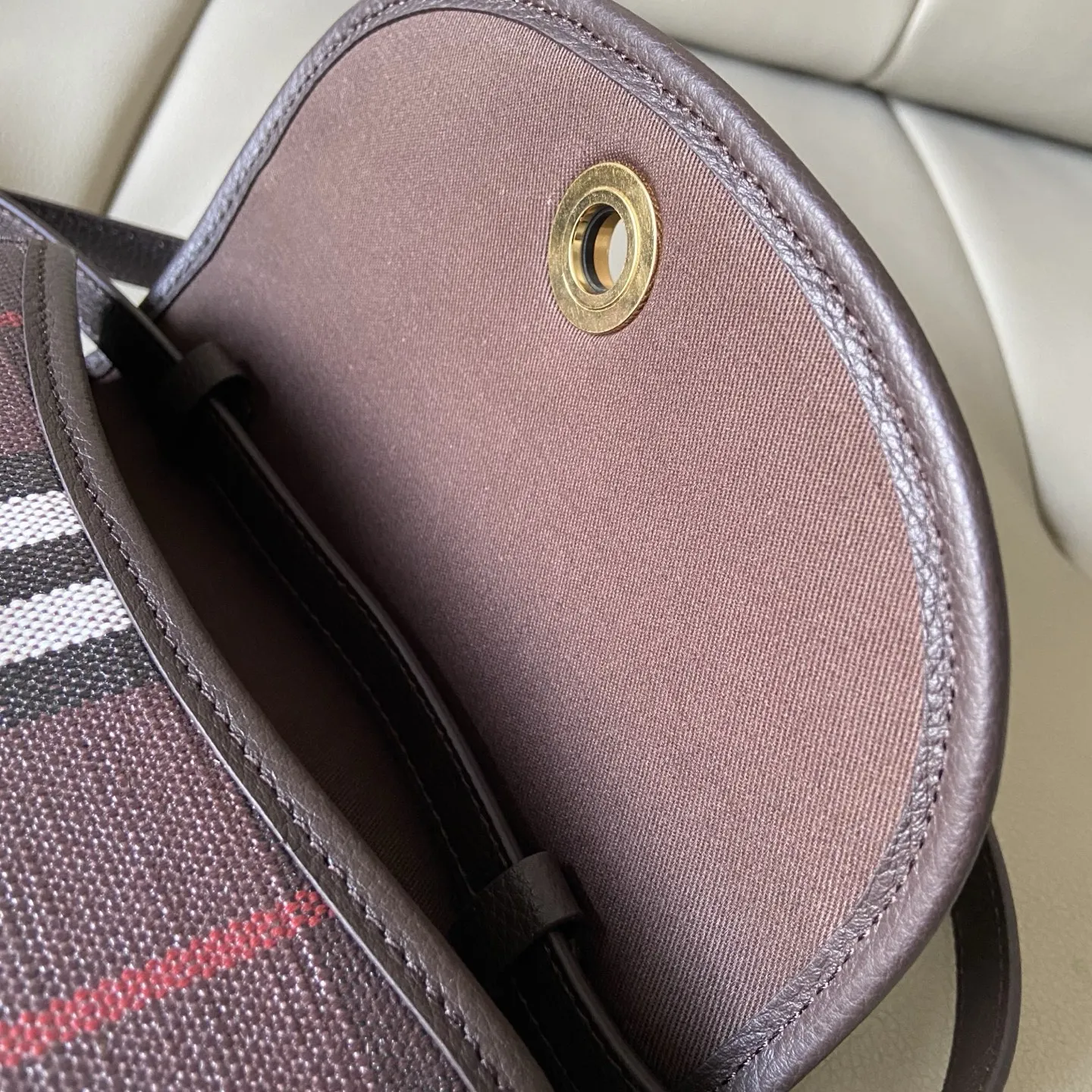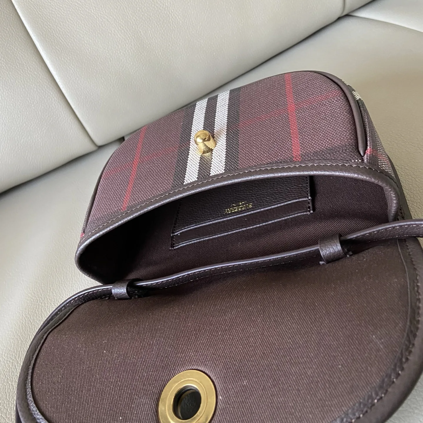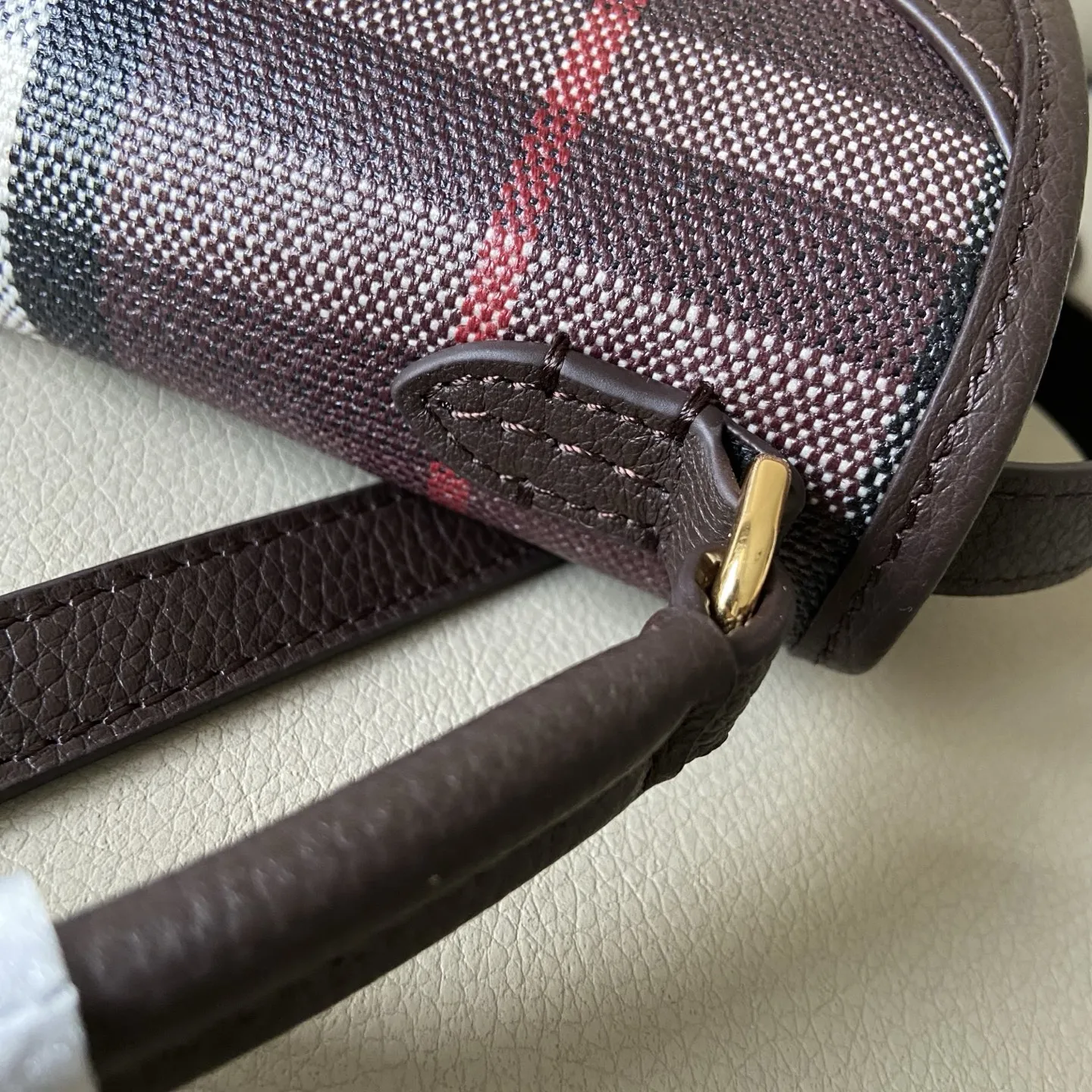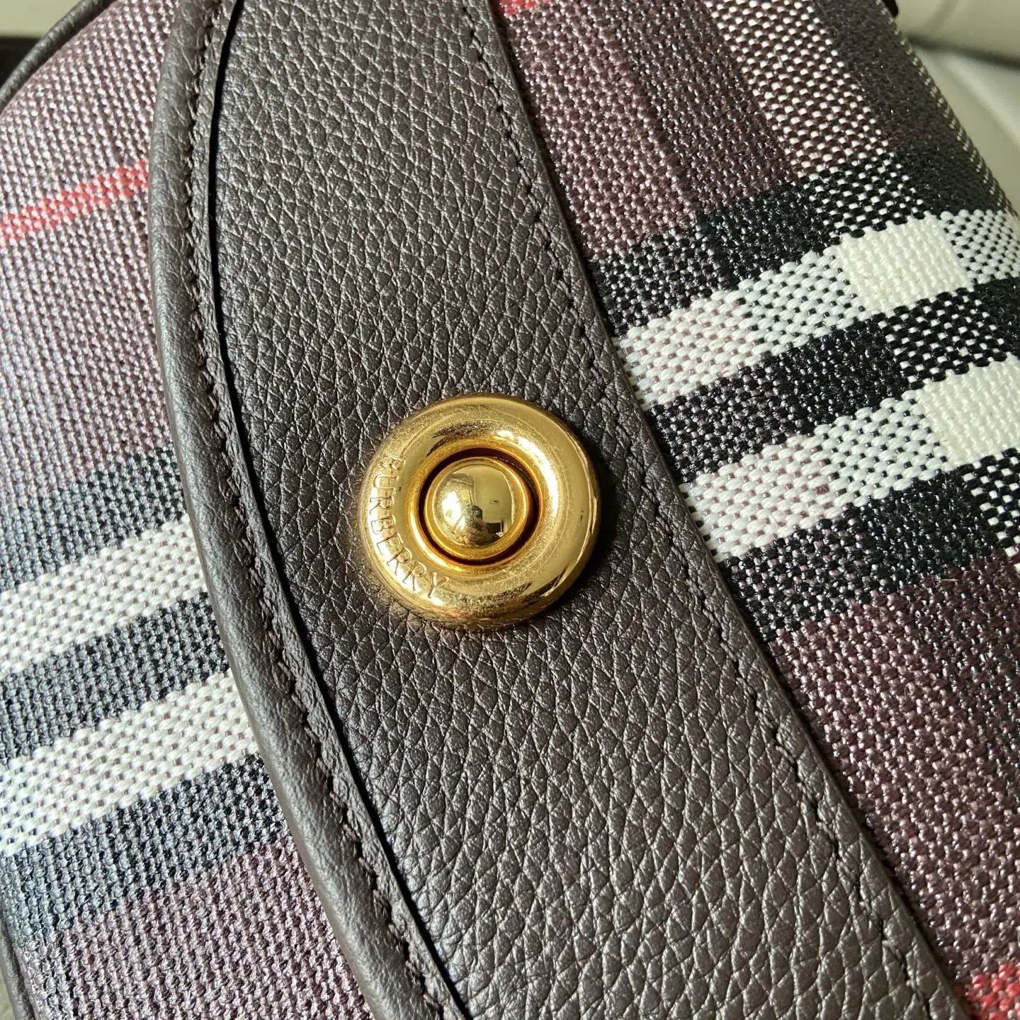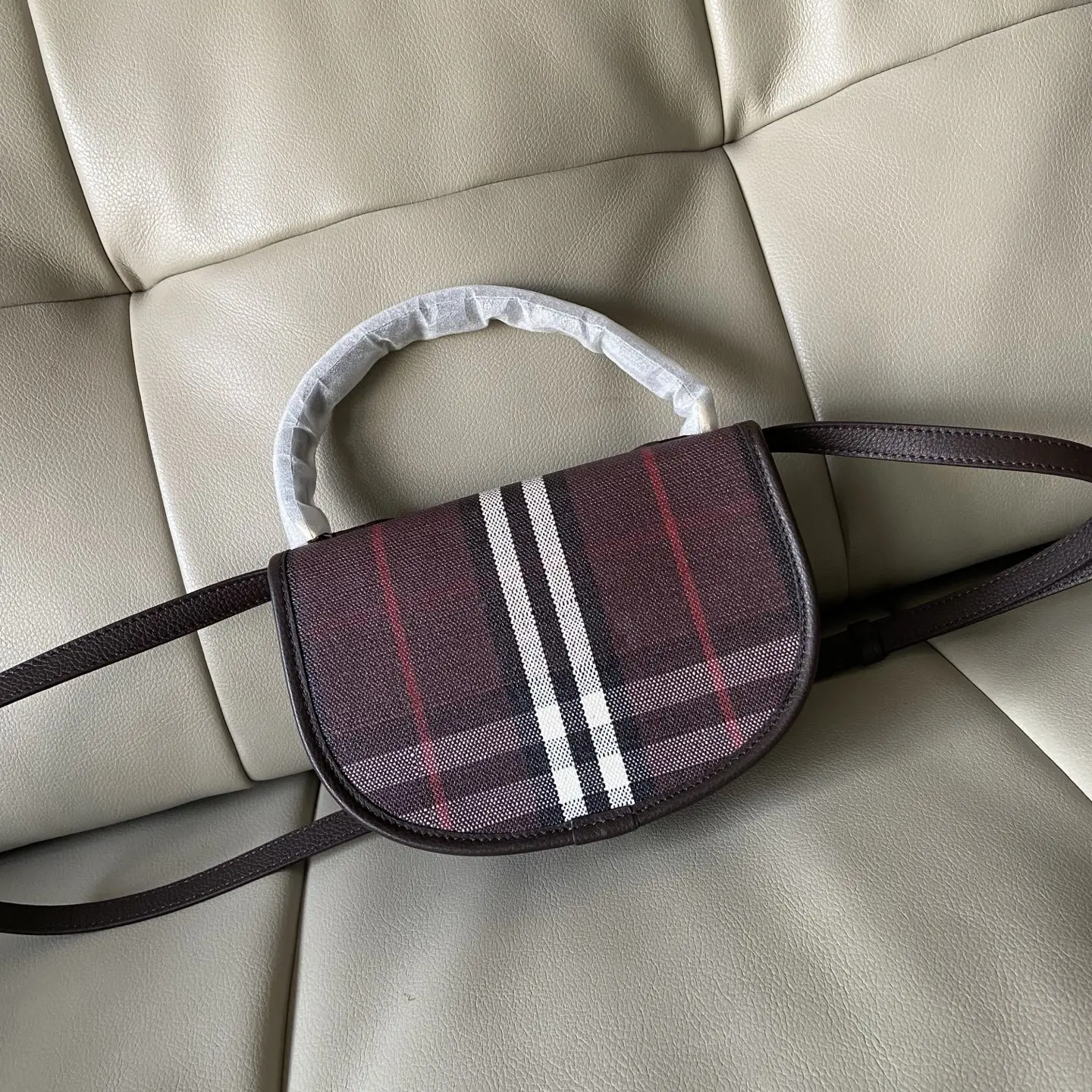 原厂 迷你 Highlands 精巧包款 汲取户外设计理念打造 选用棉质亚麻混纺面料 于意大利工坊精制而成 融入光滑小牛皮装饰和棉质内衬 装饰提花精纺的 Burberry 格纹 设有风衣灵感涂层饰面 可使用顶部提柄手提 亦可以肩背带缔造肩背或斜背造型 – 顶部皮革提柄– 可调式皮革肩背带– 磁力推扣开合– 2个卡位– 内插袋– 手绘涂漆边缘– 拉丝金属配件– 开合处镌Burberry 字母徽标– 棉质内衬 尺寸 19 x 5 x 11cm