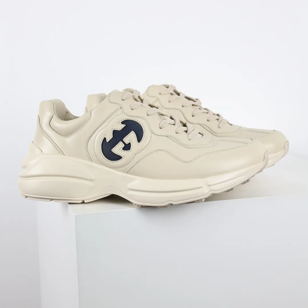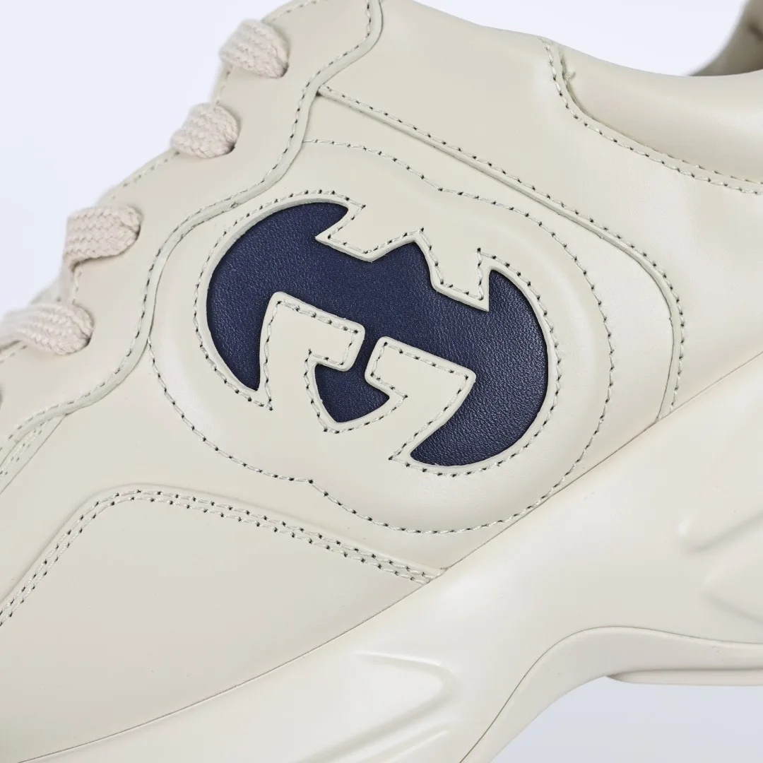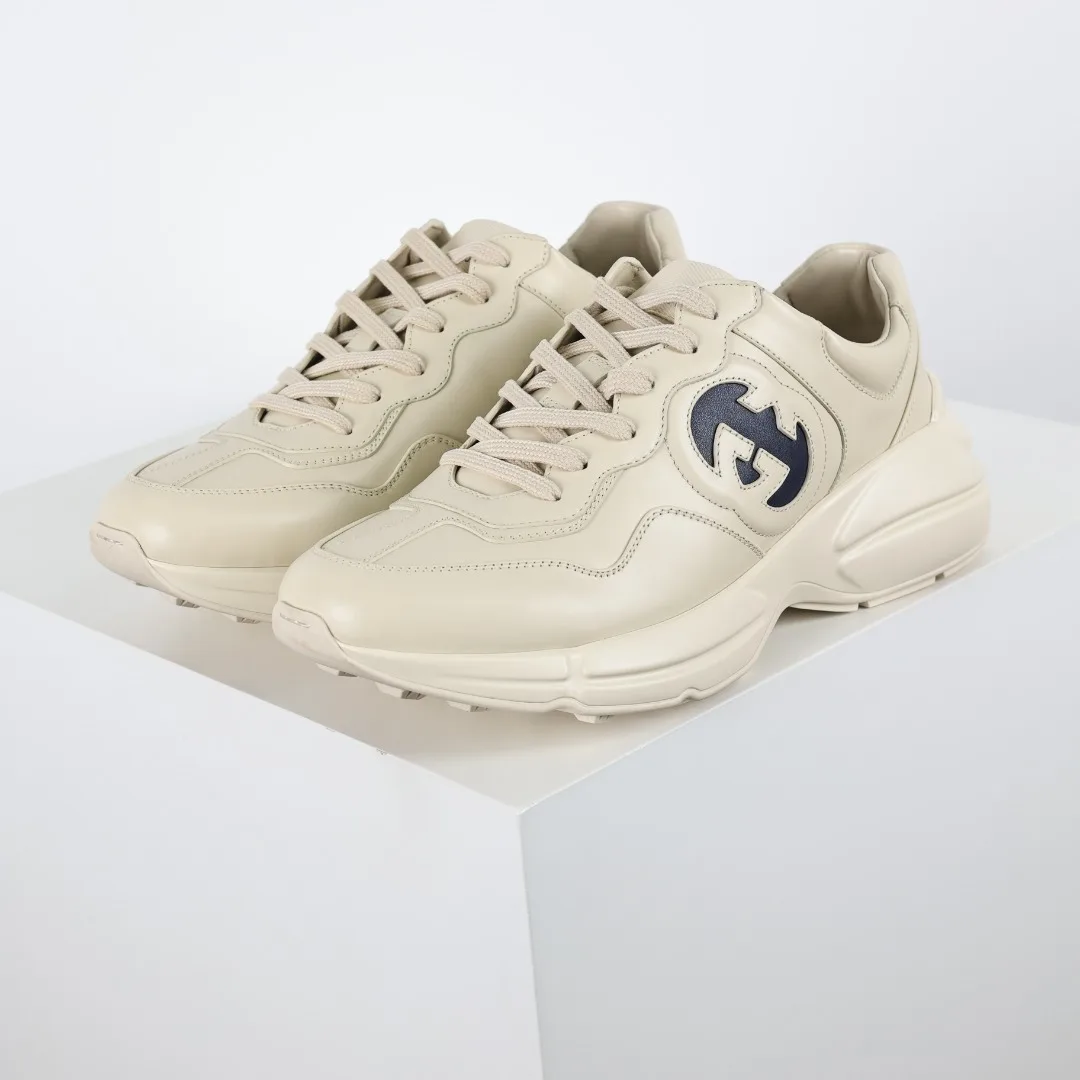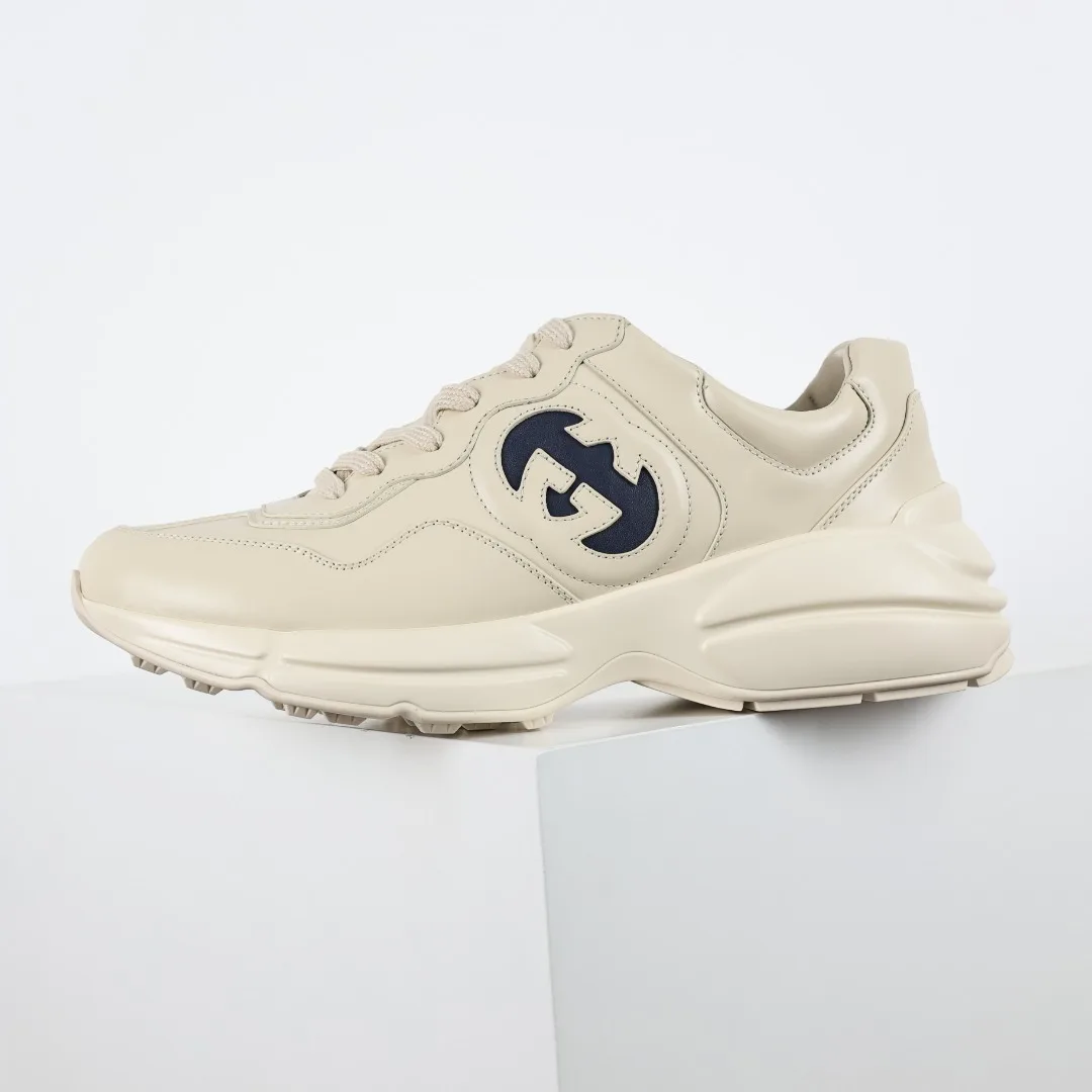 纯原 Gucci 古驰 Rhyton 复古老爹鞋 官方绿盒 蝙蝠白色 高回弹MD中底加耐磨TPR耐磨外底 耐磨缓震