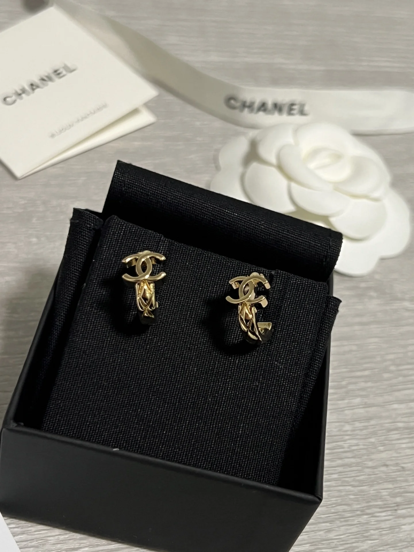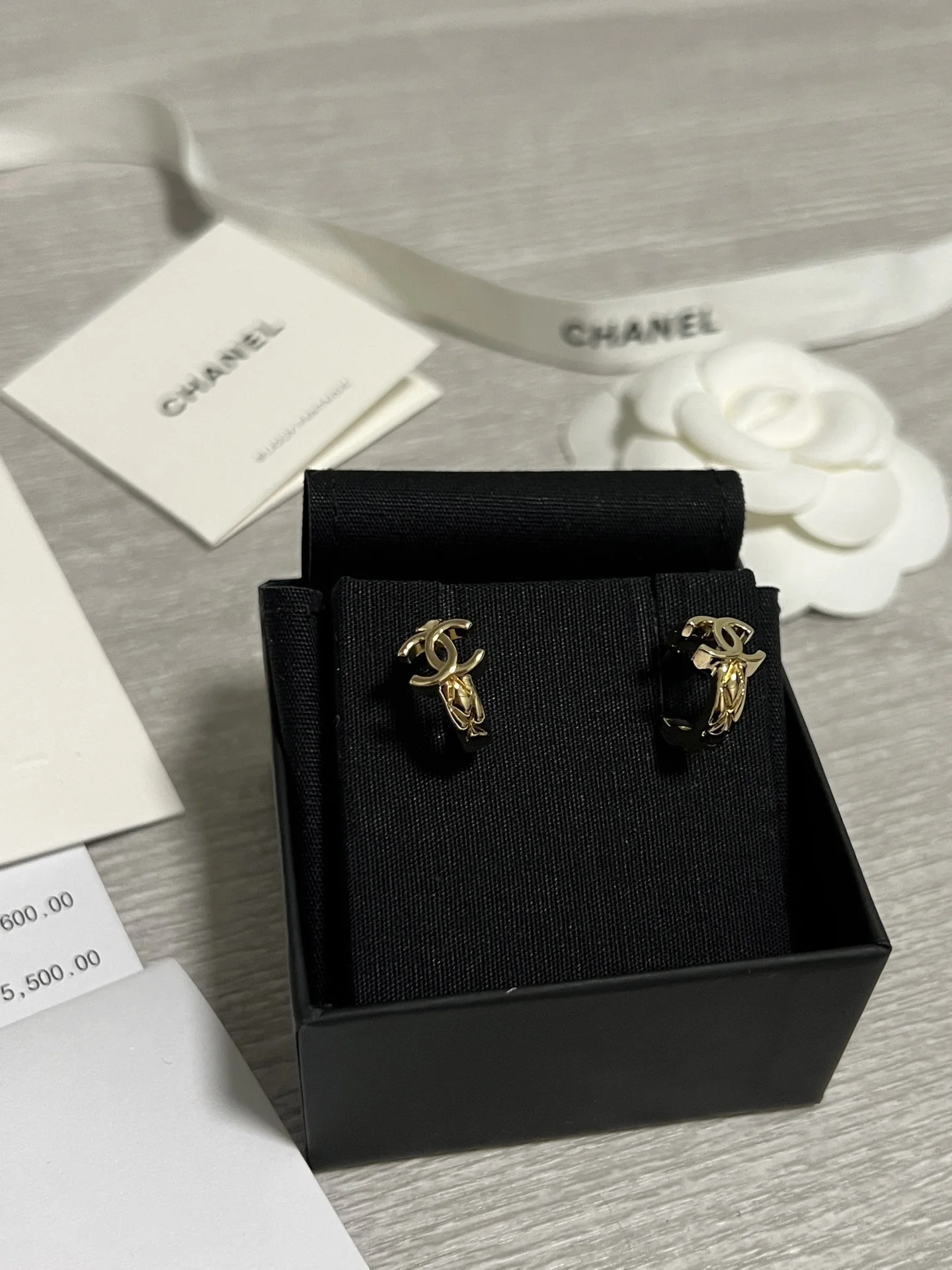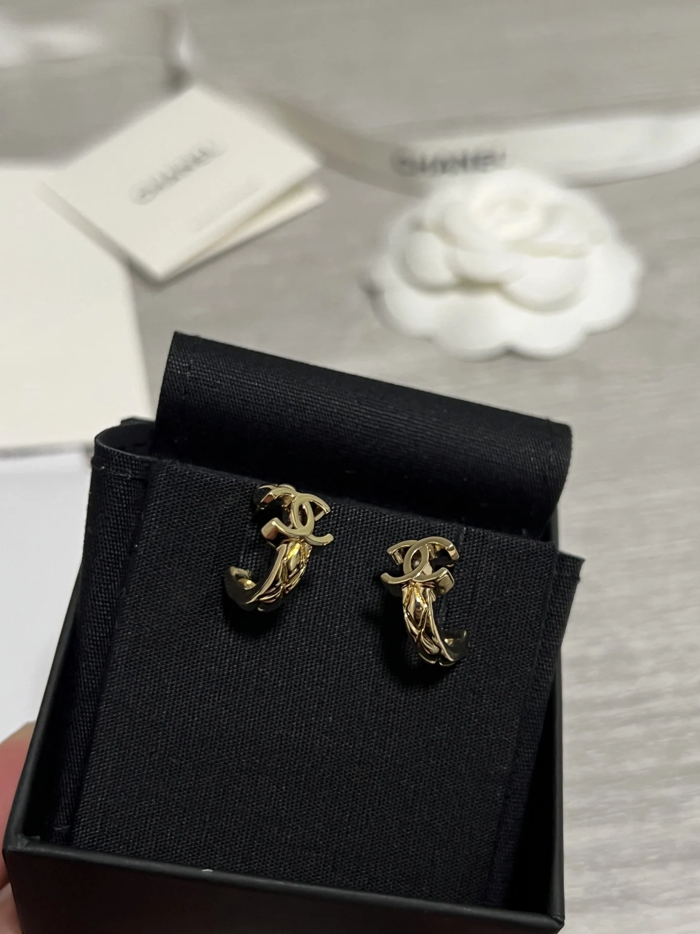 香家26p新款 菱格纹双c金色小耳环耳圈
