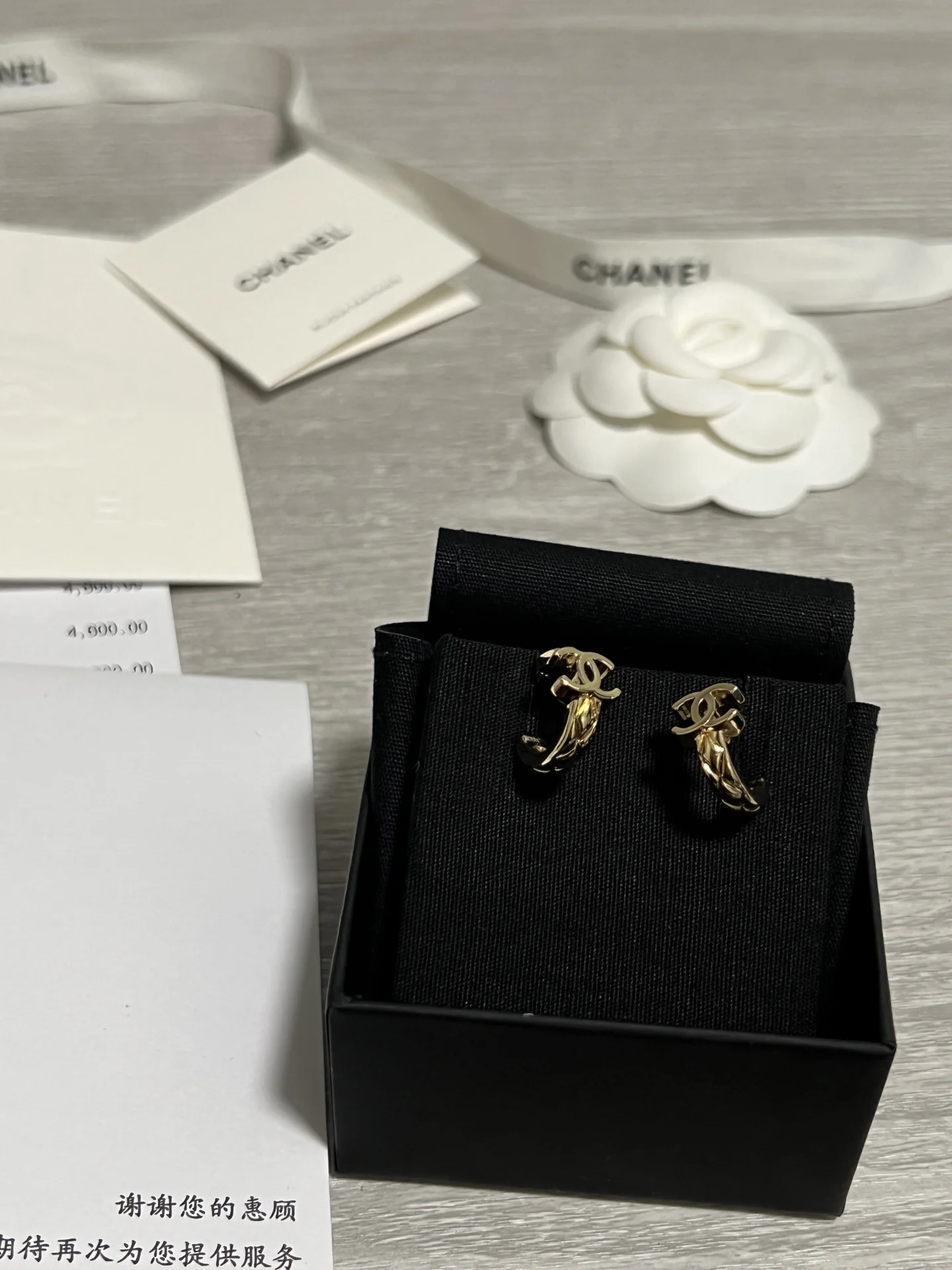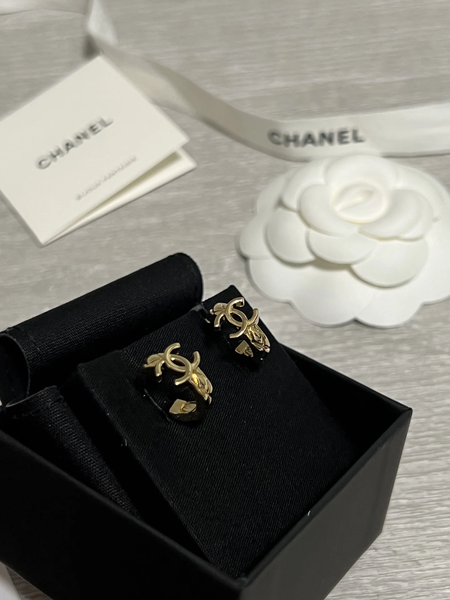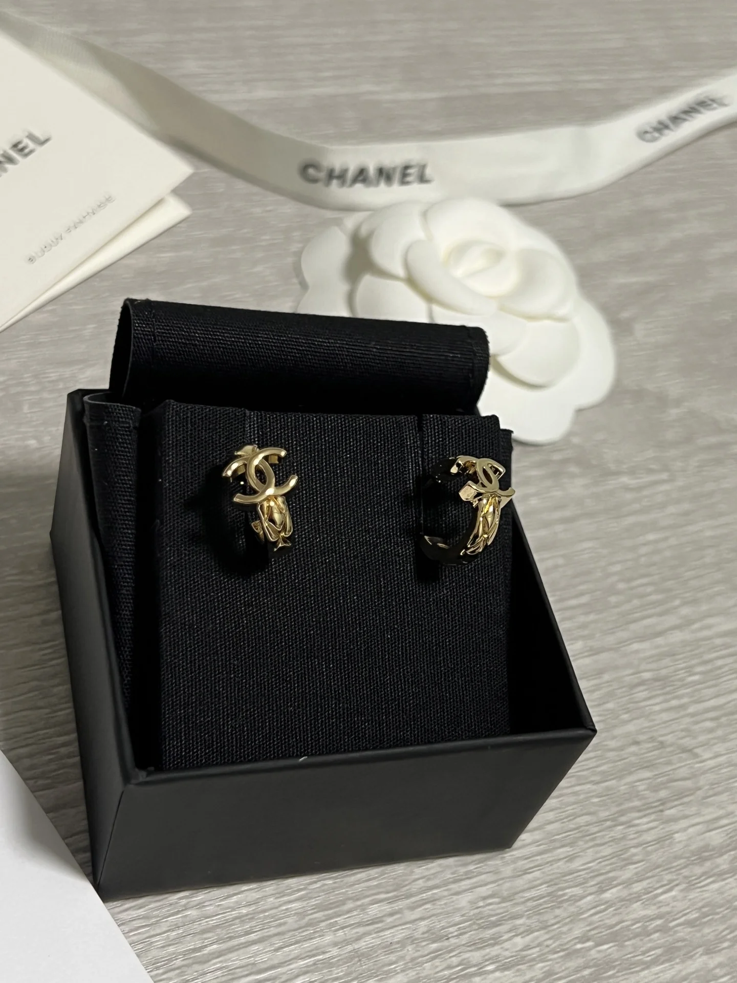 香家26p新款 菱格纹双c金色小耳环耳圈