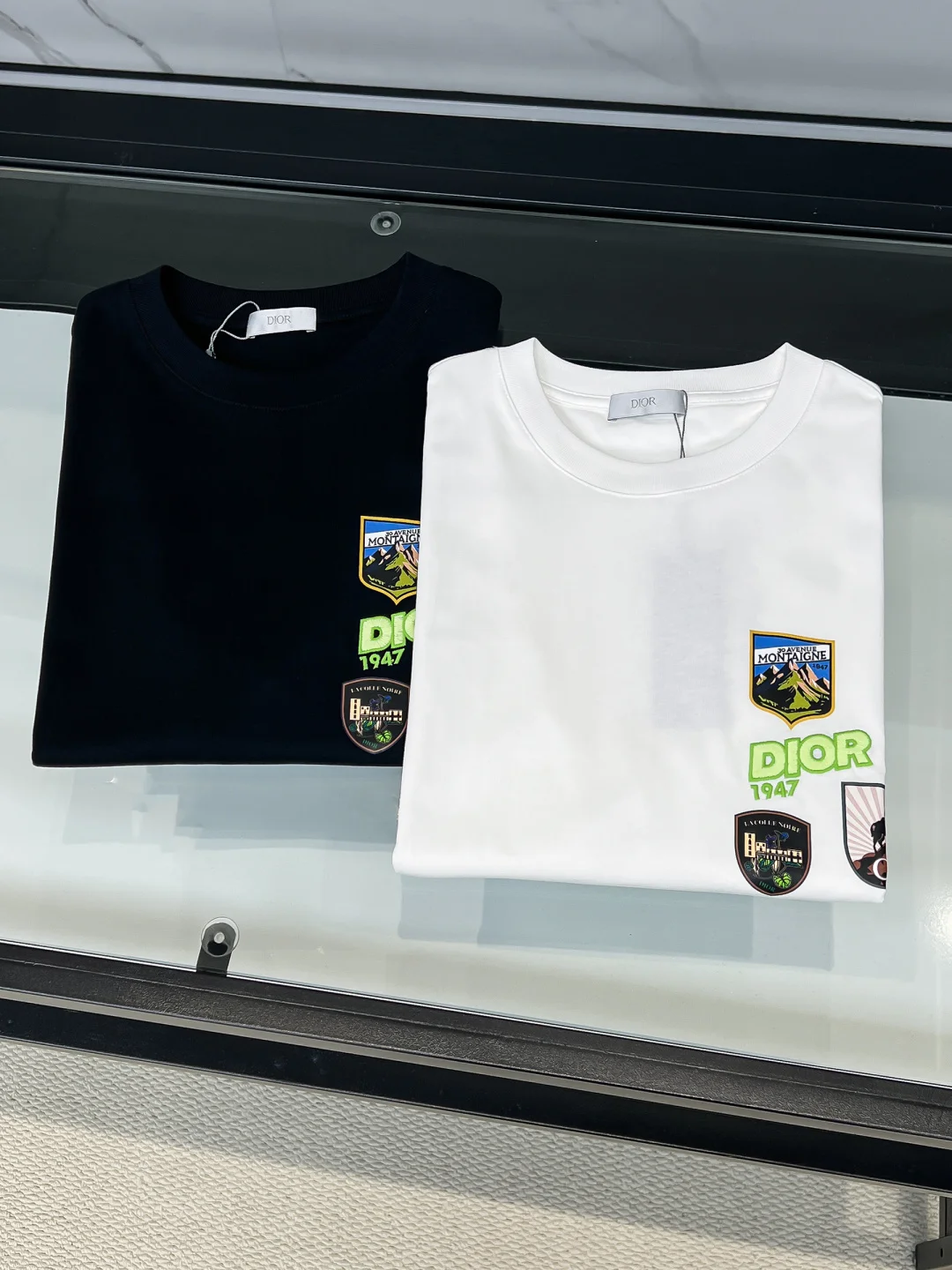 2026SS 新品Di 双层工艺印花刺绣 迸发街头风格与奢华时尚的创意火花 圆领印花刺绣标识棉质短袖T恤 素性的Logo徽章凸显运动时尚魅力,依然独领时尚风骚! 男女同款 颜色 黑白 码数 S-2XL 高版本背后有龟背