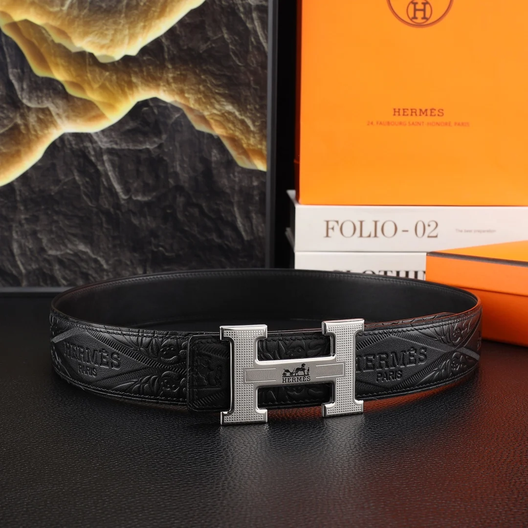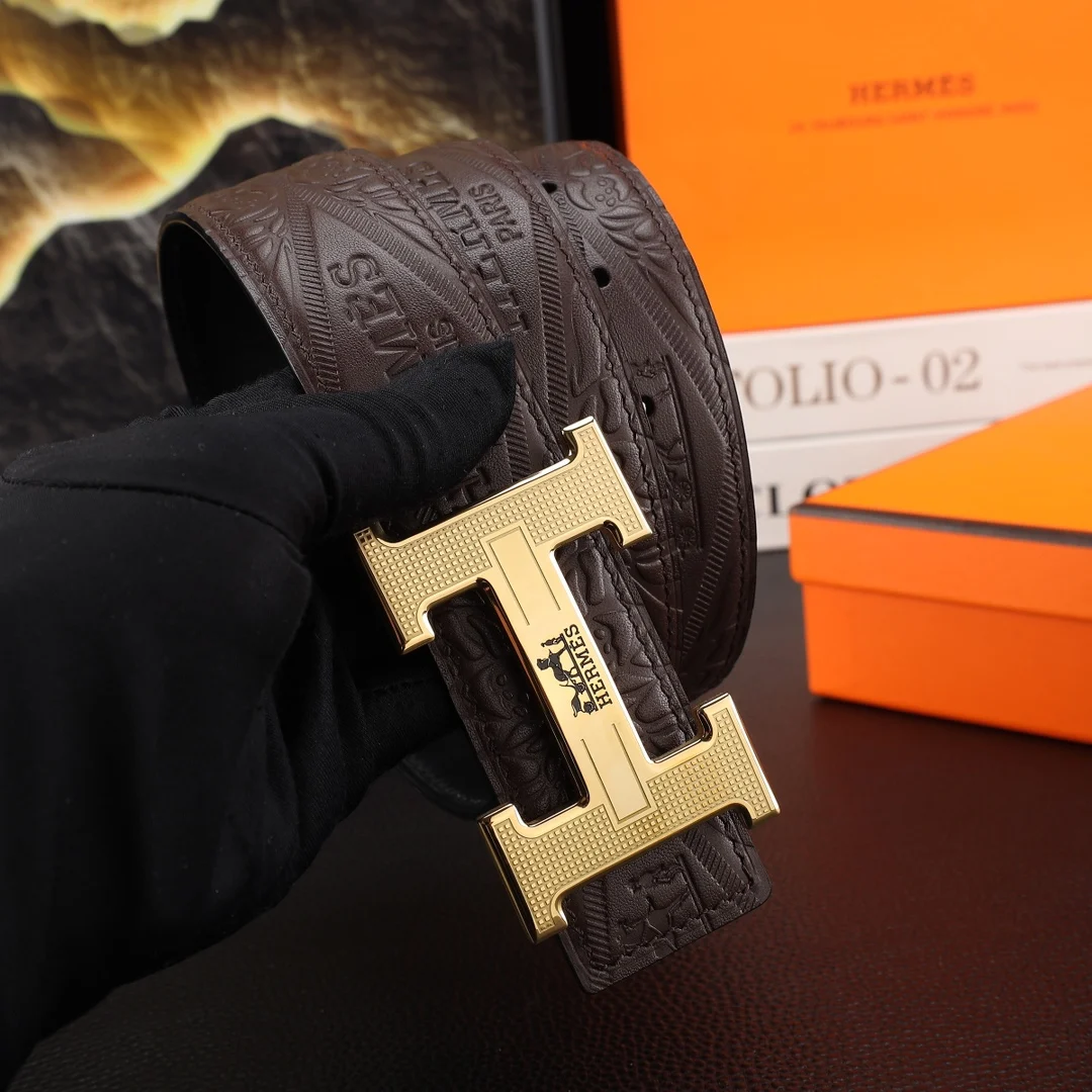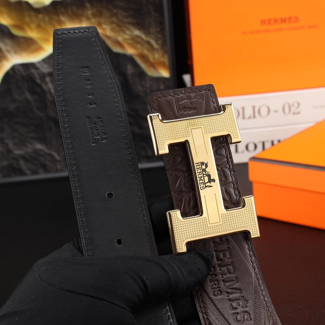 全套包装 男士真皮腰带 宽度3.8cm 原版带身 配搭精品钢扣 可双面使用 触感厚实