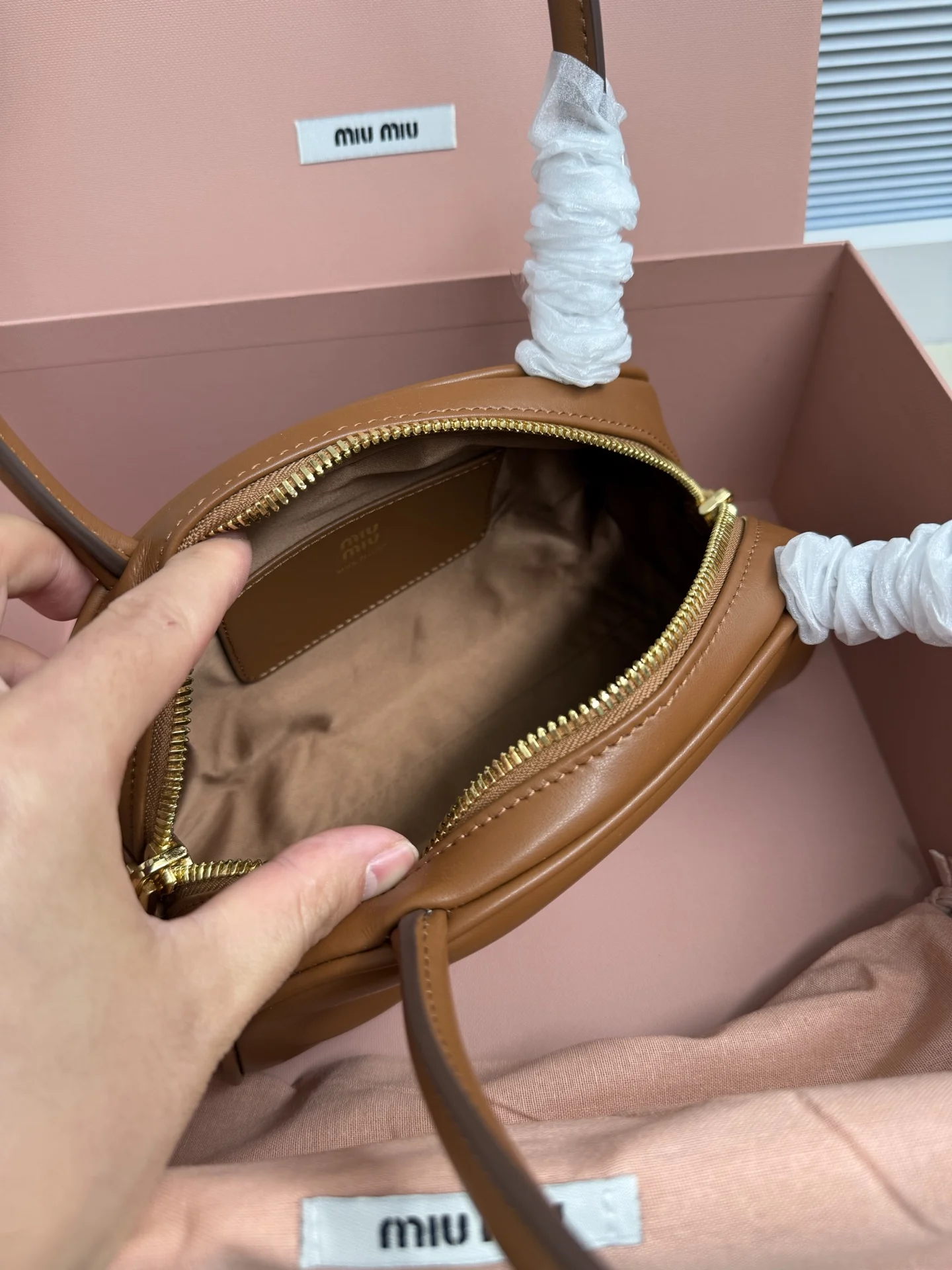 Miu家秀款饺子包 官网主推 今年绝对爆款式 采用进口小牛皮 时尚半圆设计 包身精致立体有型 风格百变 适配度很高 日常出行怎么搭都好看 正面标志性金属logo标 可拆卸可调节皮革长肩带 棉质缎面衬里拉链袋和贴袋 众多明星网红同款 小号5BB192 尺寸10x23x11,5cm