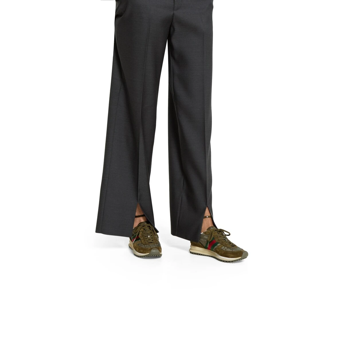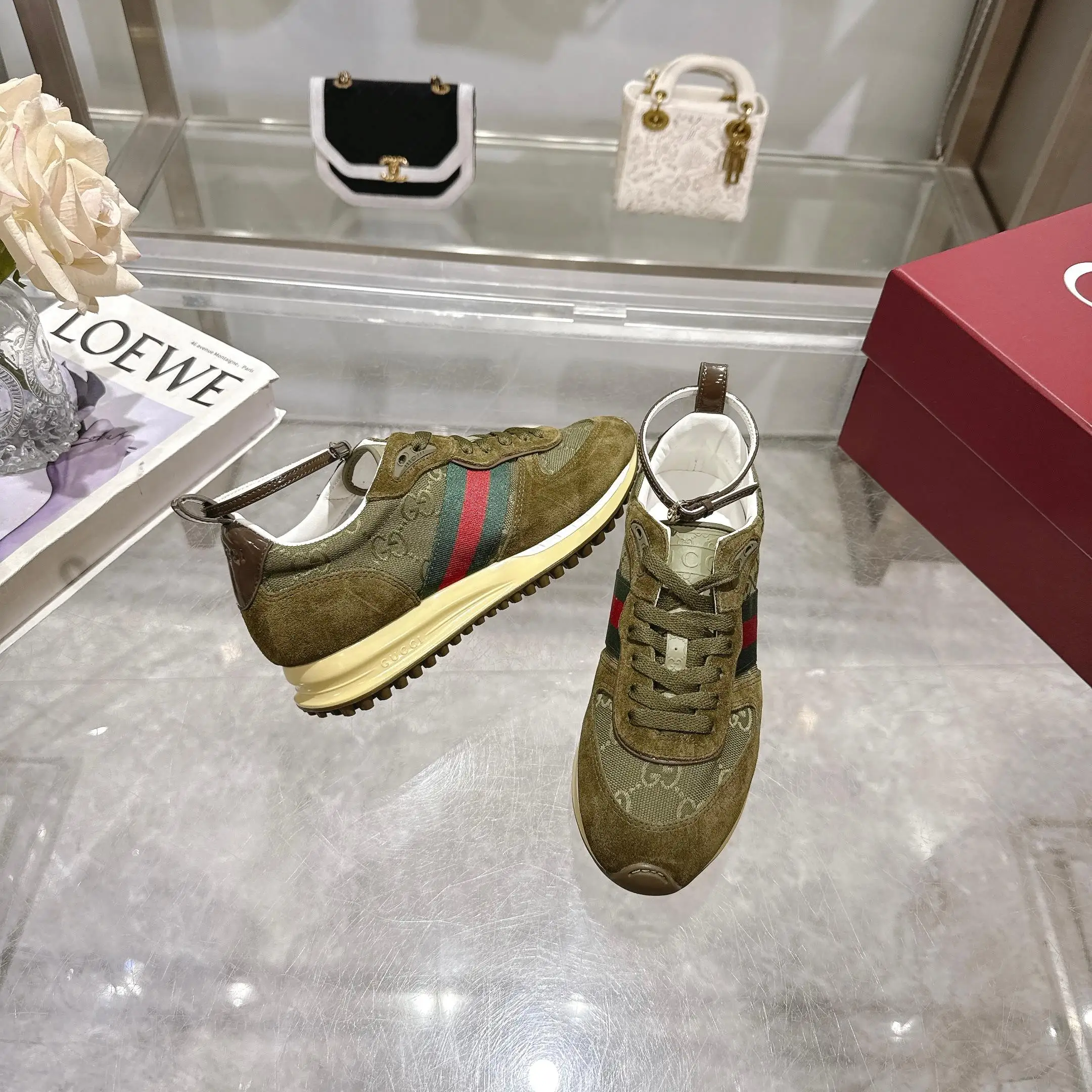 2025动感单品轻盈且灵活的外底经过特殊处理洋溢着浓郁的复古风情可拆卸可调节踝部绑带 鞋舌饰以高频压花工艺打造的3D立体Gucci字样标识织物衬里舒适透气超轻抽真空发泡鞋底 非常轻便35-40码 深绿色 可以做41码
