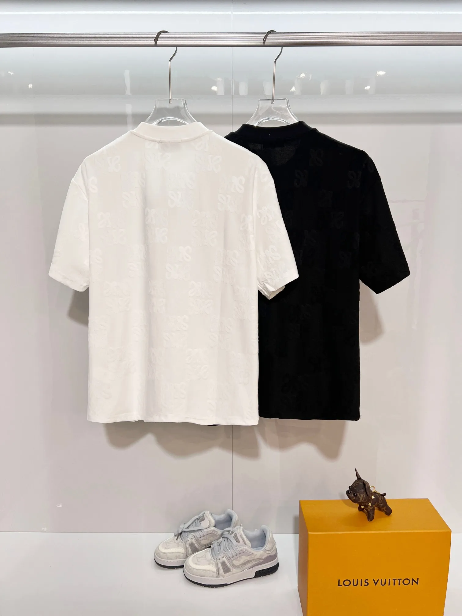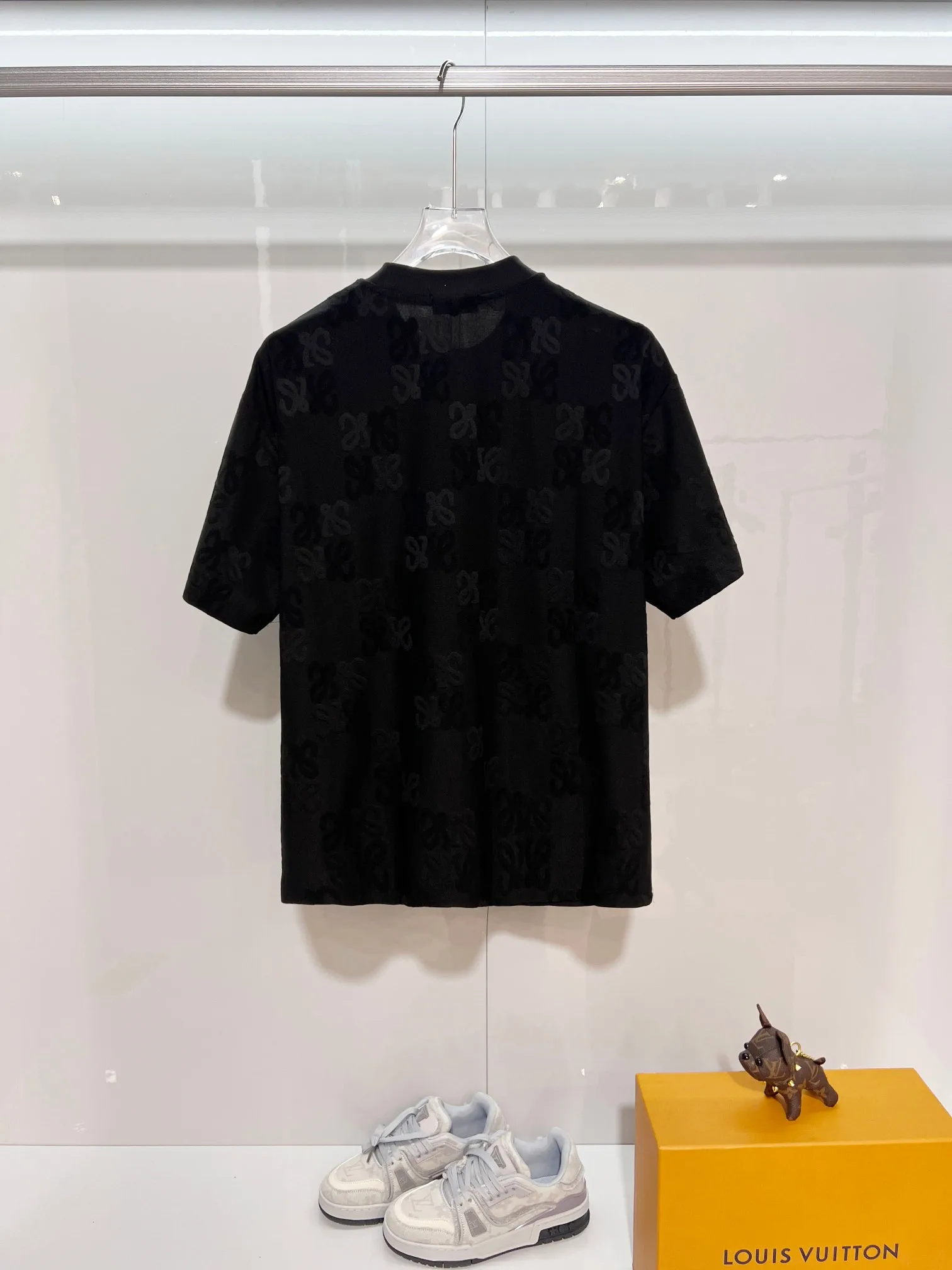 罗意威印暗纹老花贴布圆领短袖T恤