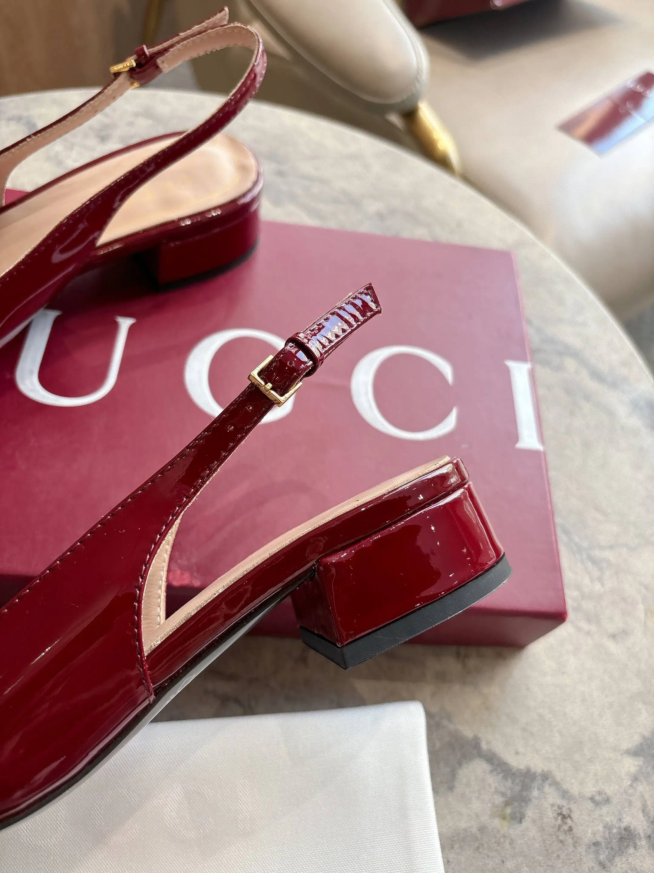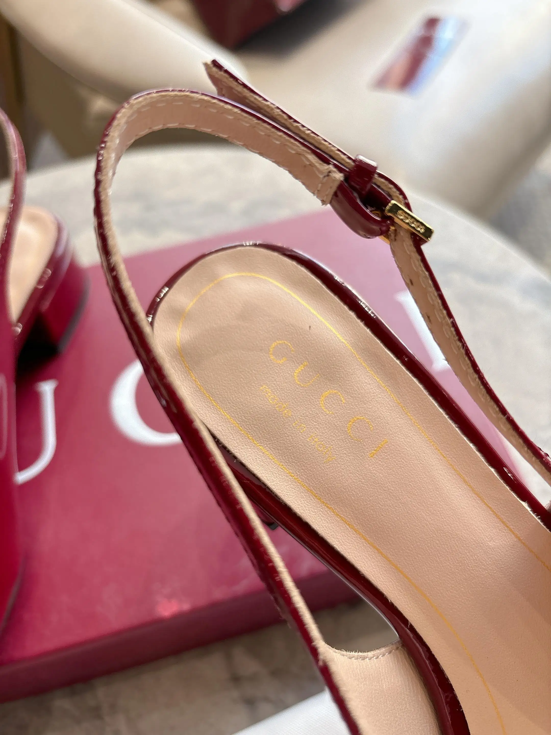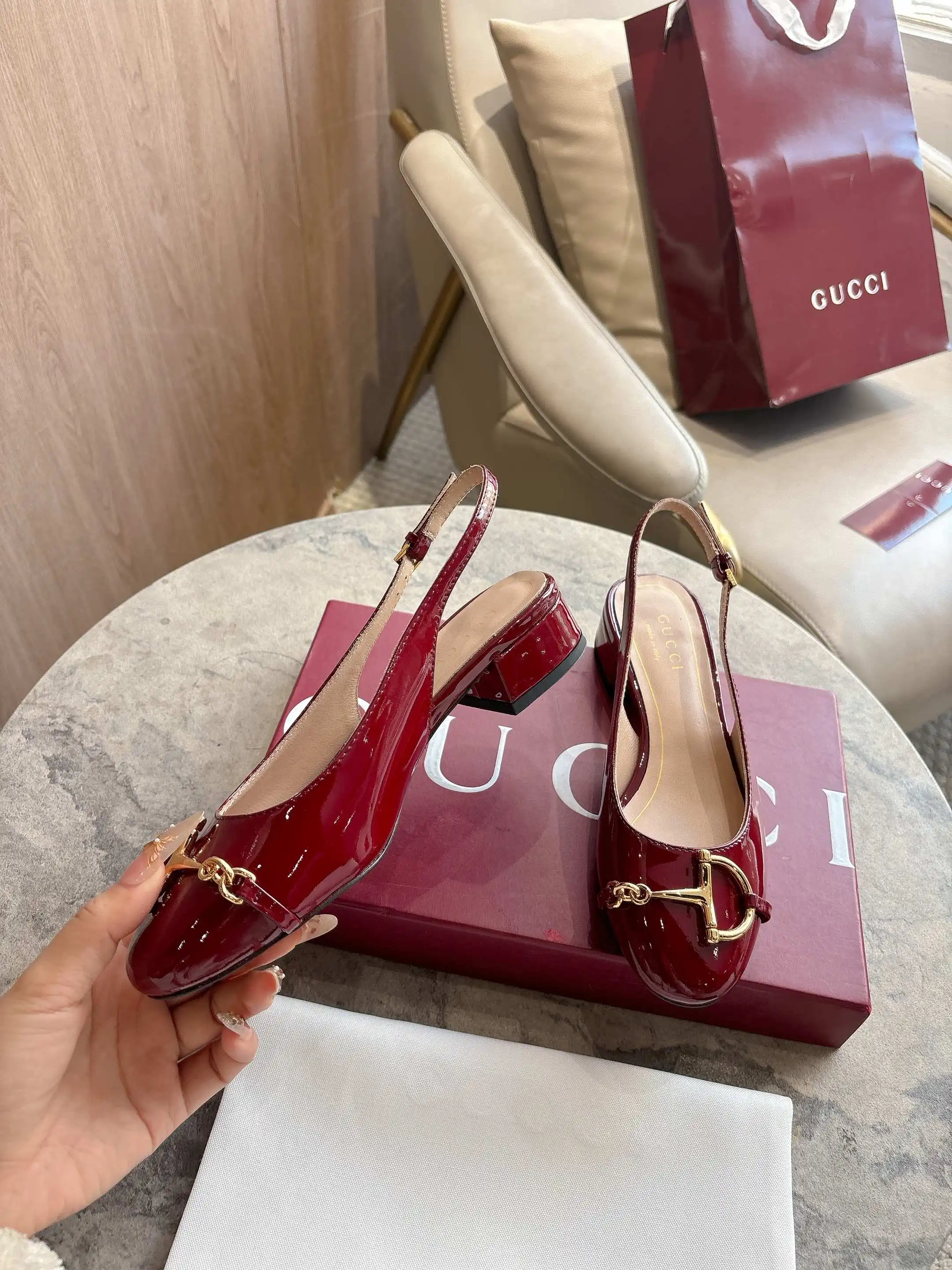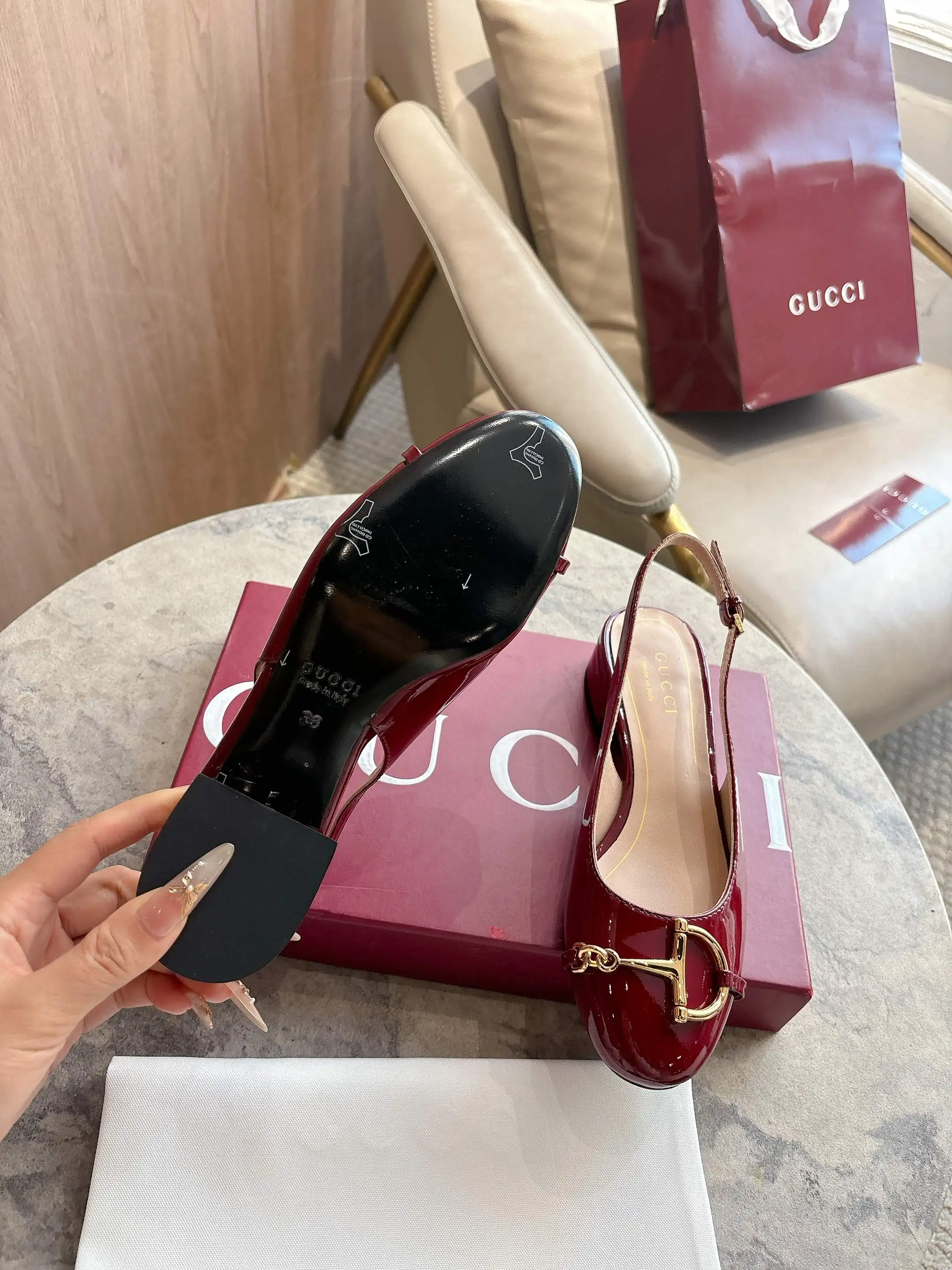 1168-5 酒红 35-42 2026春夏系列, 这款女士芭蕾舞平底采用光泽感漆皮匠心打造 以品牌标志性元素焕新诠释经典廓形 金色调半马衔扣细节增添雅致风范 透过当代视角致敬品牌马术传承