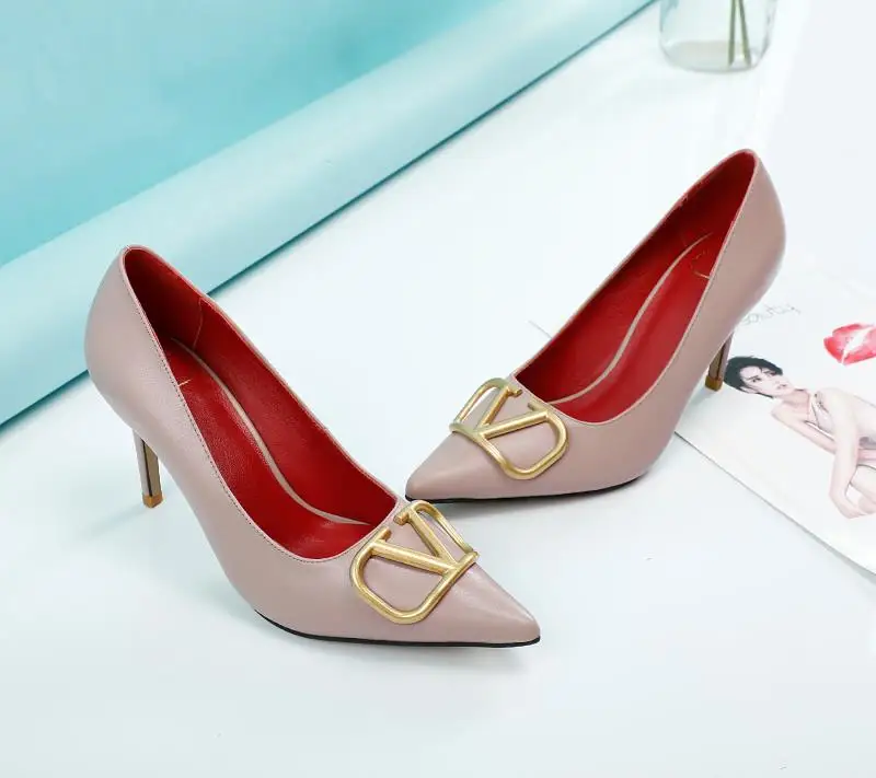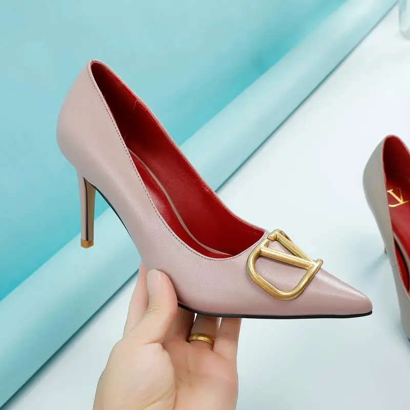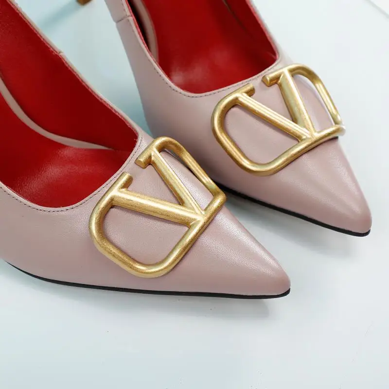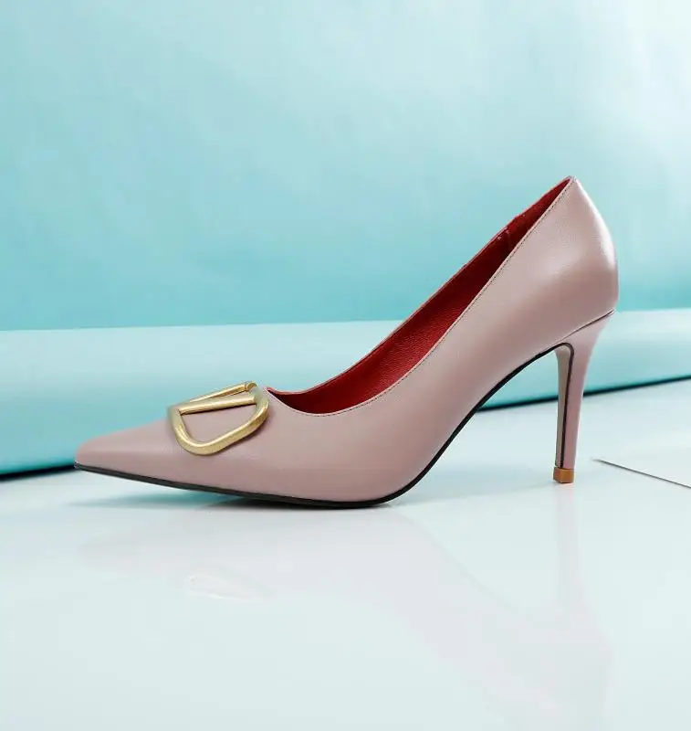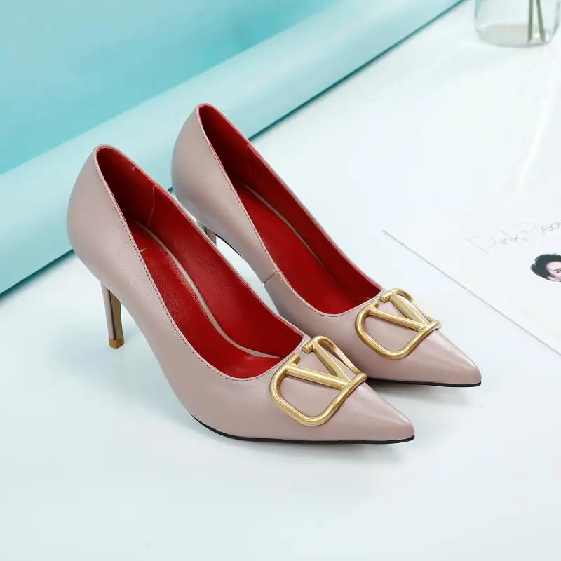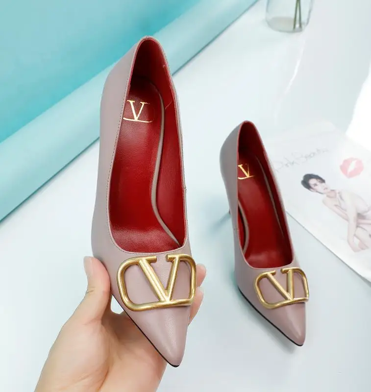 华伦天奴 时装高跟单鞋8厘米 大V字母扣.实拍图 码数35-40 可以订做41-42 头层软牛皮 内羊皮元 橡胶底 黑色+黑扣.黑色+金扣 米白色 红色 裸粉色 全套包装皮底+40