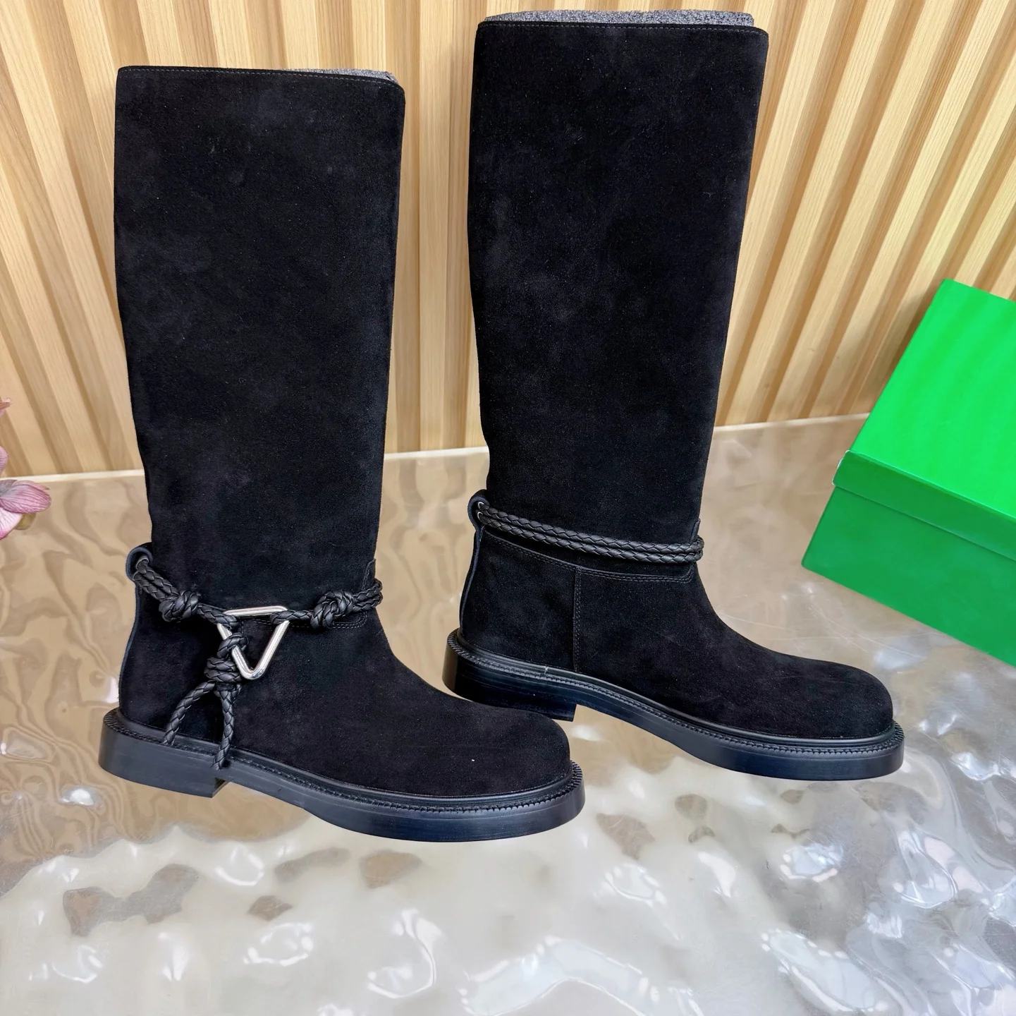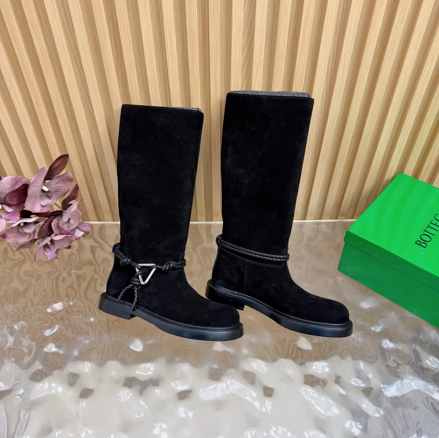 代购级别Bottega Veneta一脚蹬网红时尚骑士靴 高筒靴