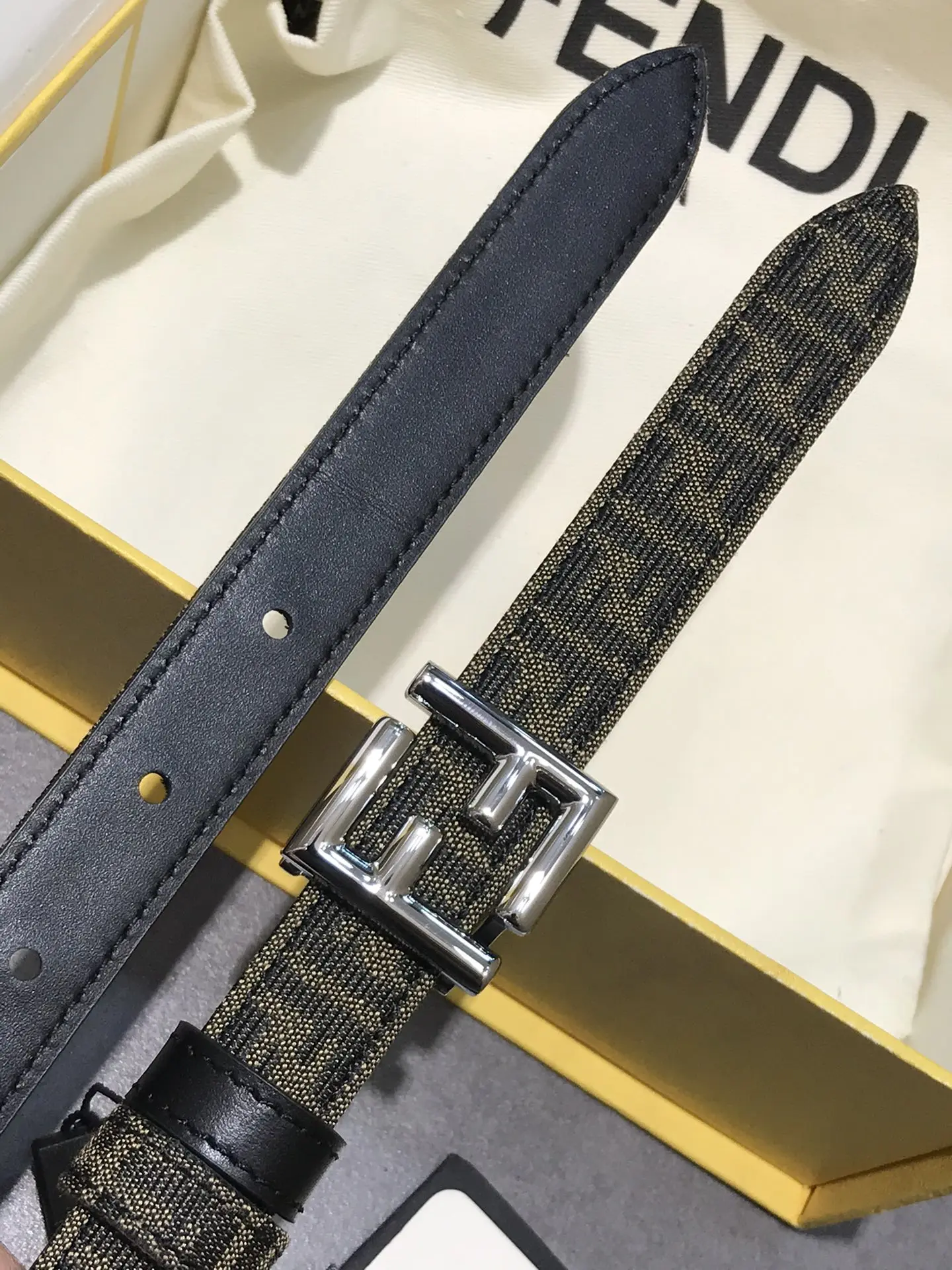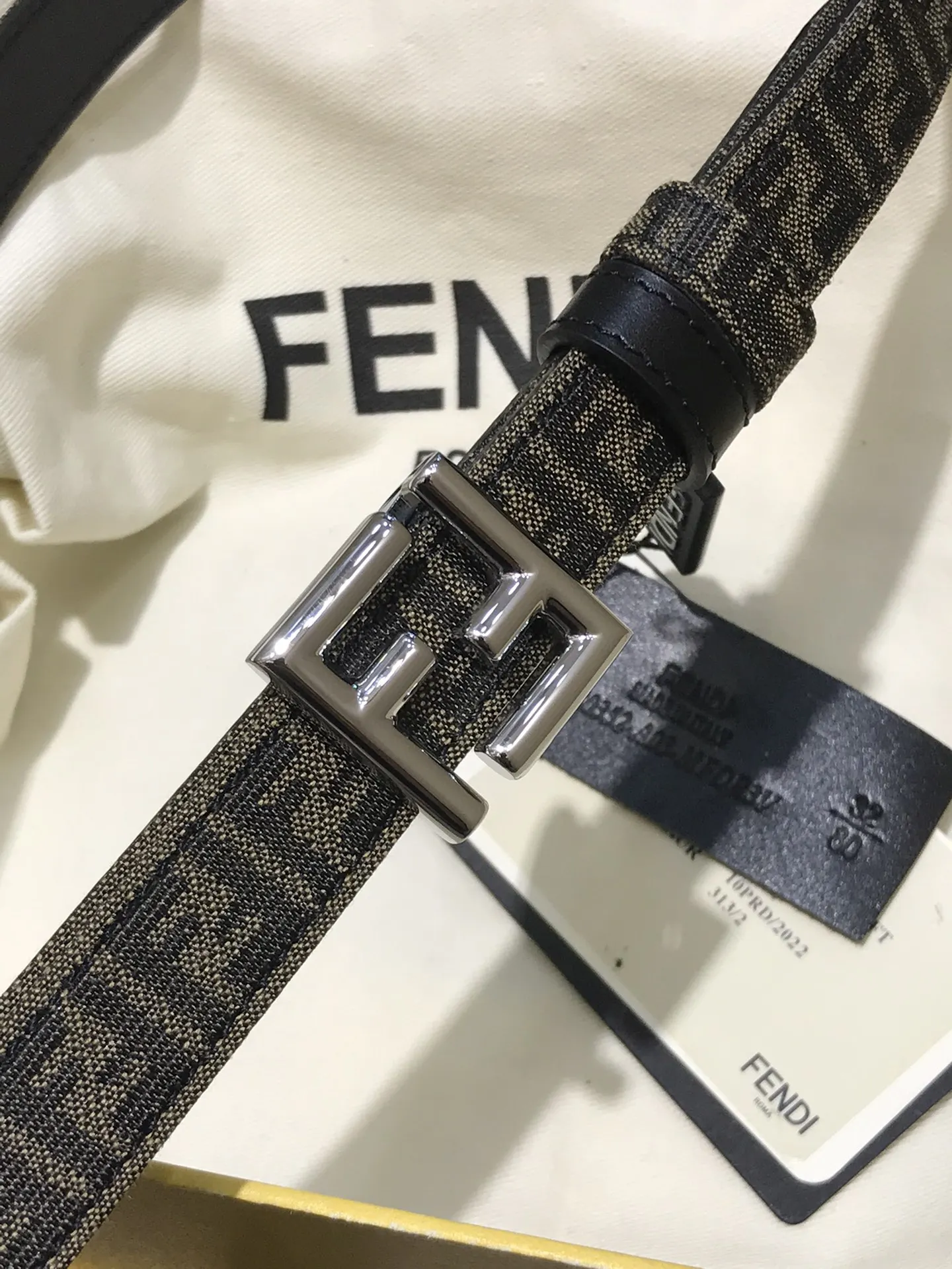 芬迪FD 老花纹F标志造型女士皮带
