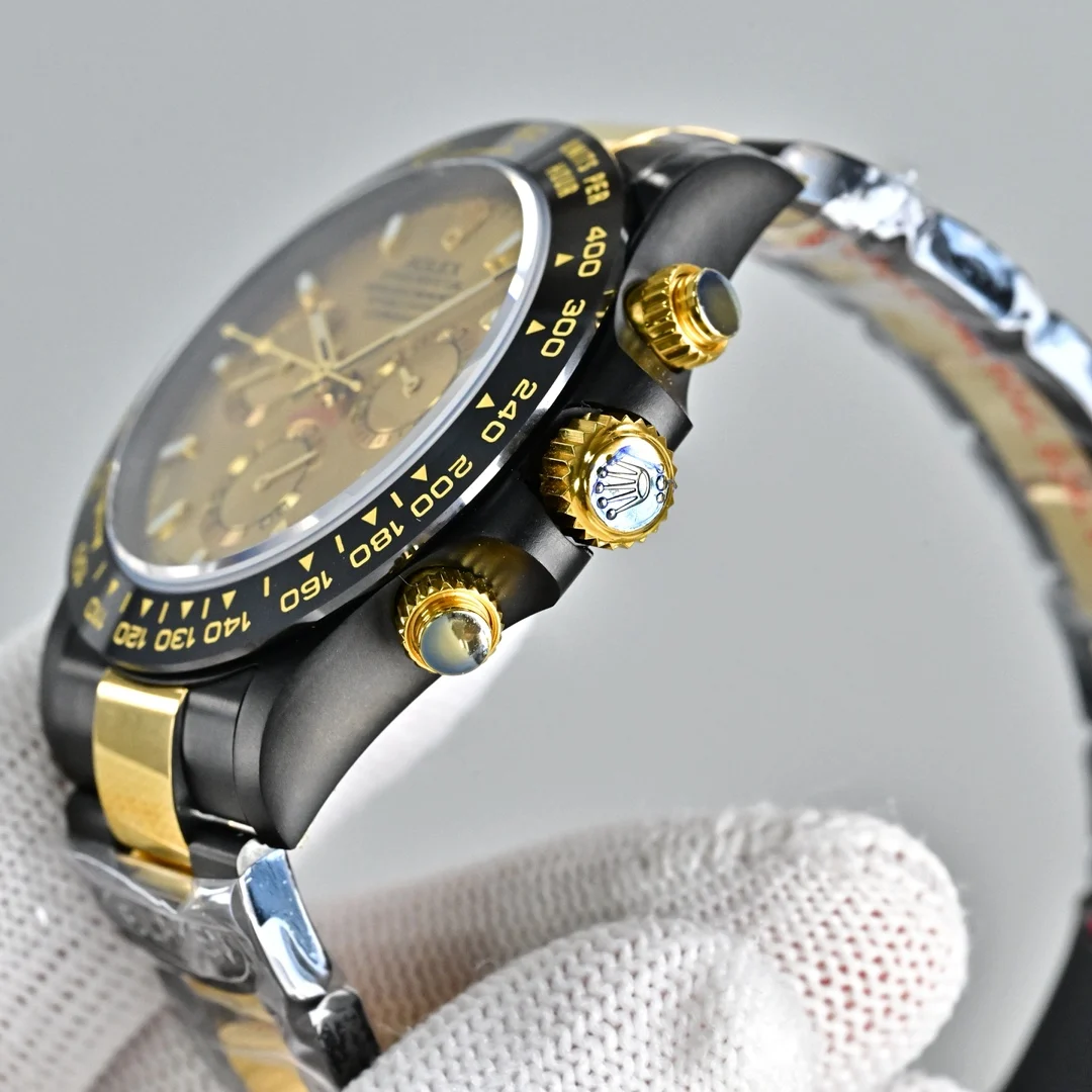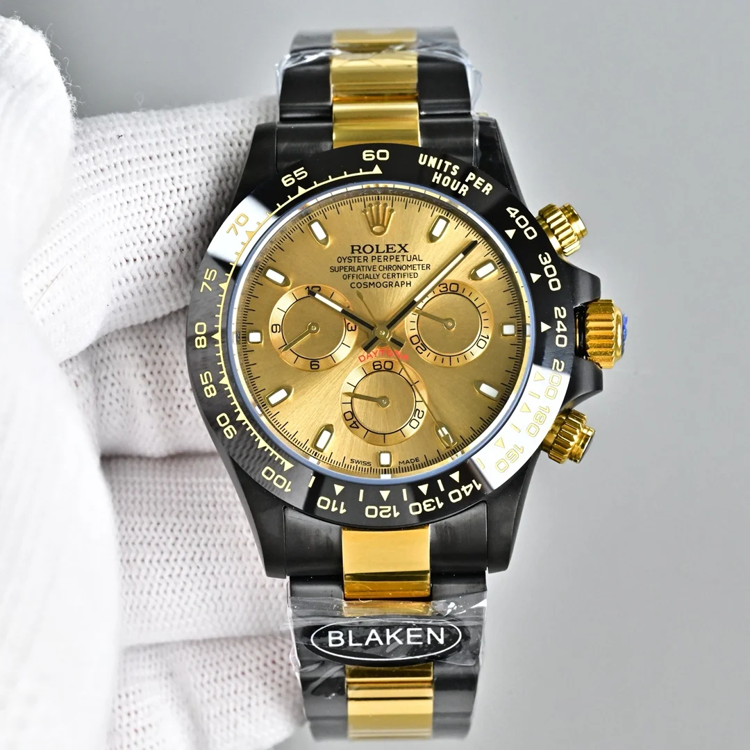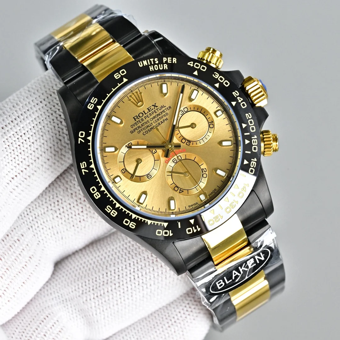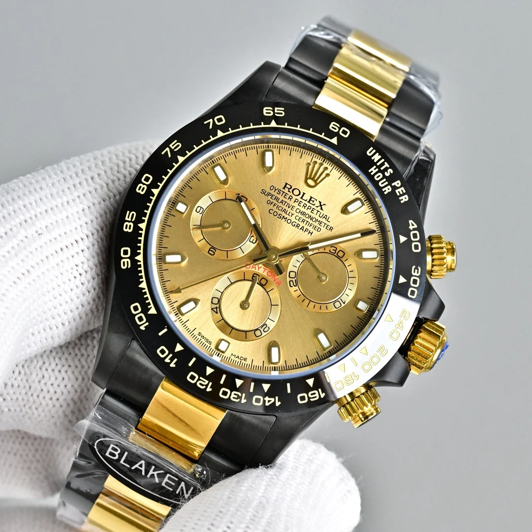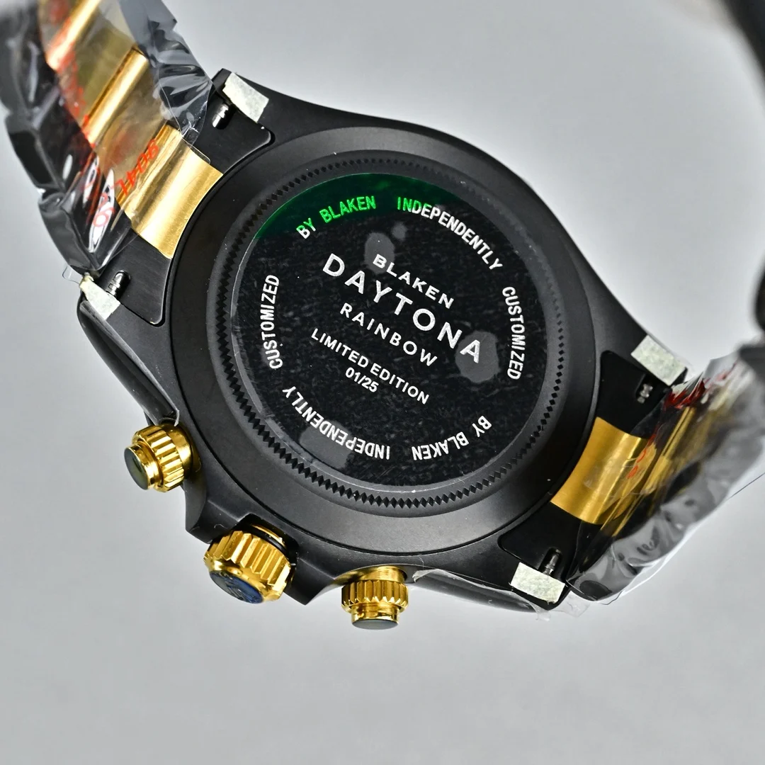 第五代迪通拿实拍暴击 40mm哑黑间电金太戳审美 12.2mm超薄机身 甩开市面13.5mm普通款 全实心精钢CNC精雕+人工打磨 质感直接拉满 改良超薄丹东7750机芯 计时同步专柜 蚝式保险扣防脱超安心 胶带款/皮带款/精钢带三表带任选 后期可自由更换 全套选配BLAKEN改装收纳箱+工具+真头粒牛皮表带 附带配件丢失不退 高端复刻诚意之作 表友速冲