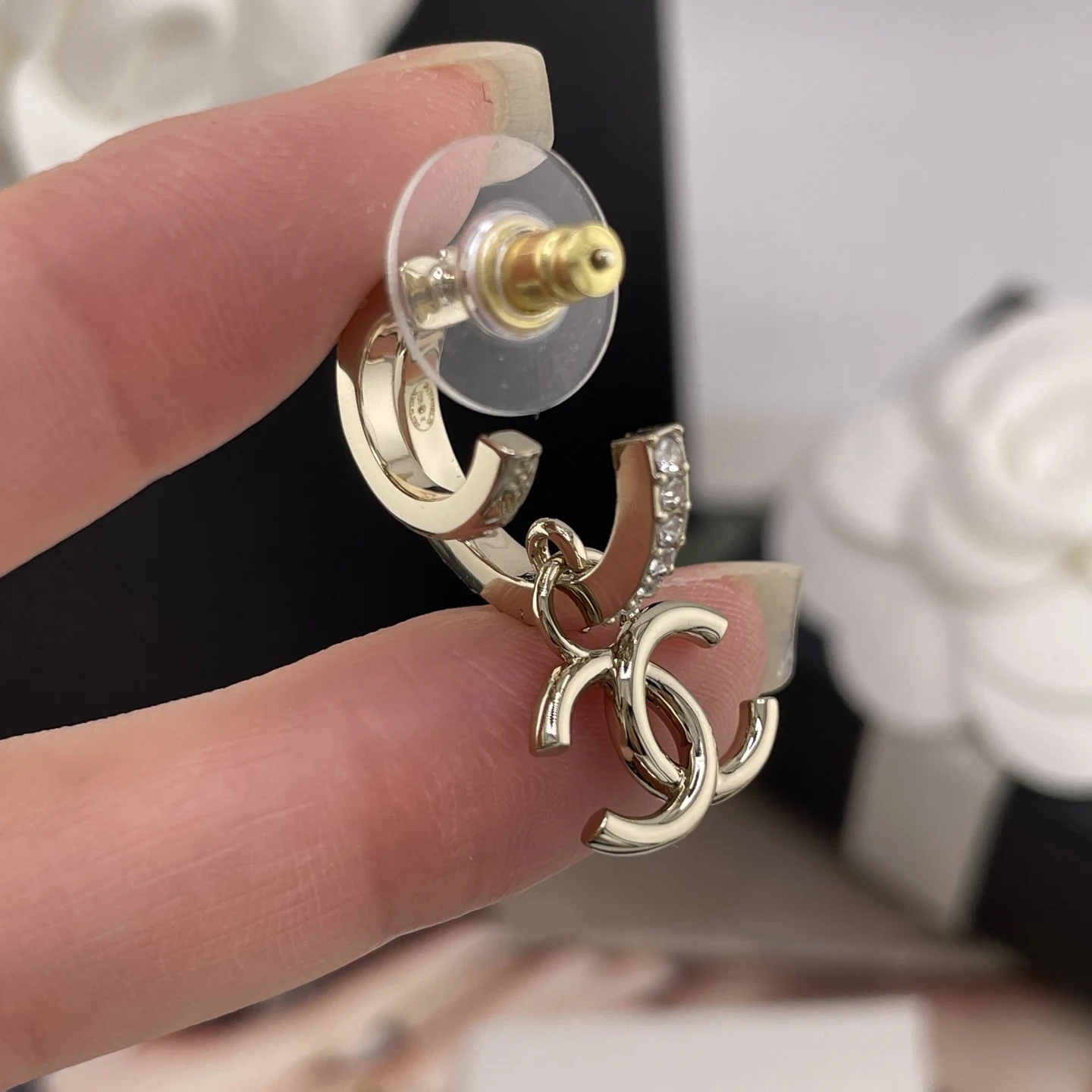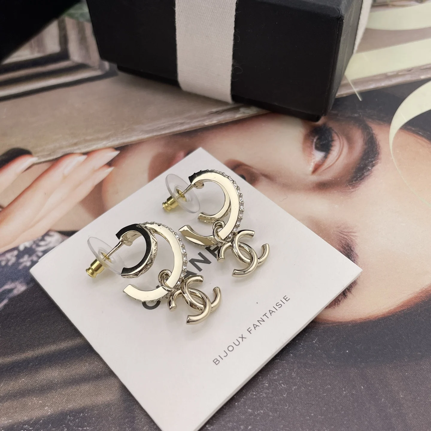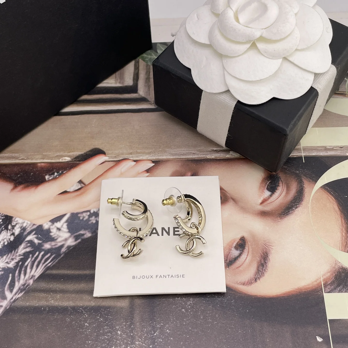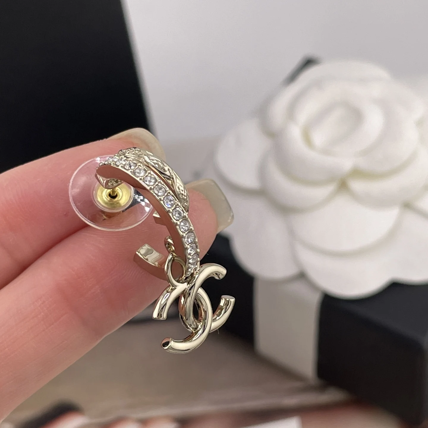 香双钩吊c耳钉 Z 5200 经典双 C标志超有辨识度 双环设计 外环镶水钻 内环浮雕纹理 细节满分