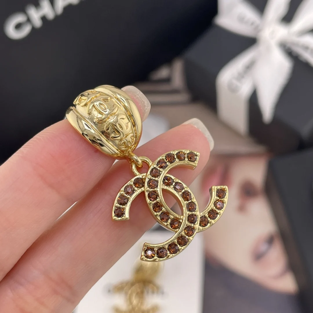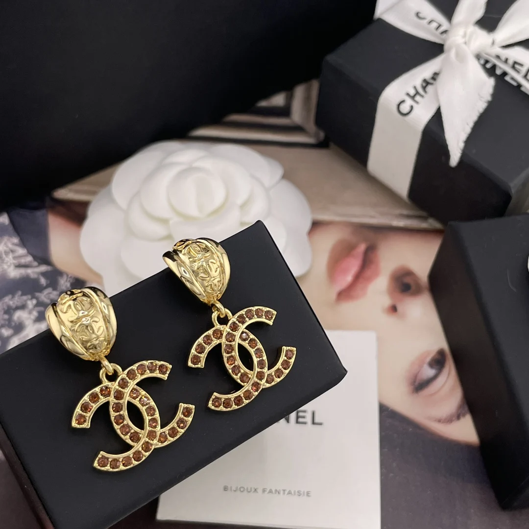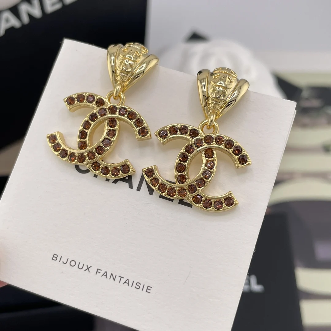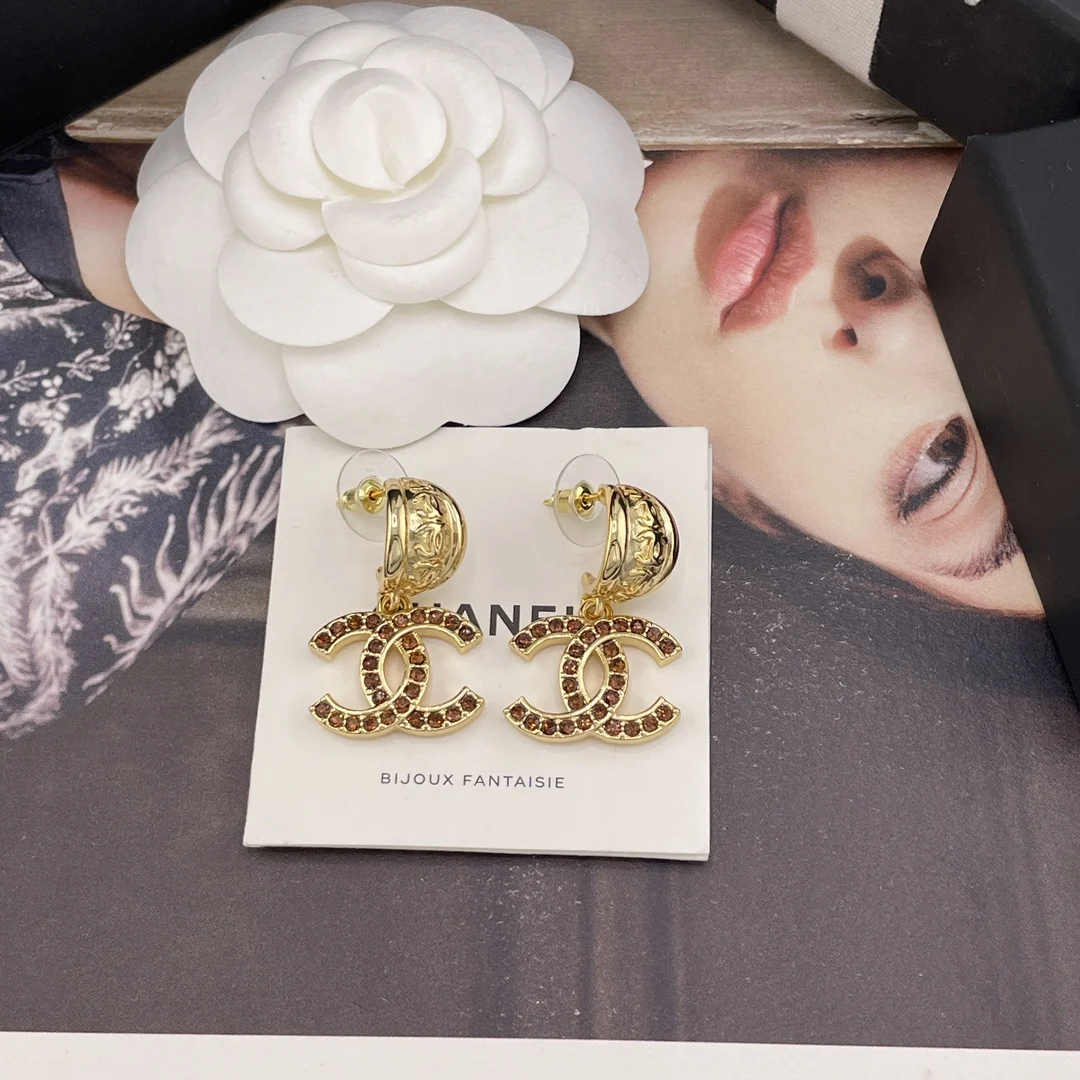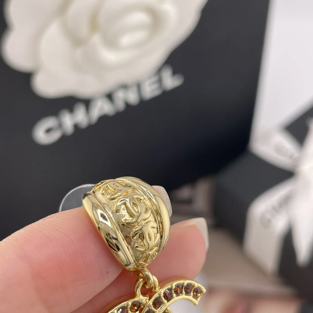 216606 香金弯叶吊棕钻c耳钉 张钧甯同款 Z 5900 非常绝超级百搭 Blingbling非常重工 闪闪发光很是精致 爱了爱了