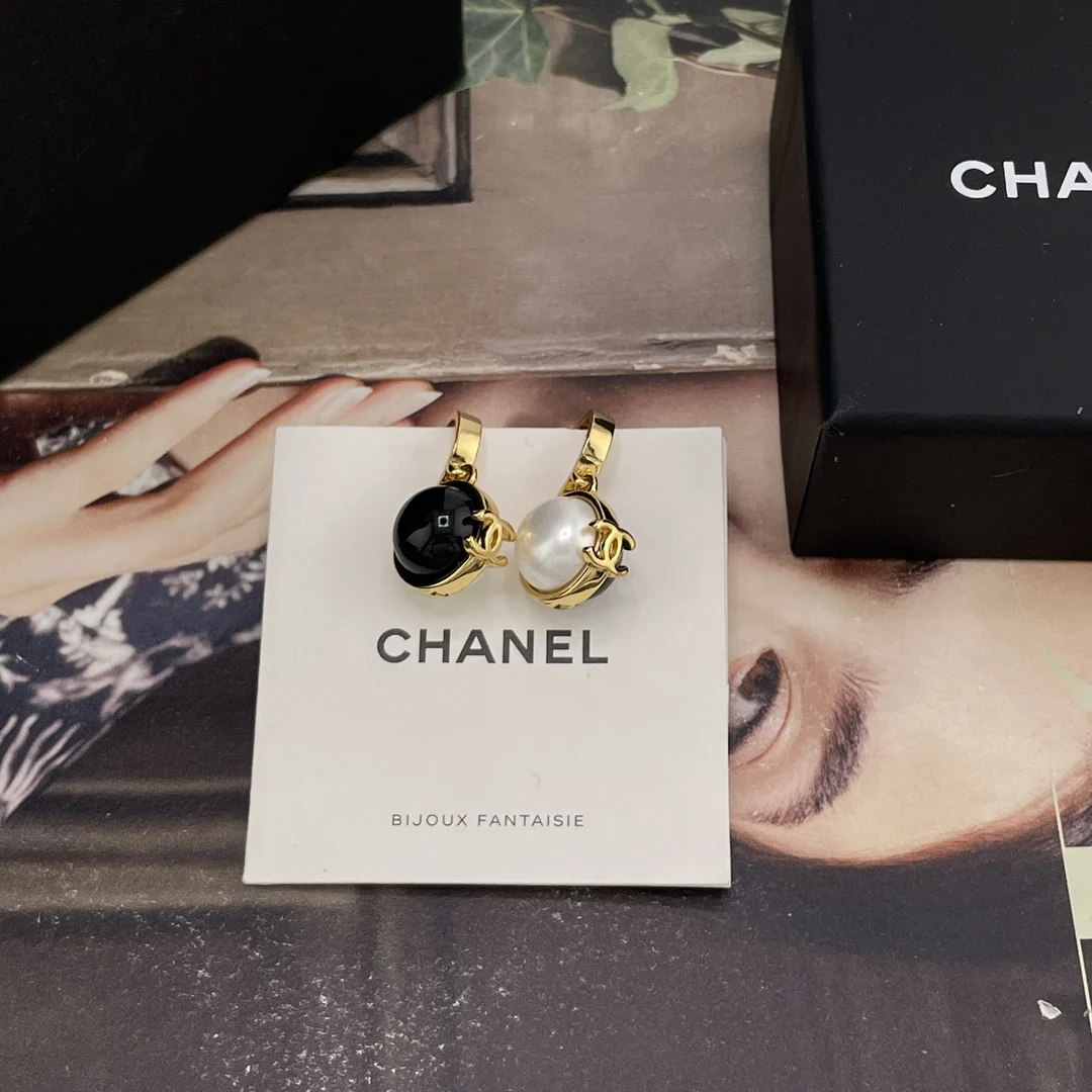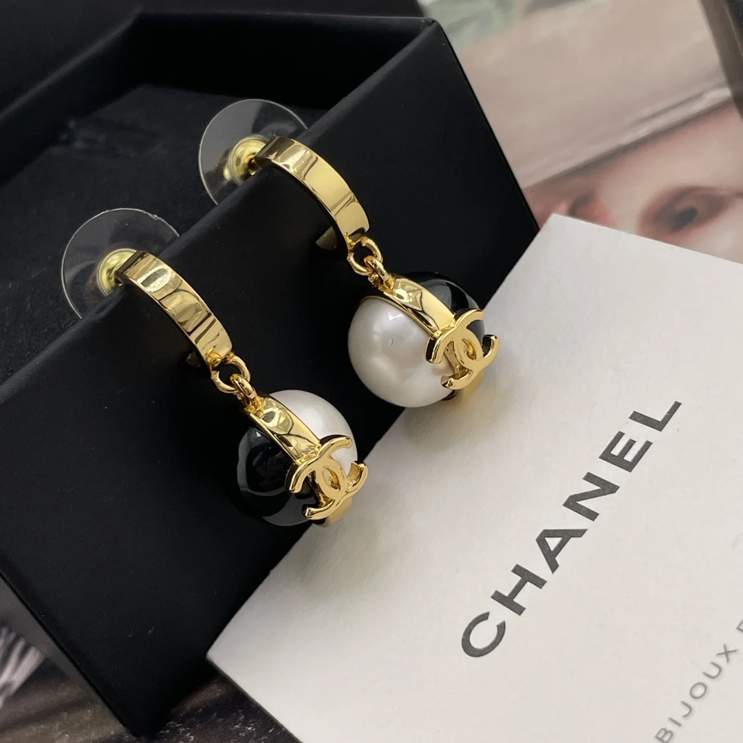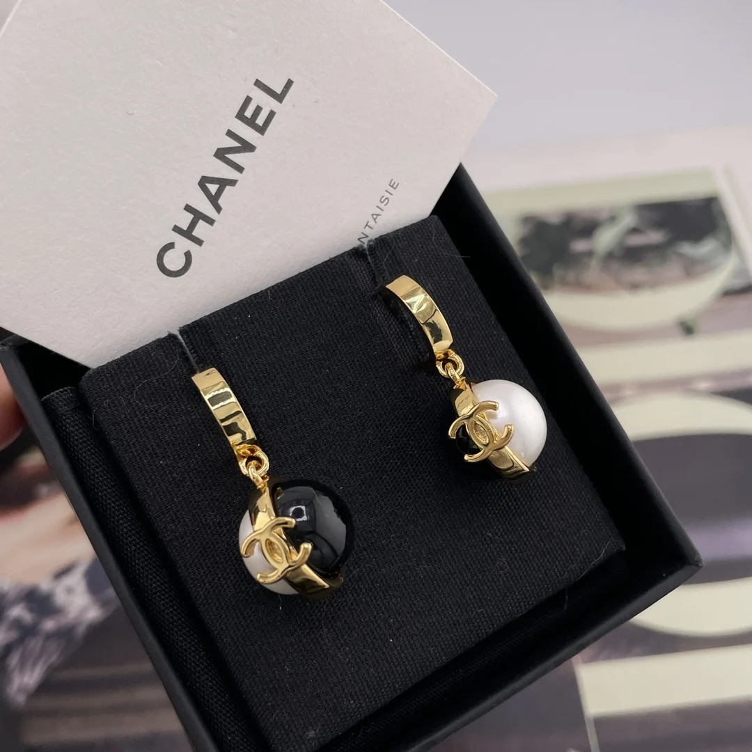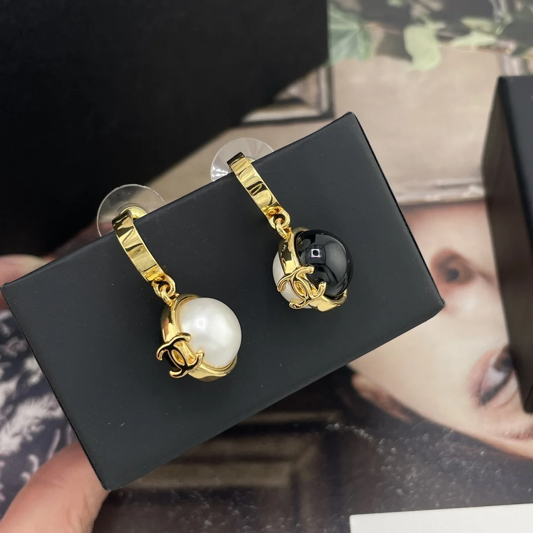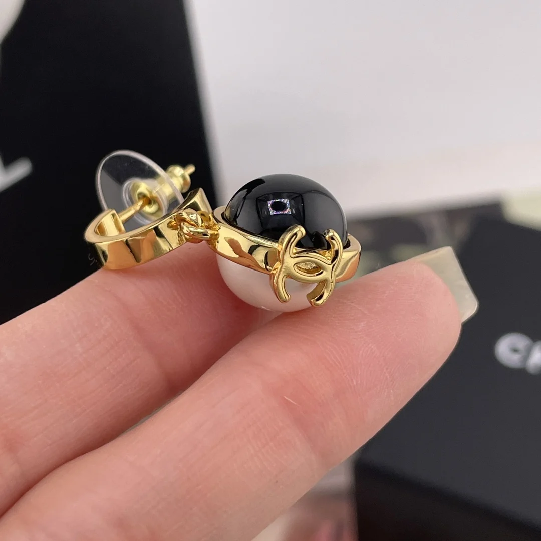 香金钩吊黑白球耳钉 很高级经典的黑白金搭配 撞色拼接设计 非常有创意设计感 又有点vintage的味道 上耳绝美 简约而不简单 小巧而精致