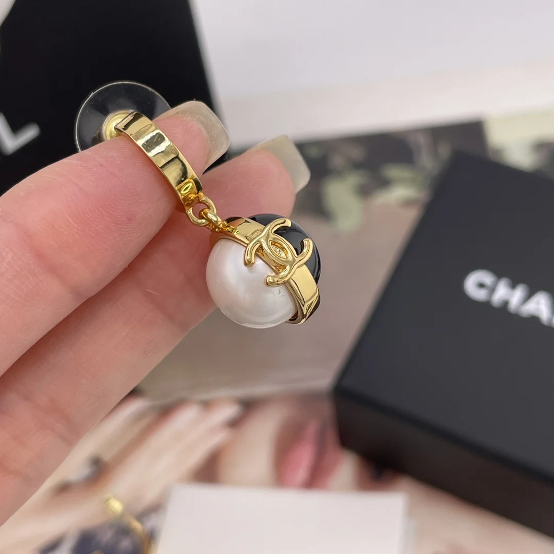 216808 香金钩吊黑白球耳钉 Z 5300 太爱了 一眼心动的设计 高级经典的黑白金搭配 撞色拼接设计 非常有创意设计感 又有点vintage的味道 上耳绝美 简约而不简单 小巧而精致