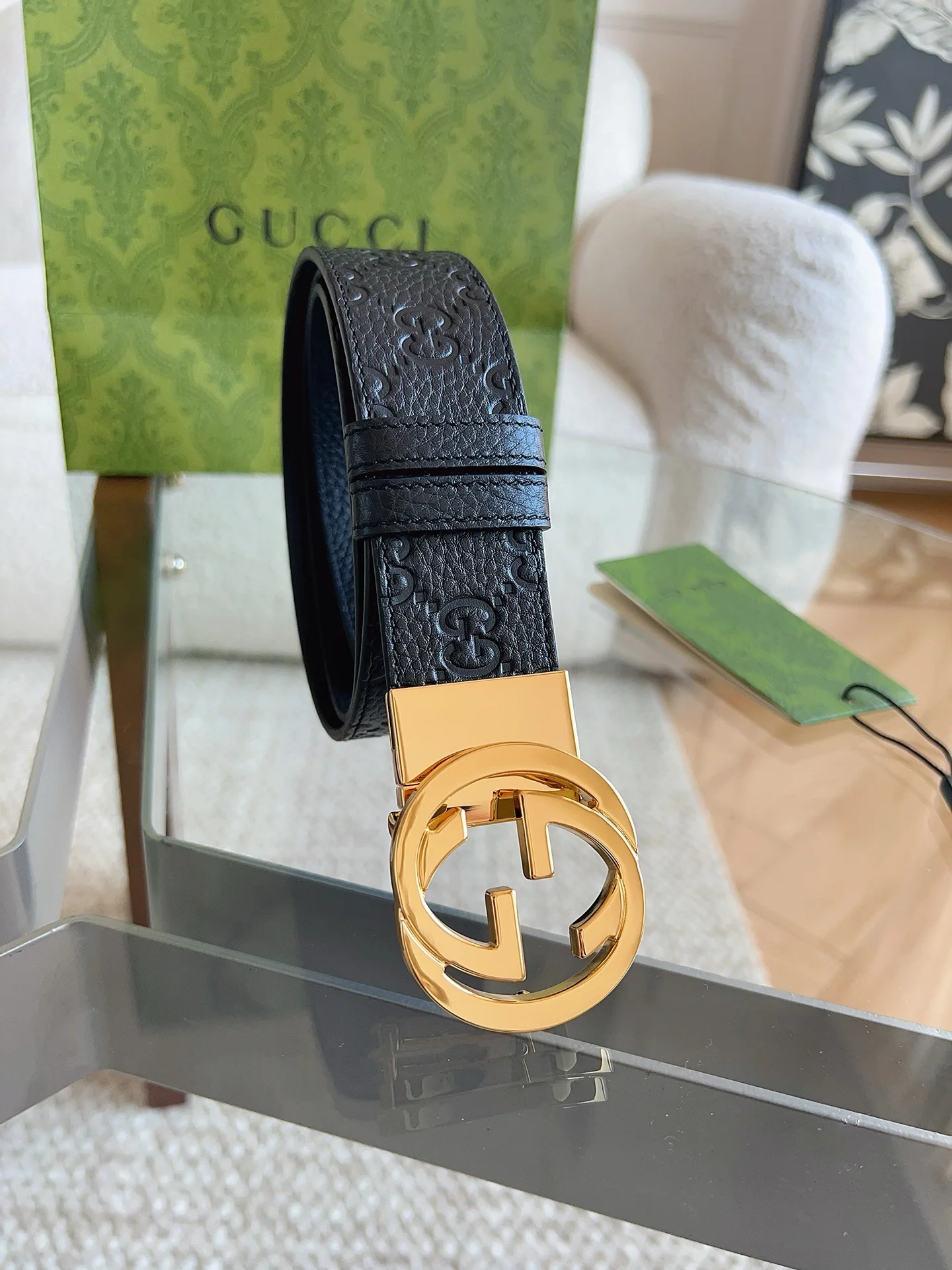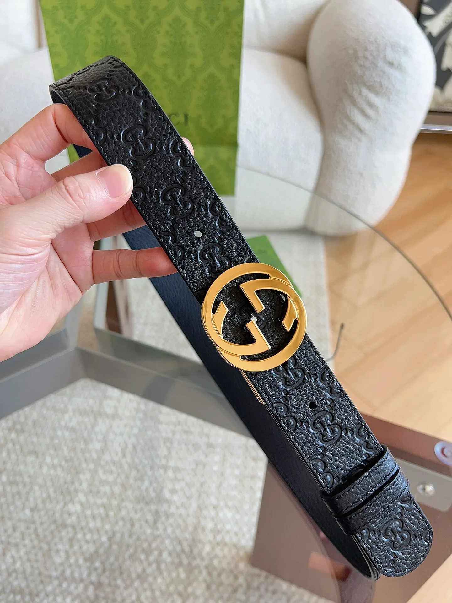 GUCCI 新款 荔枝纹经典压花腰带 配饰继续引领Gucci全新系列的潮流 以独具匠心的丰富细节和实用功能演绎出众品质 经典的双G搭扣素令整款腰带更添魅力 皮带宽度 3.7cm