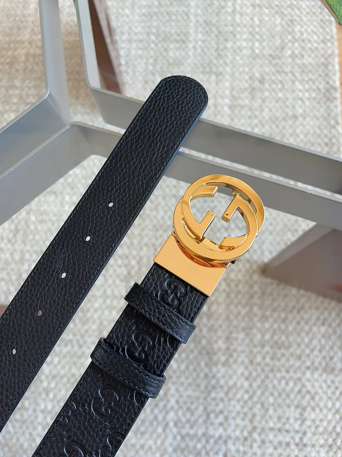古奇 GUCC荔枝纹双面皮革腰带
