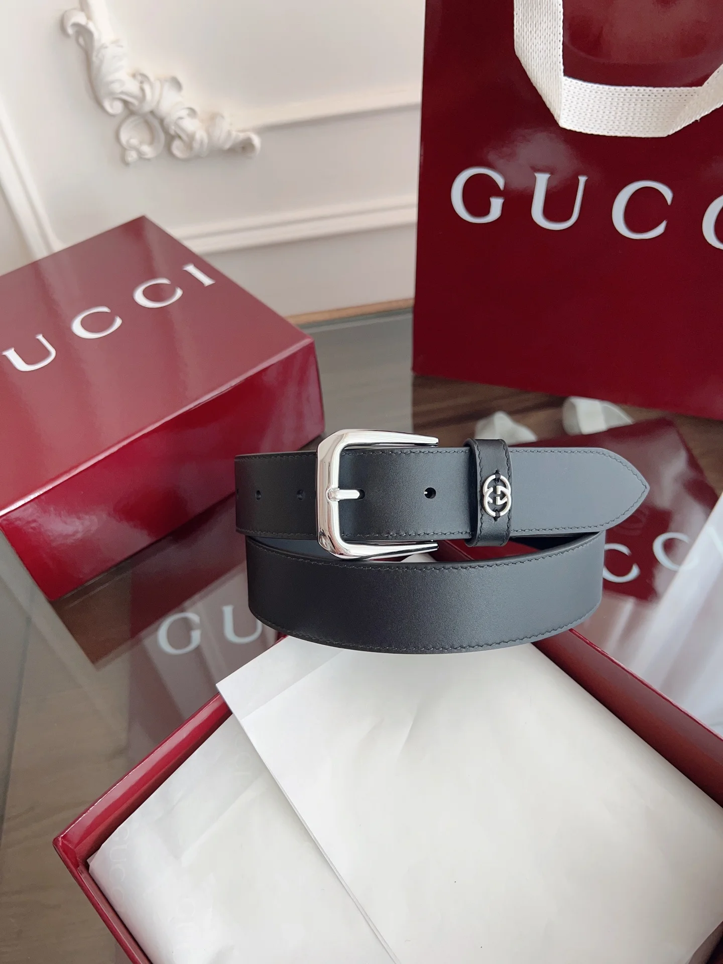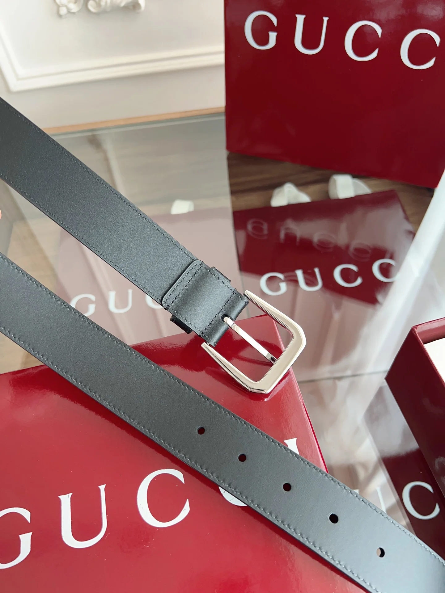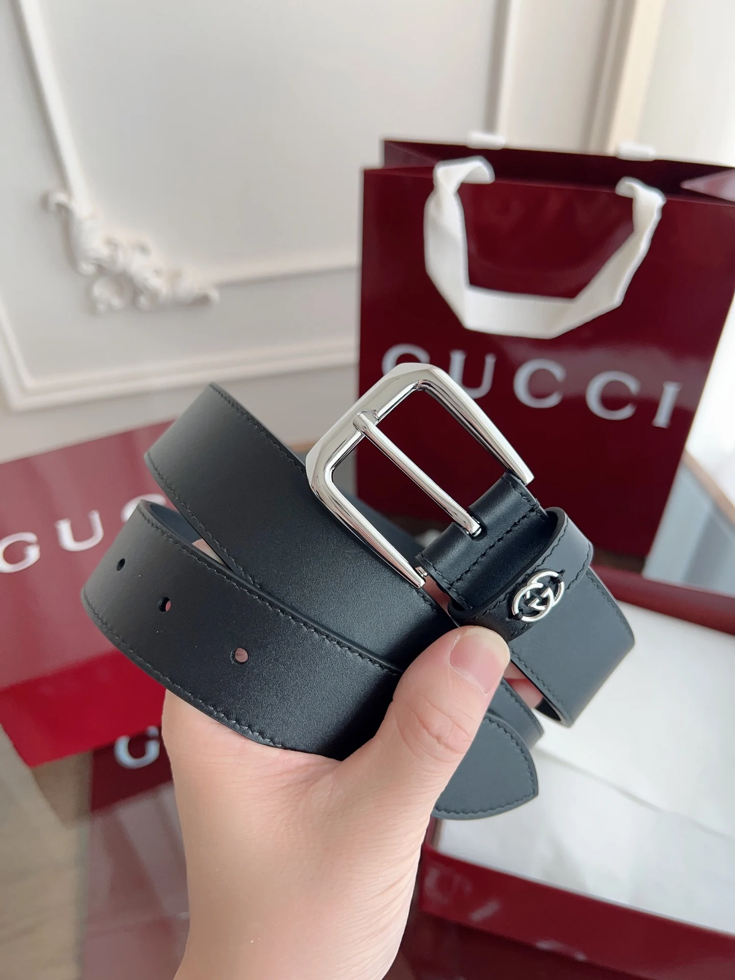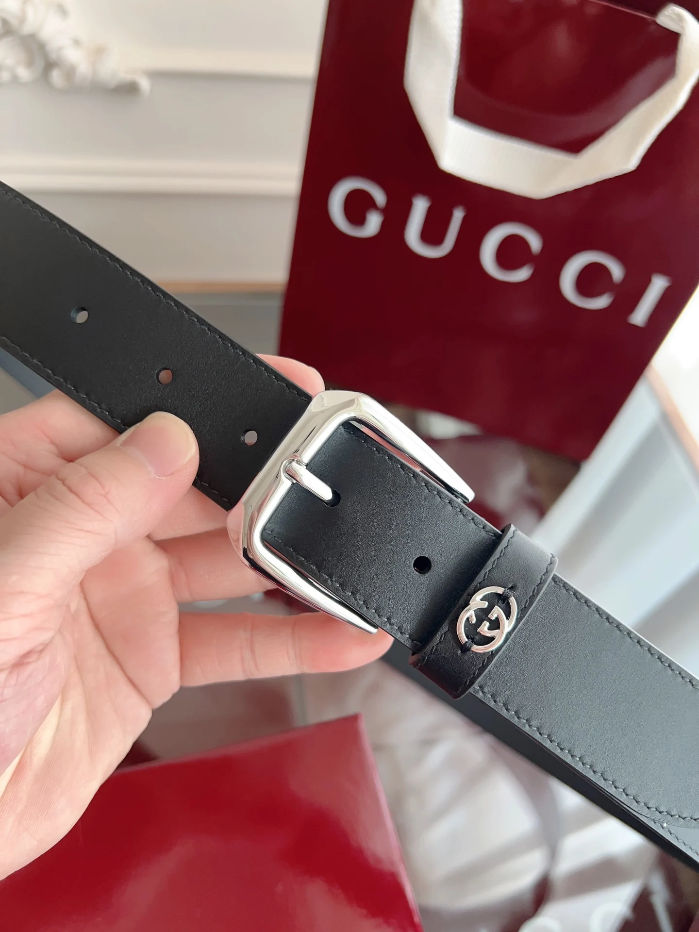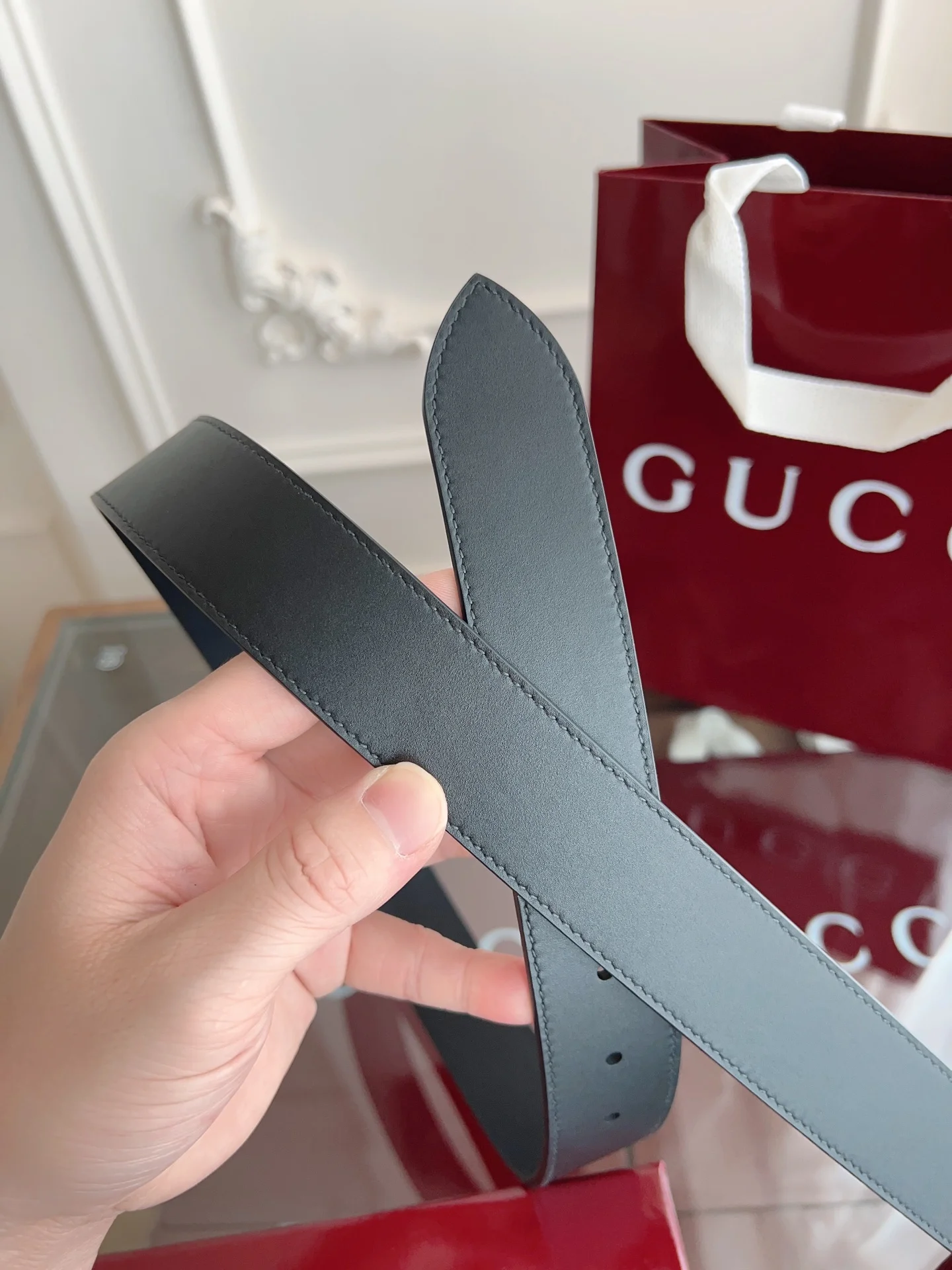 Gucci 专柜同款 进口意大利牛皮 原版进口平纹底衬里 搭配纯铜五金带扣 纯进口机械车线 工艺精细 原单品质 宽度3.5CM