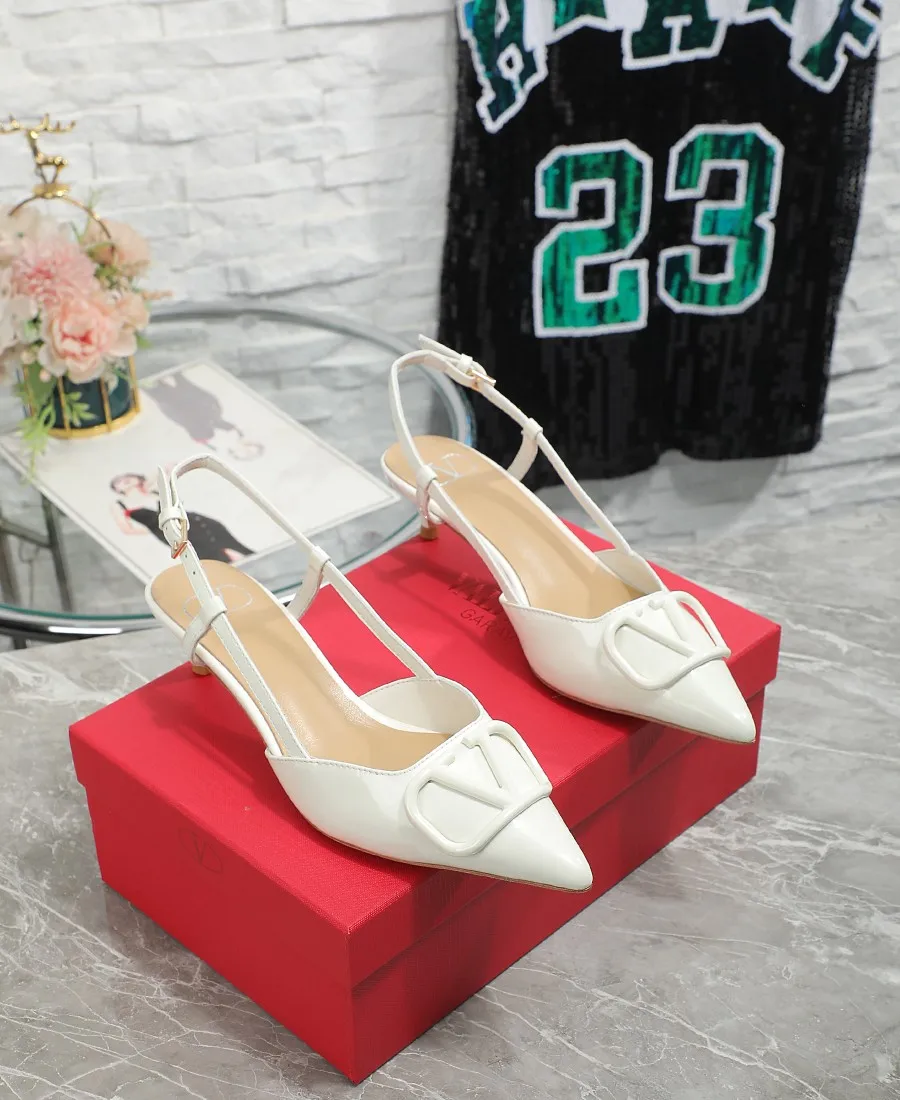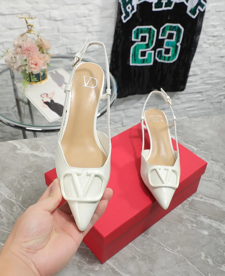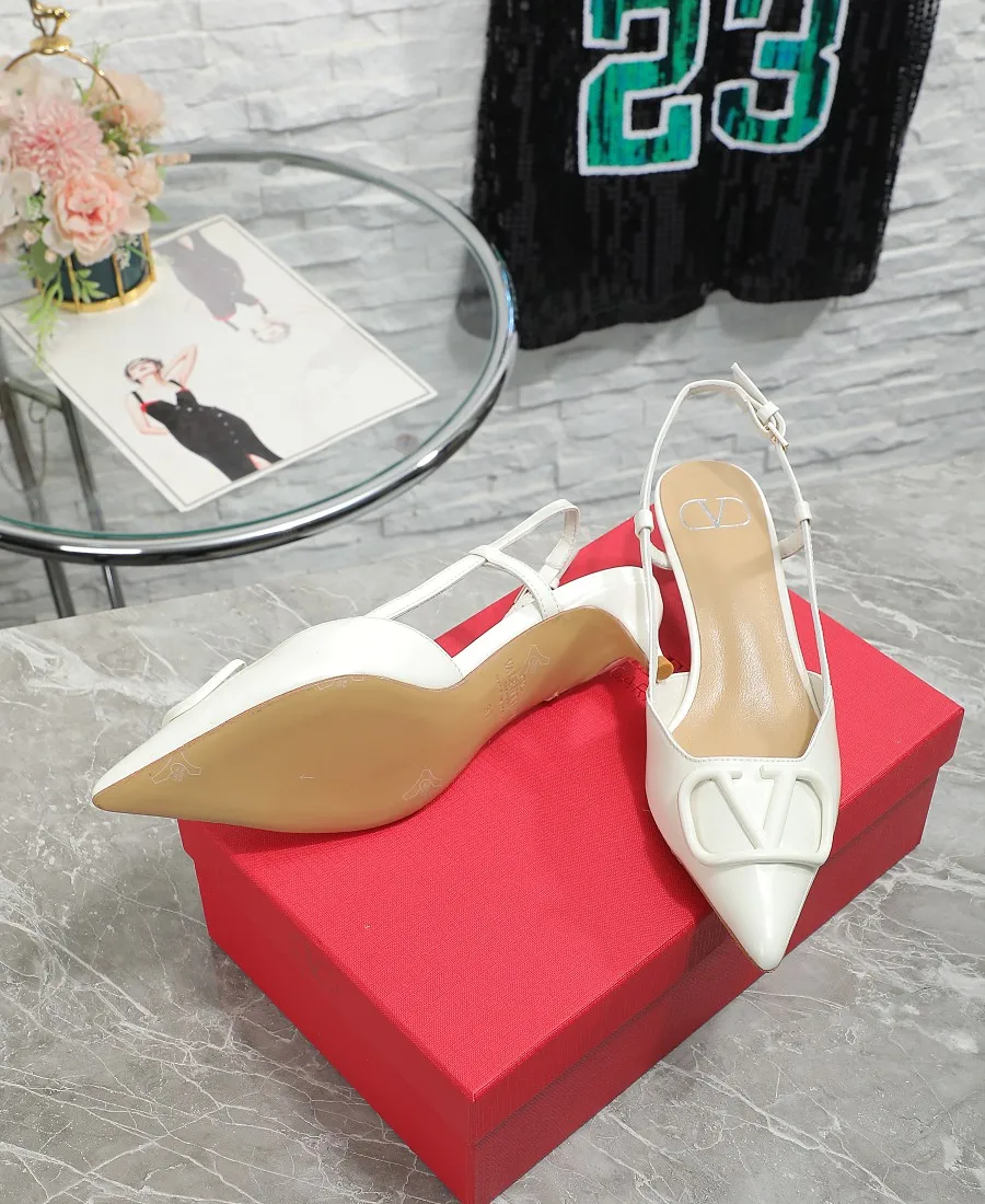 华伦天奴中跟4厘米 Valentino私家金属Logo系列后空凉鞋 尖头鞋简直是脚胖脚宽救星显瘦显脚长 不喜欢经典款两带太高的 选这款绝对合适啦 非常的好穿凉鞋款式穿着更方便