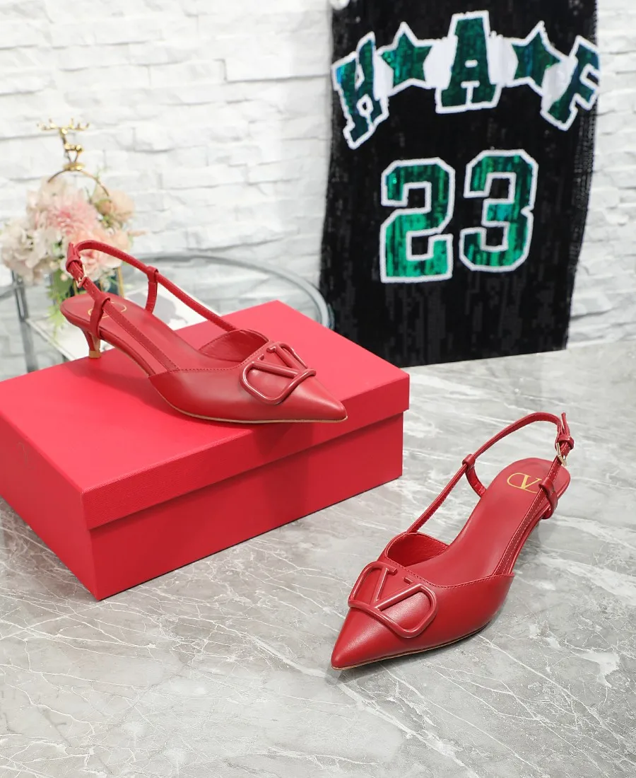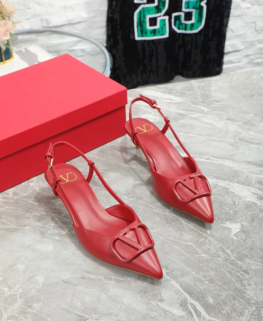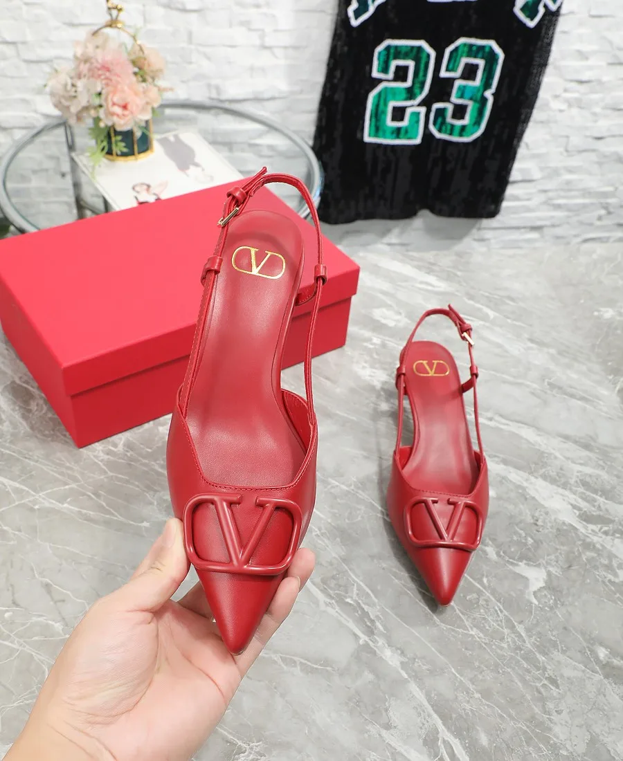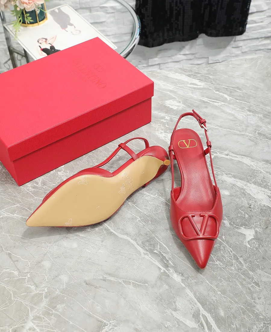 华伦天奴中跟4厘米 Valentino私家金属Logo系列后空凉鞋 尖头鞋简直是脚胖脚宽救星显瘦显脚长 不喜欢经典款两带太高的 选这款绝对合适啦 非常的好穿凉鞋款式穿着更方便