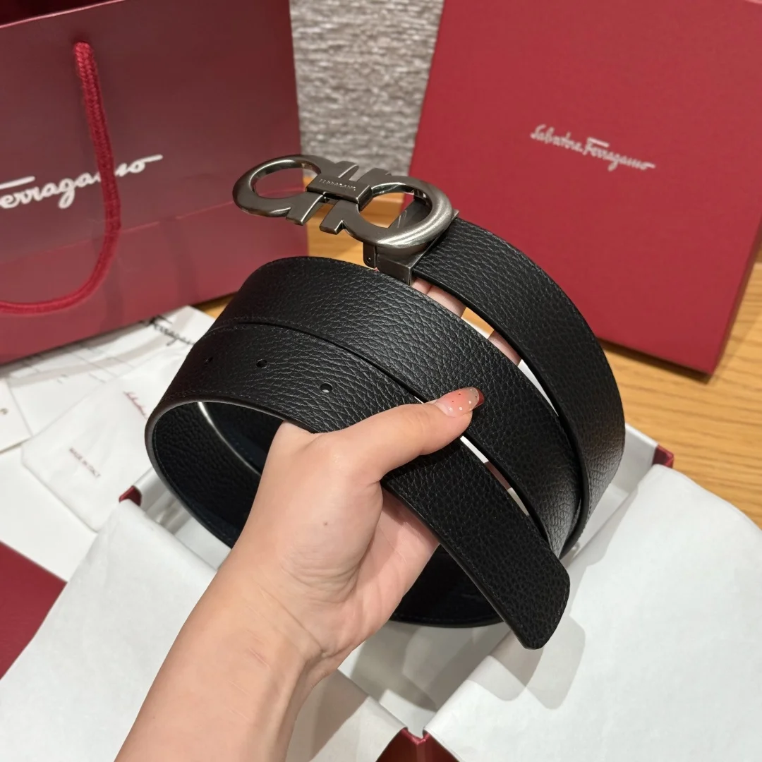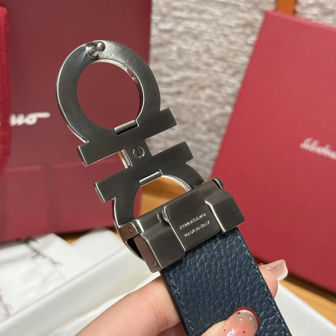 菲拉格慕高级定制款男士双面进口牛皮带