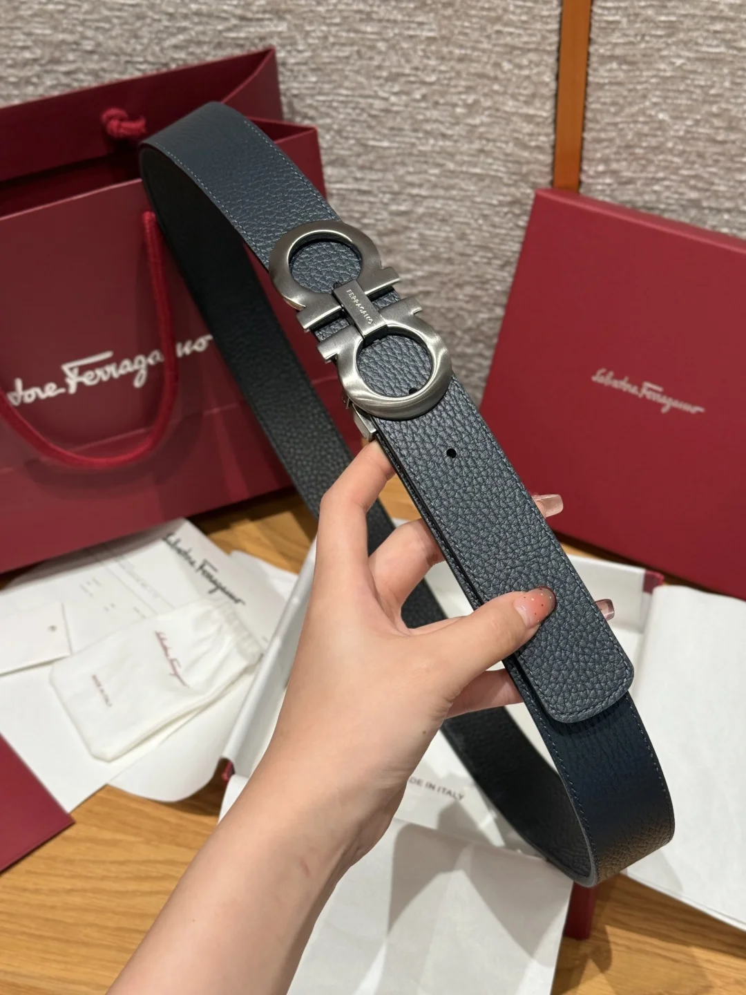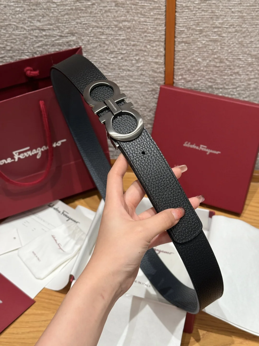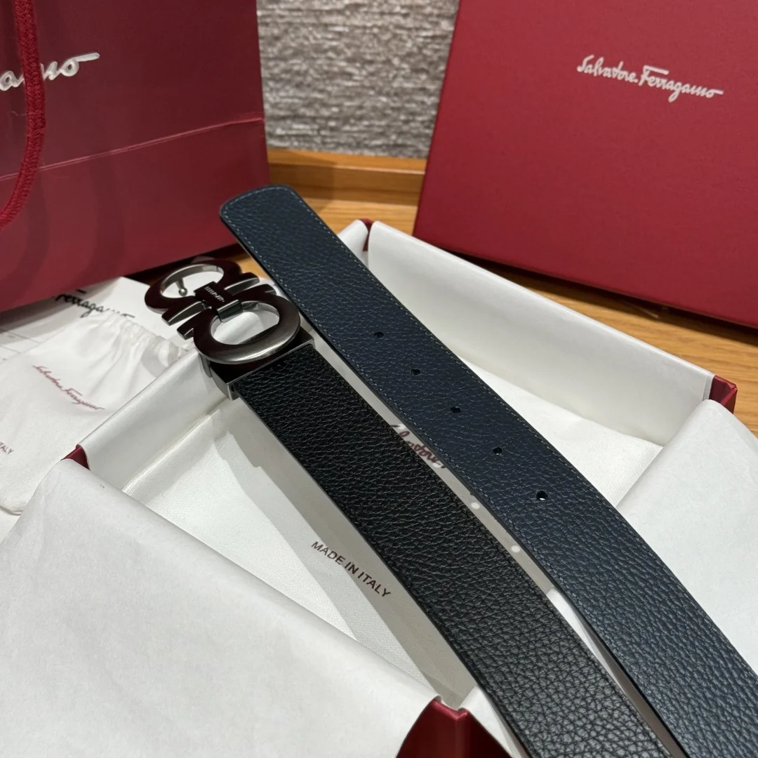菲拉格慕 高级定制款男士双面进口牛皮带
