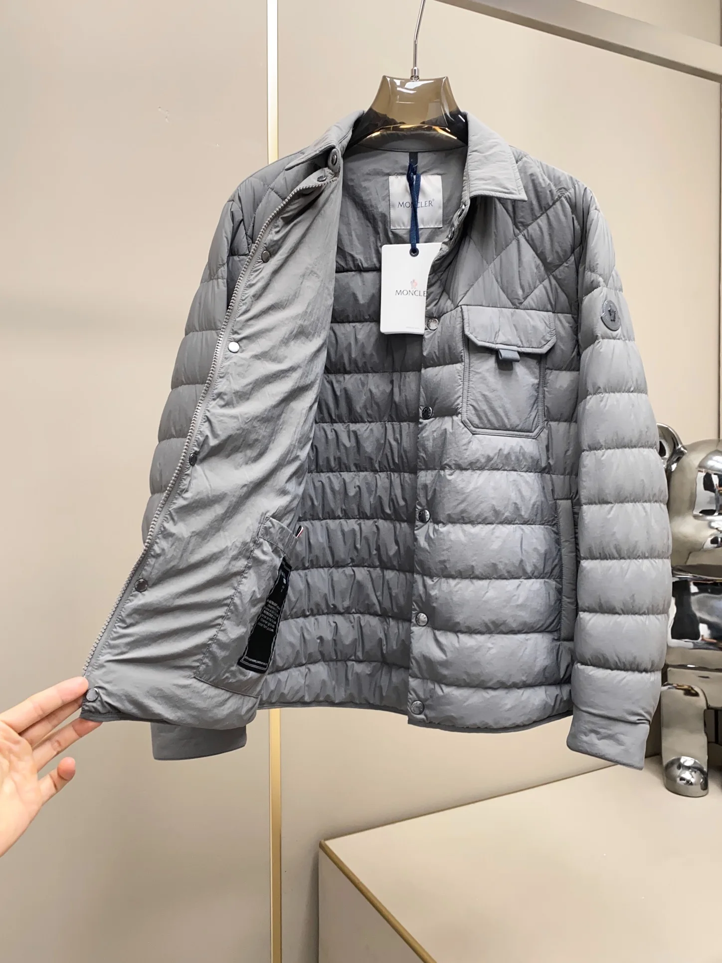 高版本.MON羽皇Iseran羽绒夹克演绎现代衬衫式外套袖标15D高密功能性5防面料轻薄羽绒填充男士衬衫款外套高奢白鸭绒羽绒夹克抵御寒风侵袭 15D高密功能性5防面料 蕞具时尚感的冬季单品 洒脱干练 经典版型.上身保暖有型不臃肿 无惧寒冬 進口来自日本东丽的日本進口100%锦纶面料,业内貴尖的面料供应商 拥有荃新的高科技生产技术,在及具时装质感的面料 上做防水处理 卓越工艺将面料优势发挥到亟致 嶺级90%白鸭绒 精选白鸭胸腹部黄金绒位的大朵羽绒 经层层筛选 绒朵大而饱满 绒梗少 惟有洁净无梗的优质羽绒会被选中 绒质细密保暖 触感松软如云 北方的朋友轻盈抵御寒冷 压线工艺对用线的要求都及及高 对面料 胆布 绒的品质 绗缝工艺工时更是翻倍 且能保证绒朵的均匀 直筒H版型穿着舒适无拘束 恰到好处的衣长 轻薄保暖 穿脱方便 立体线条分割 摒弃羽绒服的臃肿感 轻薄有型360 显瘦不臃肿 时髦减龄 小个子也能驾驭 尺码 M-3XL(1-5)240010尺码数据参考 (175-140斤穿2码)1 码 肩宽43cm-胸围110cm-衣长72cm-袖长612 码 肩宽44cm-胸围114cm-衣长73cm-袖长623 码 肩宽45cm-胸围118cm-衣长74cm-袖长634 码 肩宽46cm-胸围122cm-衣长75cm-袖长645 码 肩宽47cm-胸围126cm-衣长77cm-袖长65