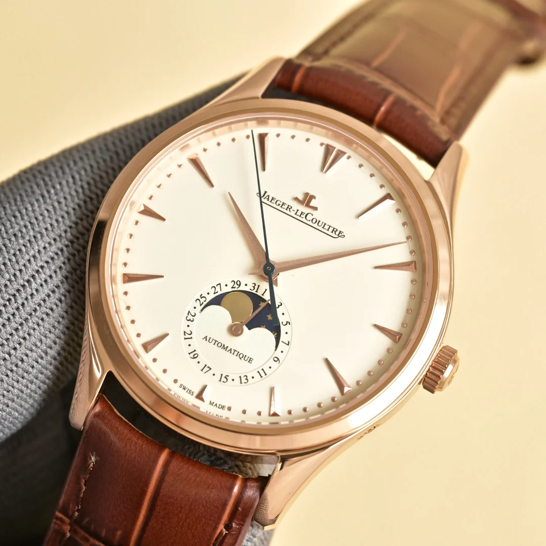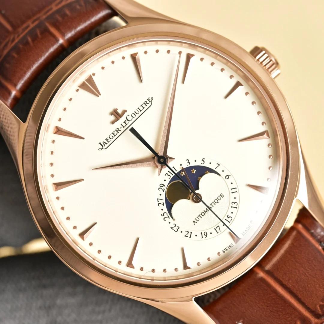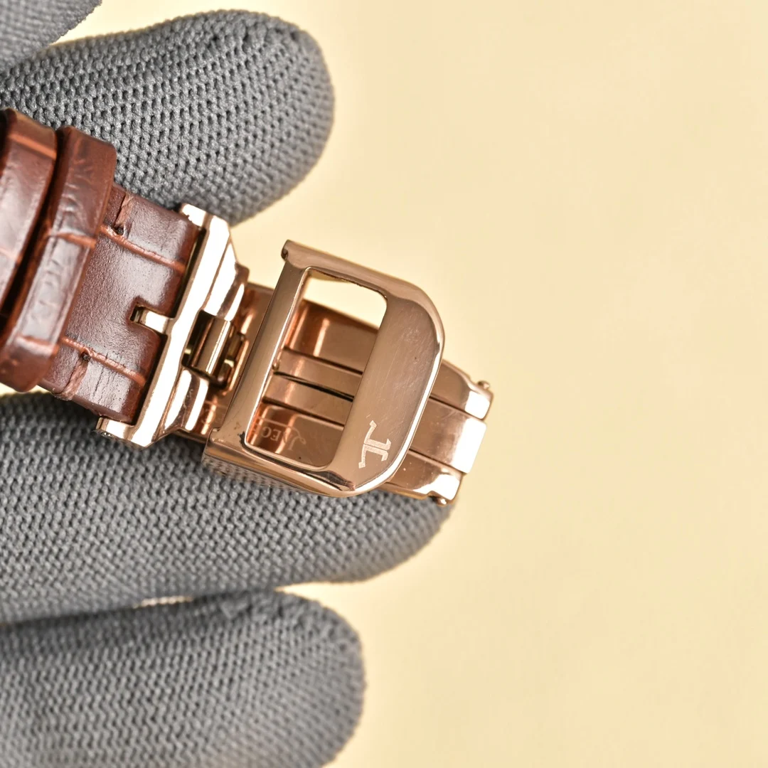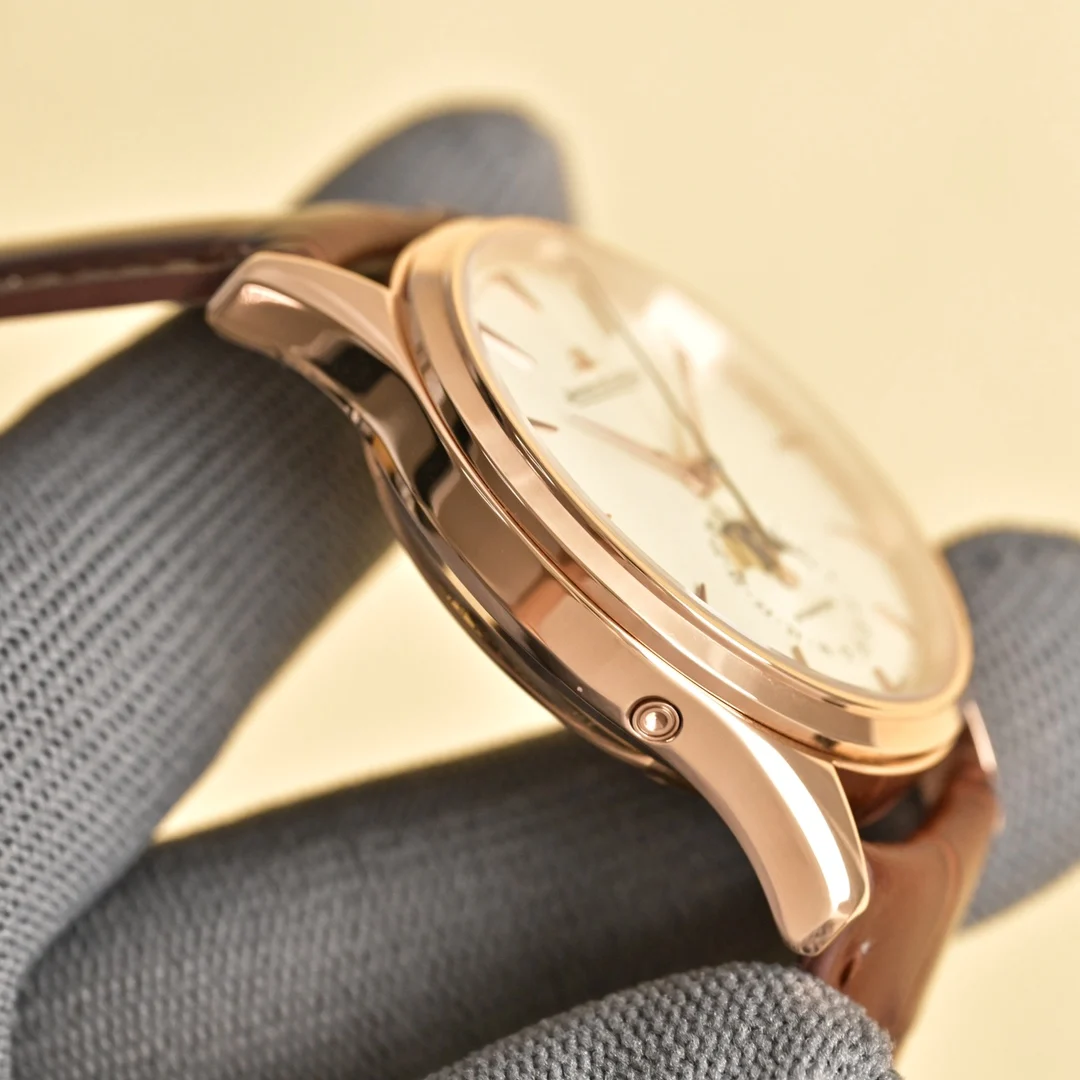 积家月相大师 表壳直径39mmX9.9mm六点钟的子盘为24小时同步时针功能 技术突破 采用海鸥2824改积家自产Cal.925/1机芯 功能百分百同步原装自产机芯 走时稳定 素质坚挺 细节突破 从侧面观察腕表盘面发现有微微的弧度 神韵和感觉能与原装相媲美 积家月相大师 满足您对的一切美好情怀