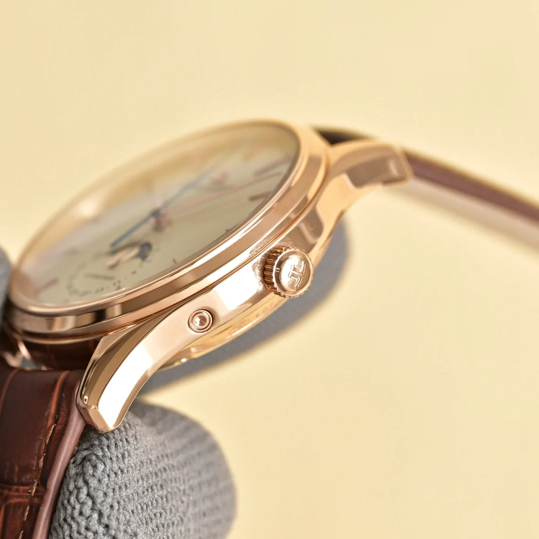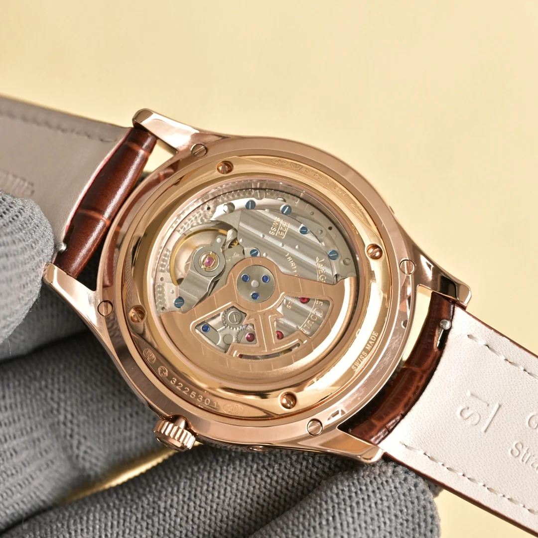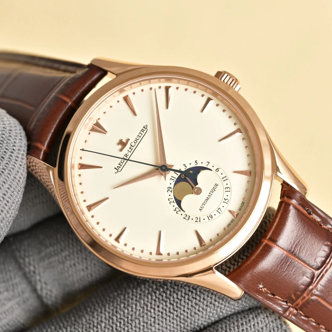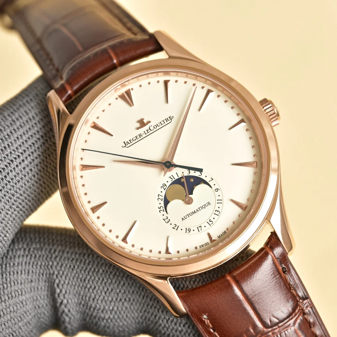 积家月相大师 表壳直径39mmX9.9mm六点钟的子盘为24小时同步时针功能 技术突破 采用海鸥2824改积家自产Cal.925/1机芯 功能百分百同步原装自产机芯 走时稳定 素质坚挺 细节突破 从侧面观察腕表盘面发现有微微的弧度 神韵和感觉能与原装相媲美 积家月相大师 满足您对的一切美好情怀